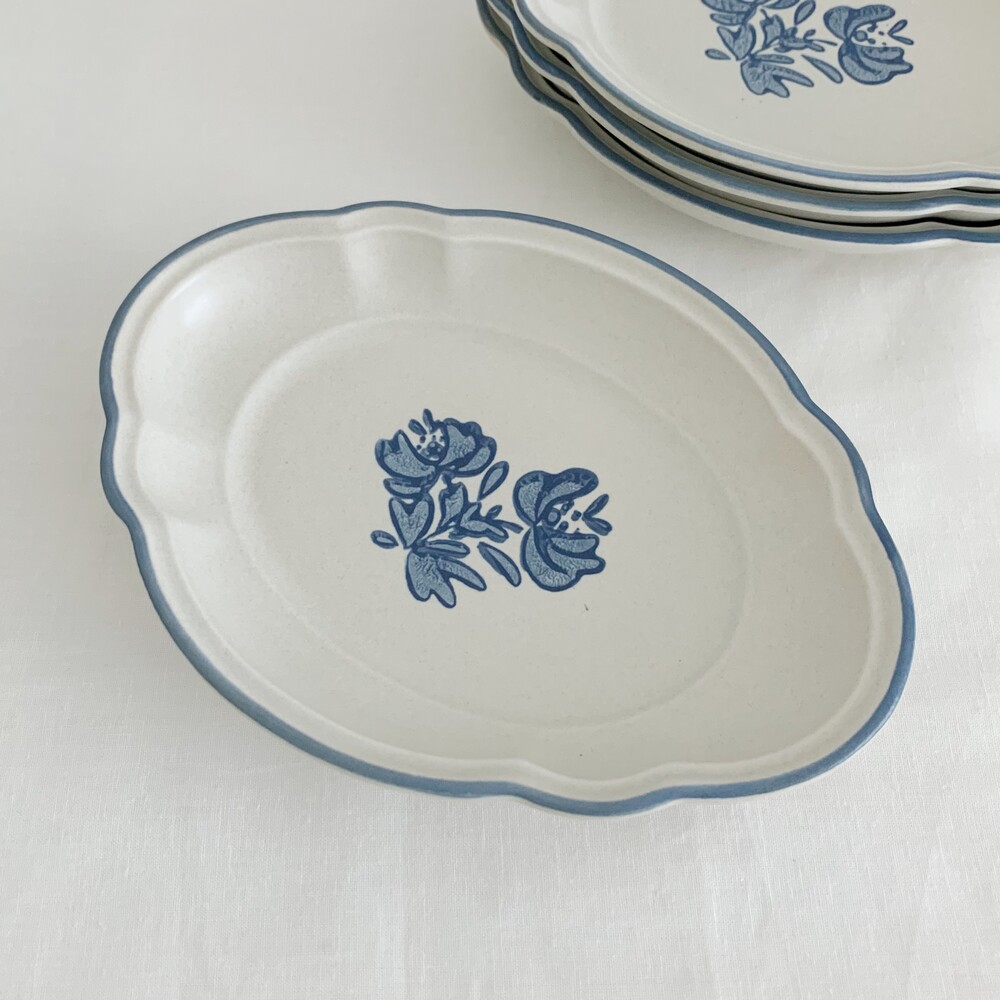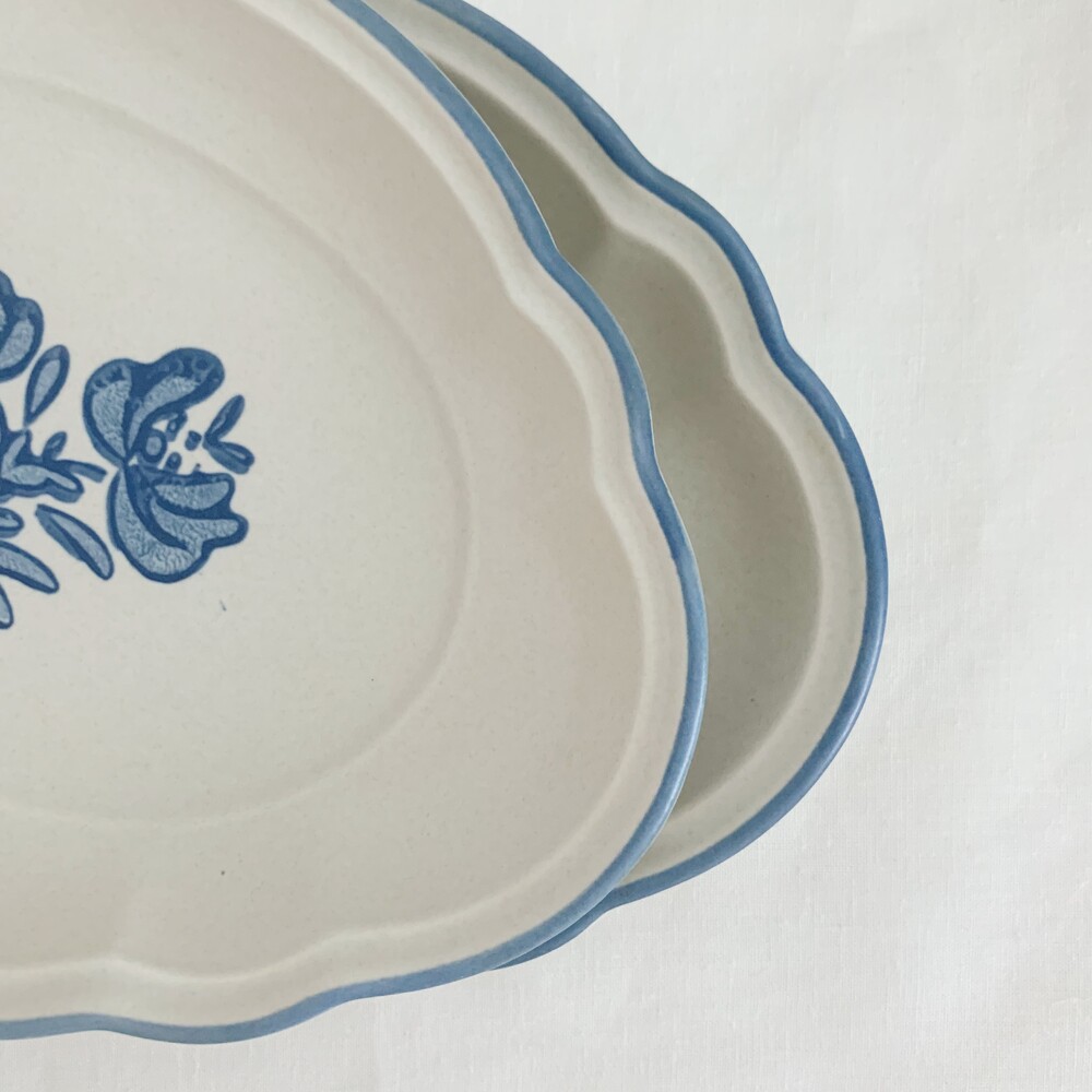 아름다운 오발형태의 접시에 손으로 그려낸 푸른색의 꽃무늬와
