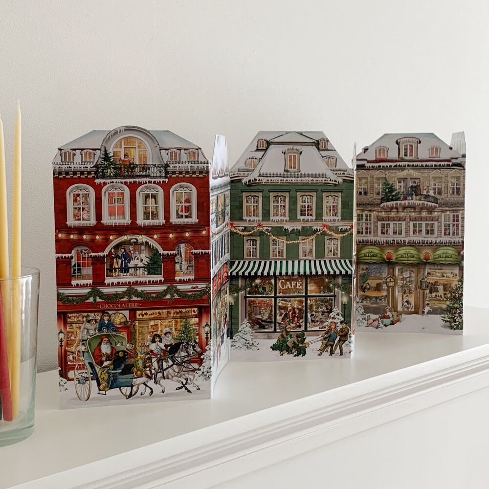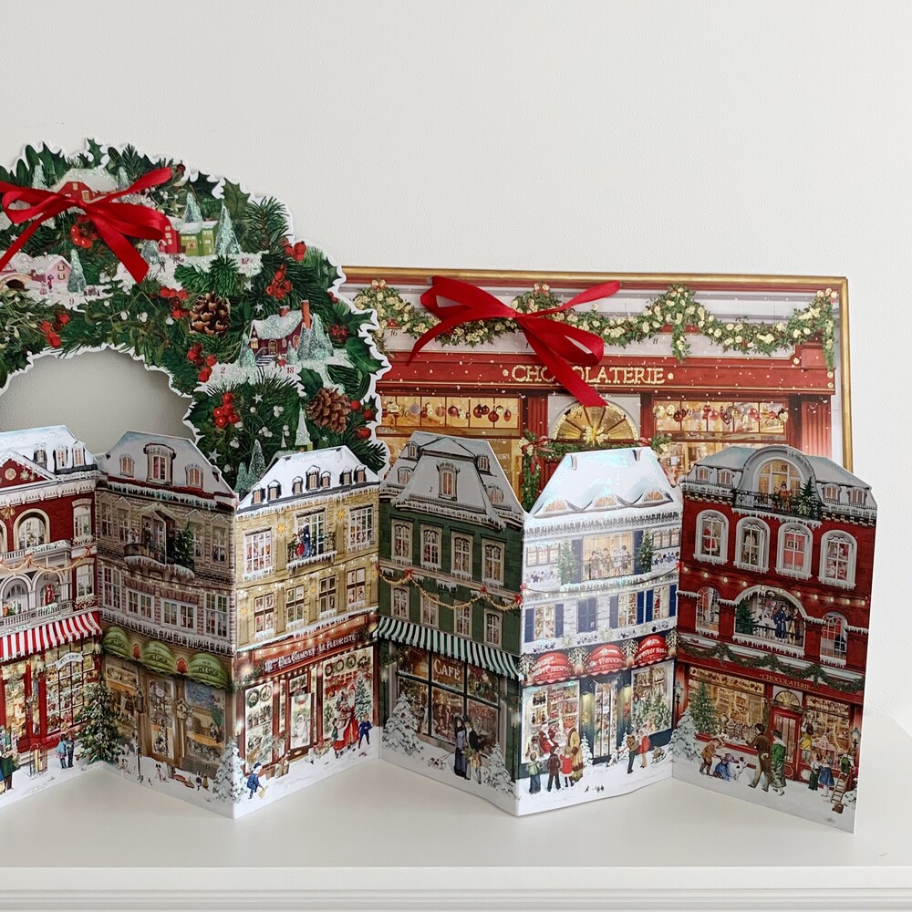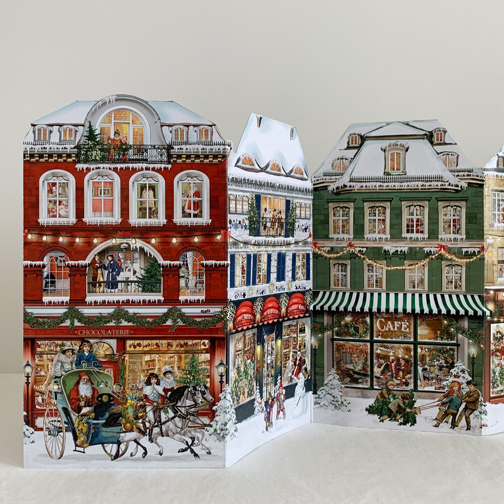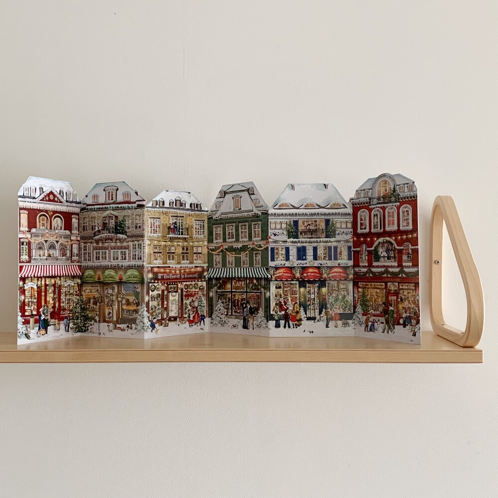 크리스마스 시즌 유럽의 거리를 축소해둔 듯한 폴더형 캘린더로,