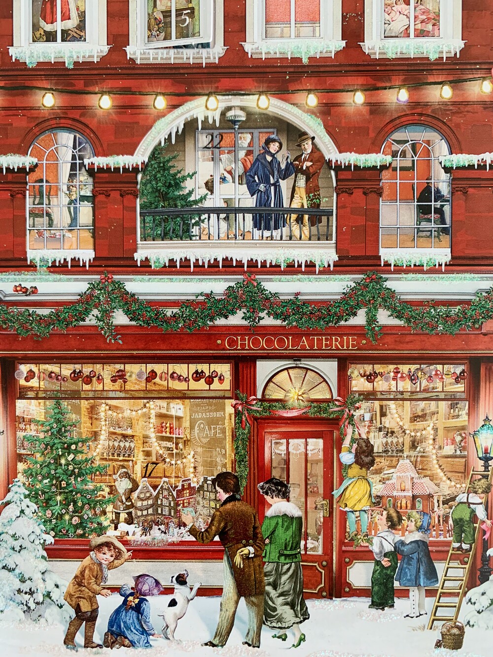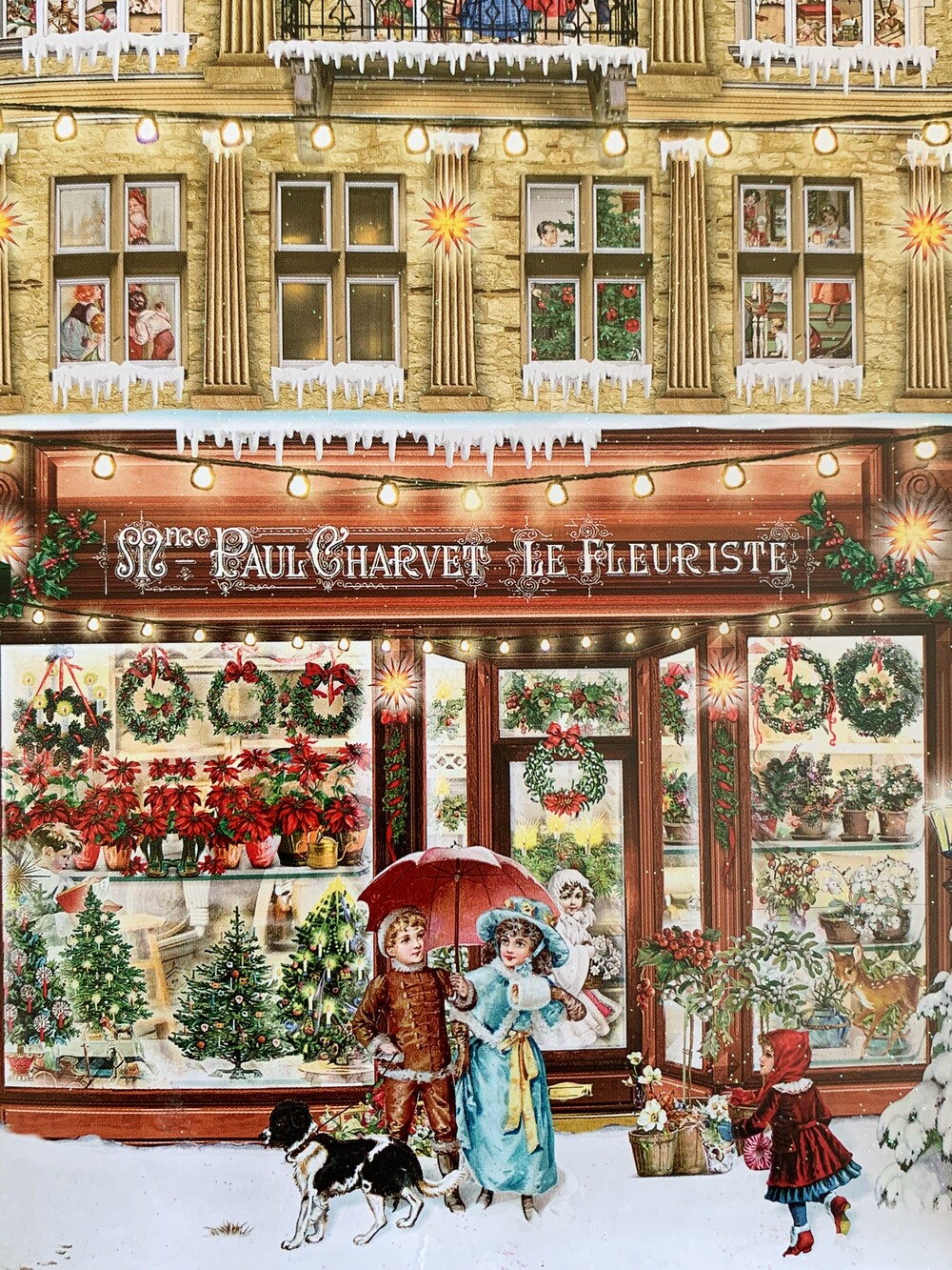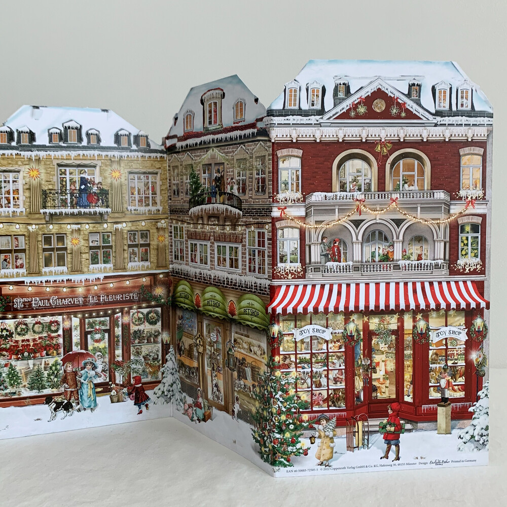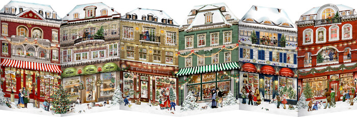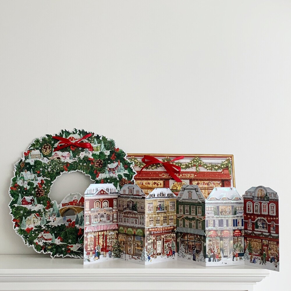 크리스마스 시즌 유럽의 거리를 축소해둔 듯한 폴더형 캘린더로,