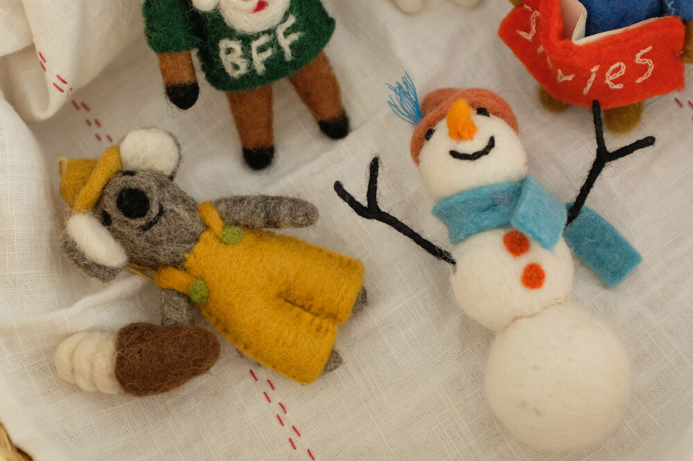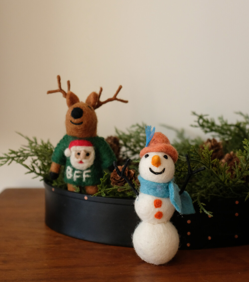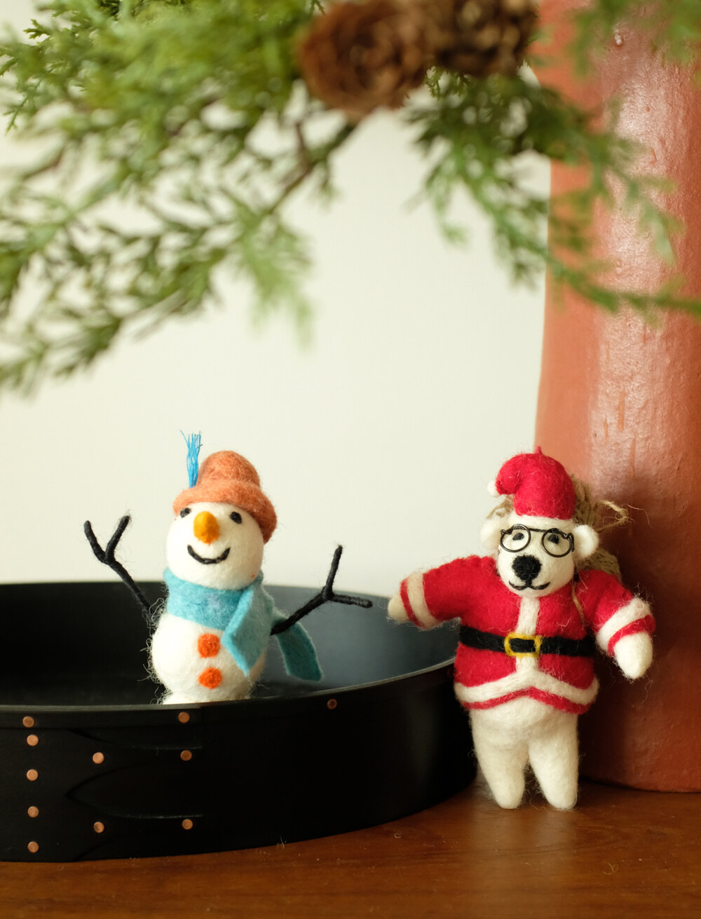 Handmade Needle Felt ornament _ Mabel the Snowman