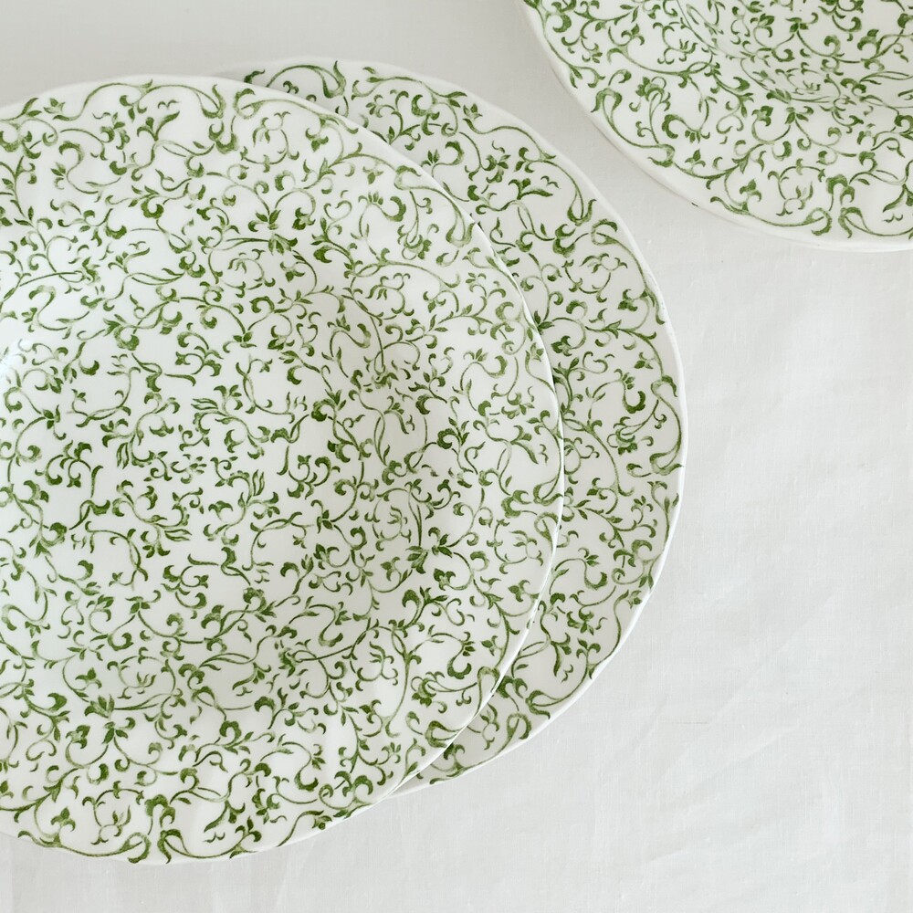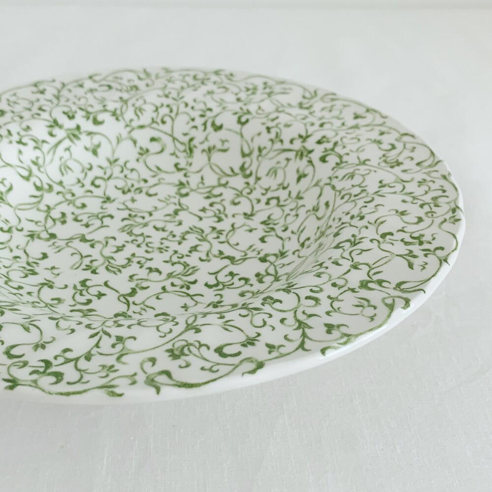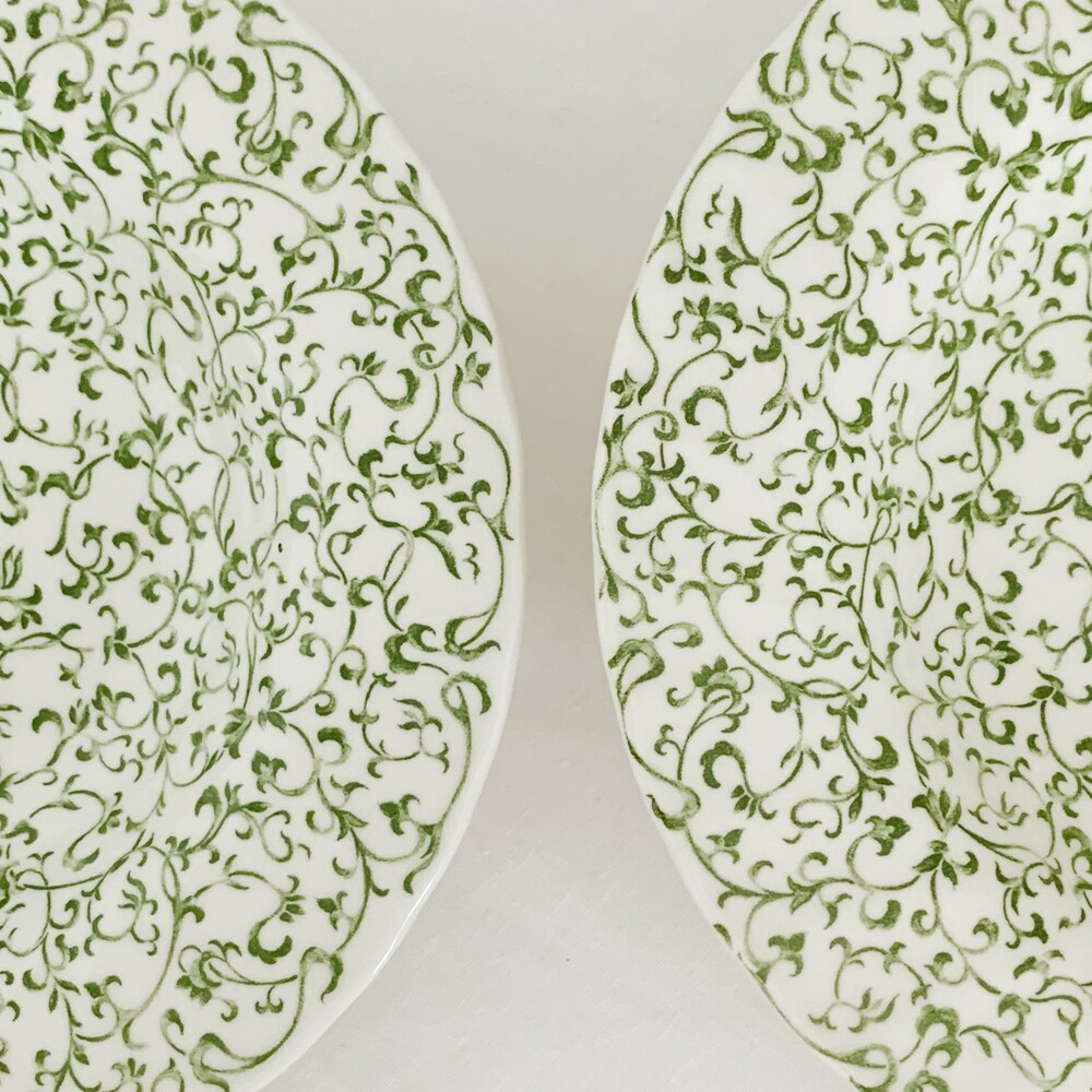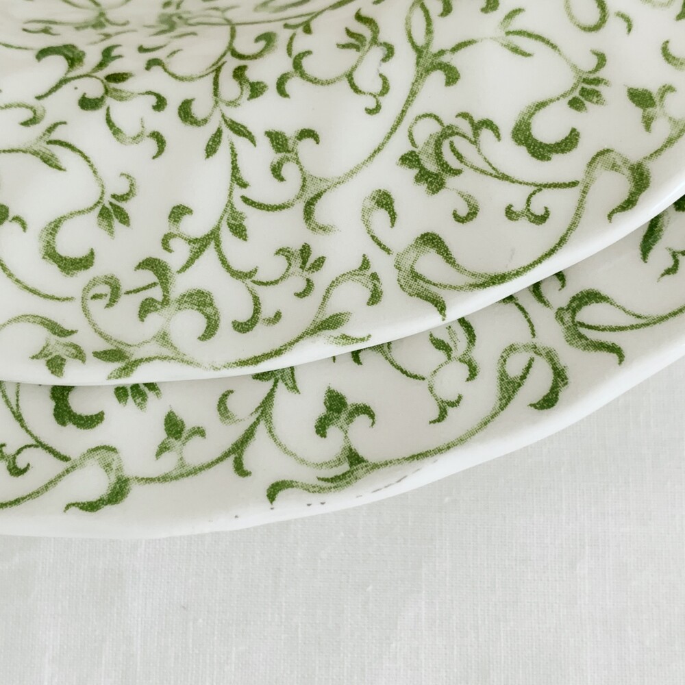 옅은 그린색 프린팅이 손으로 그려낸 듯 아름다운 접시입니다.