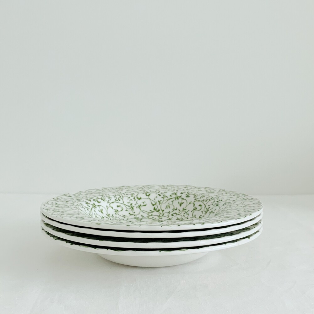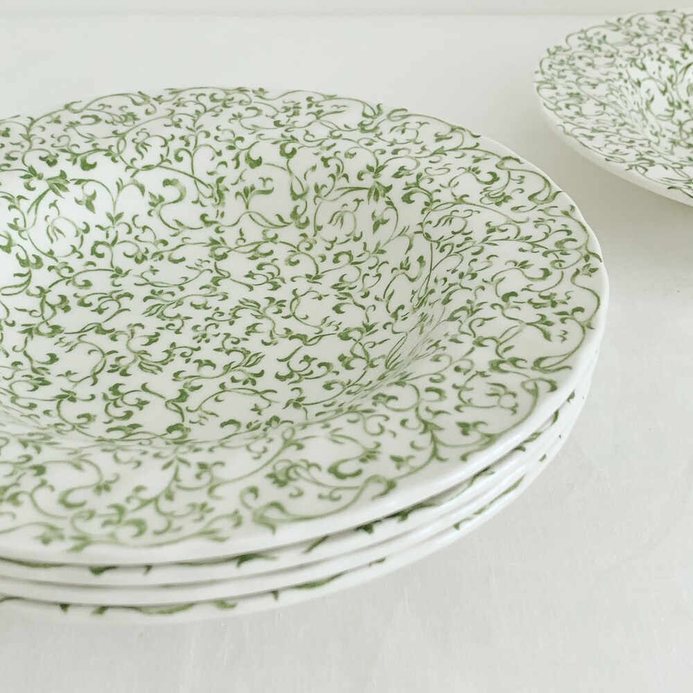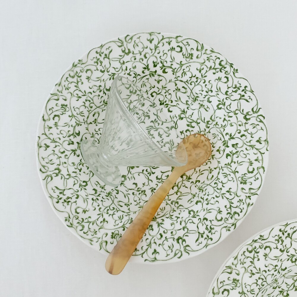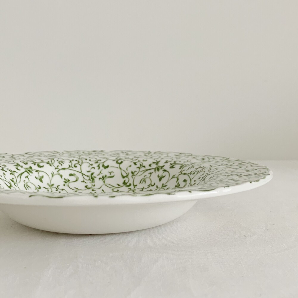 옅은 그린색 프린팅이 손으로 그려낸 듯 아름다운 접시입니다.