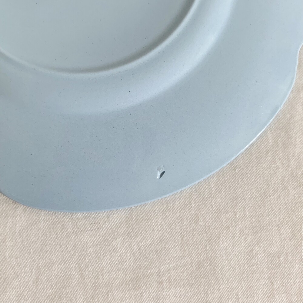 옅은 하늘빛을 띄는 보울 접시로, 가장자리에 표현된