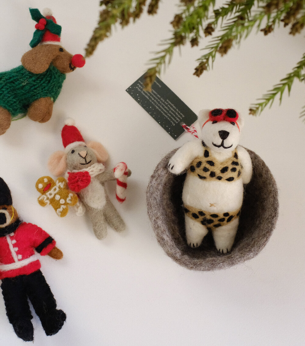 Handmade Needle Felt ornament _ Diva Pola Bear