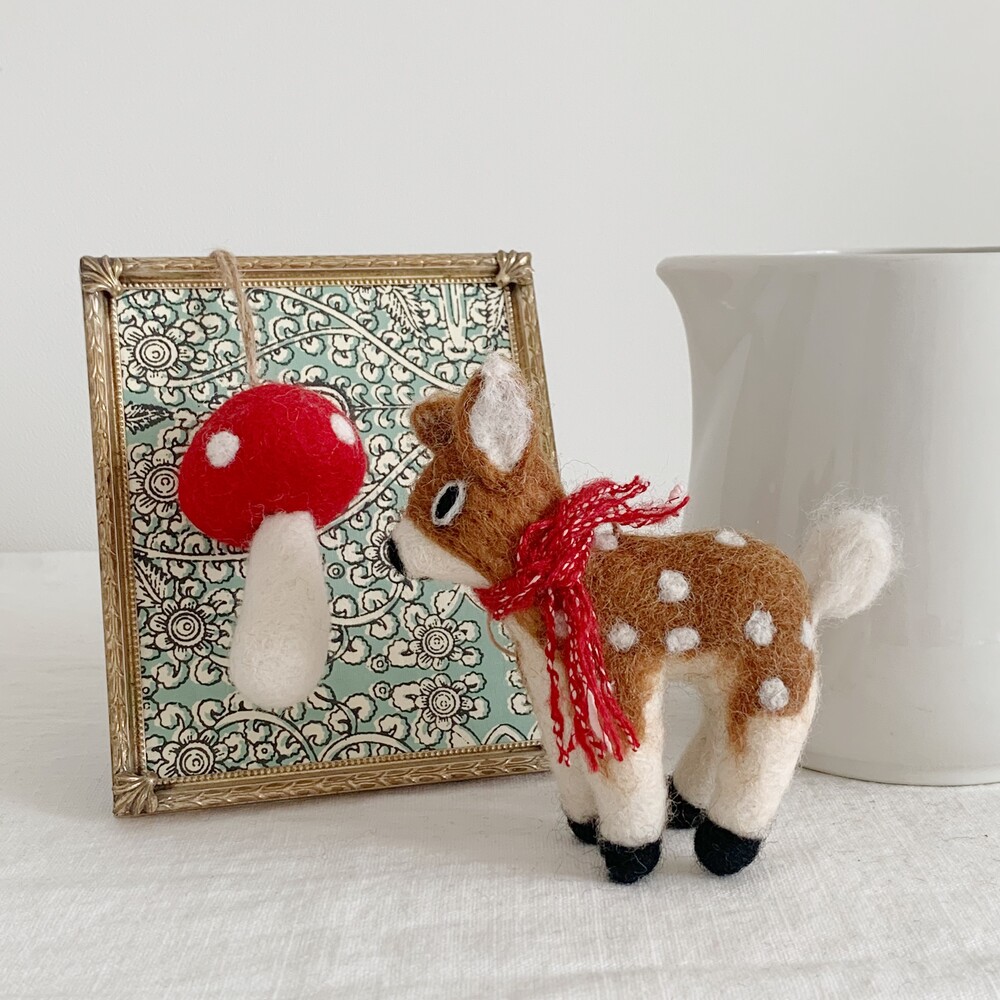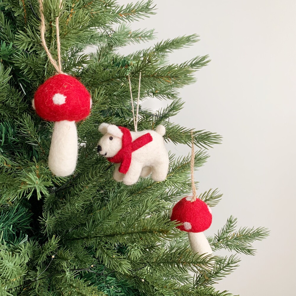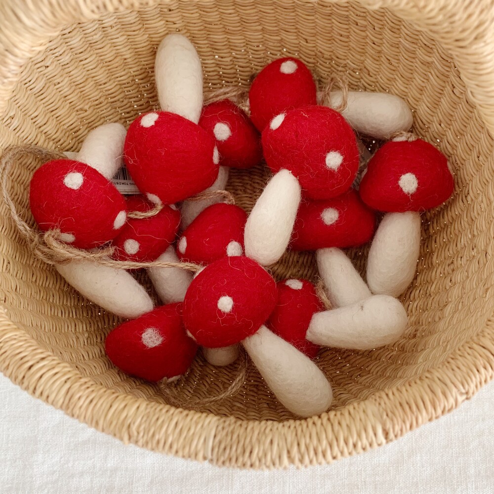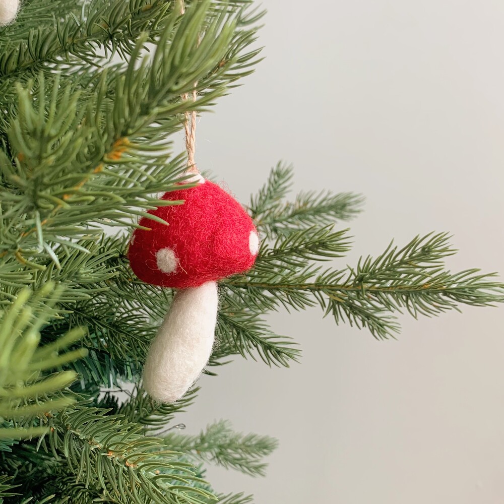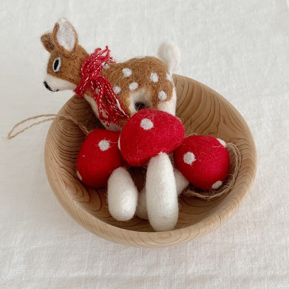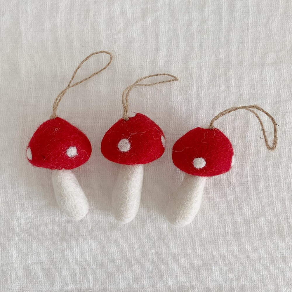 Handmade Needle Felt Mushroom ornament (set of 3)