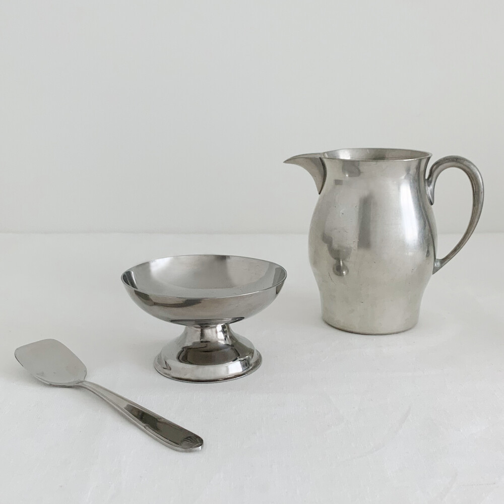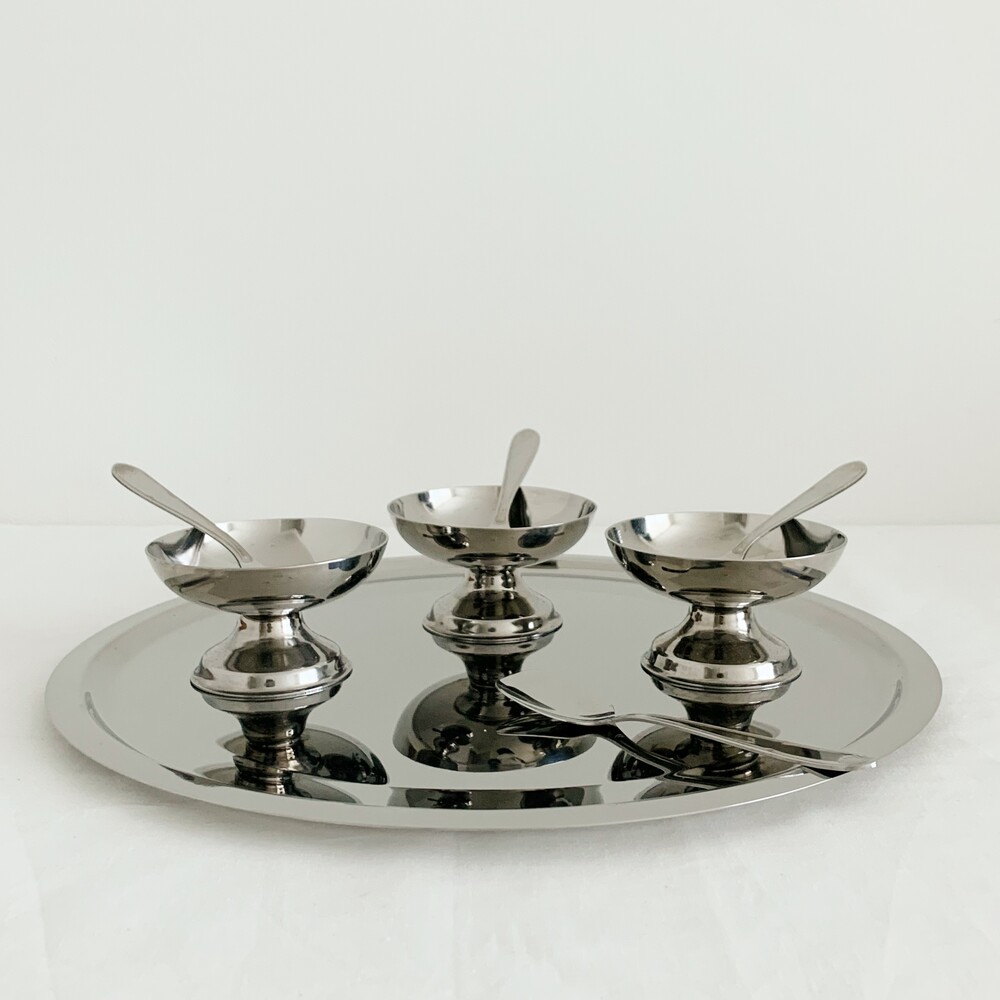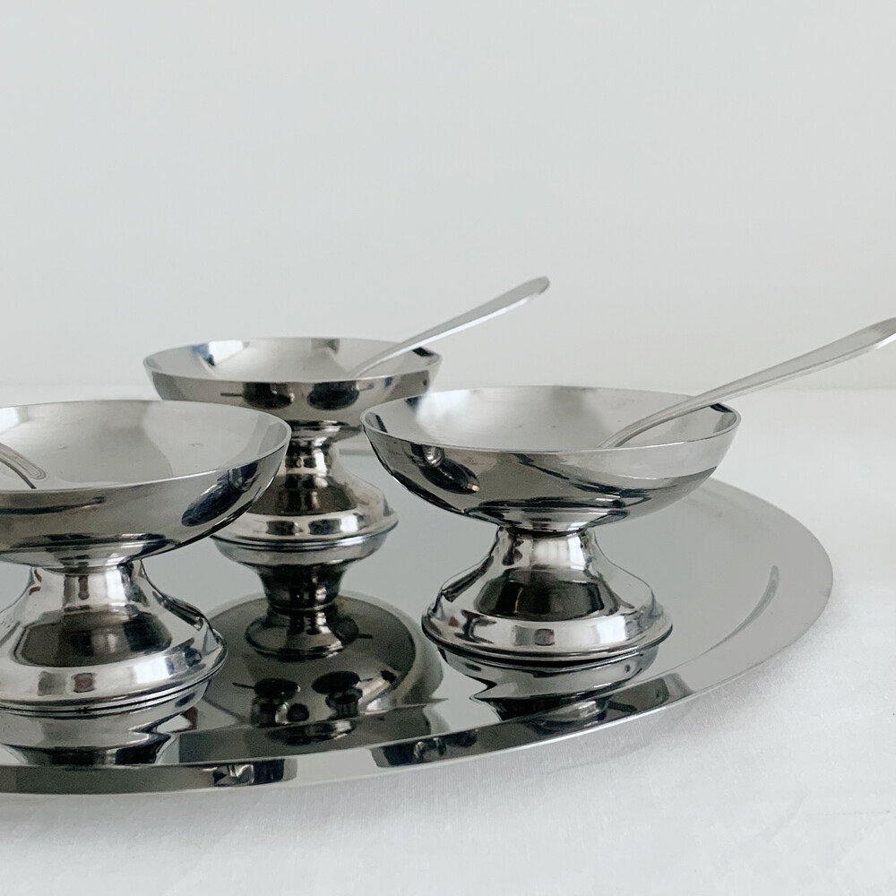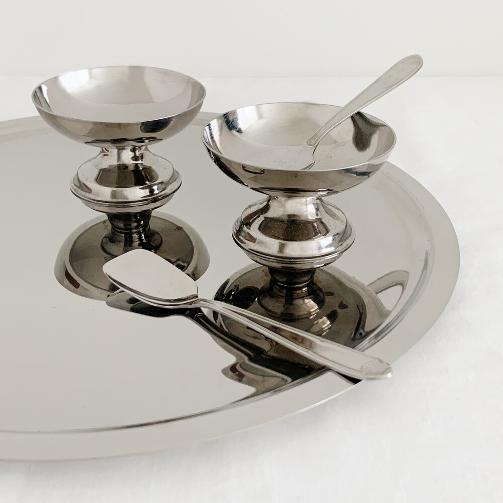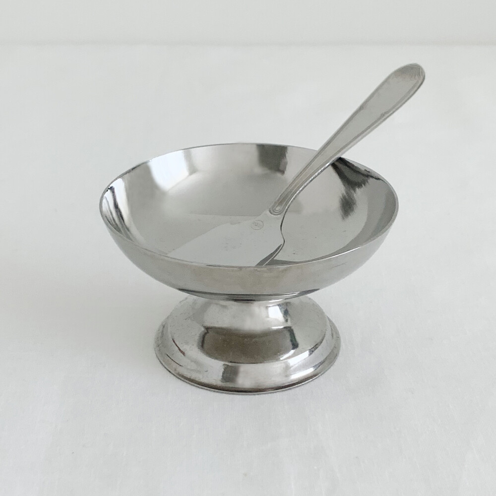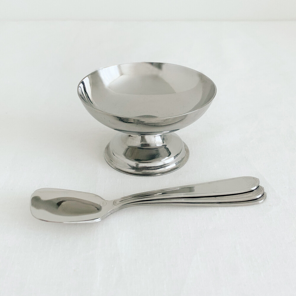 프랑스에서 생산된 빈티지 아이스크림 컵과 스푼입니다.