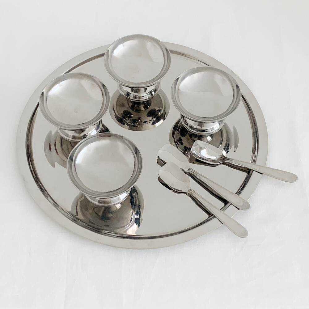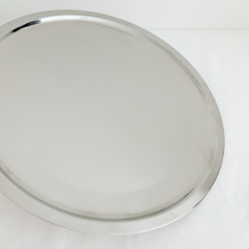 군더더기 없이 깨끗한 스테인리스 소재의 원형 트레이는