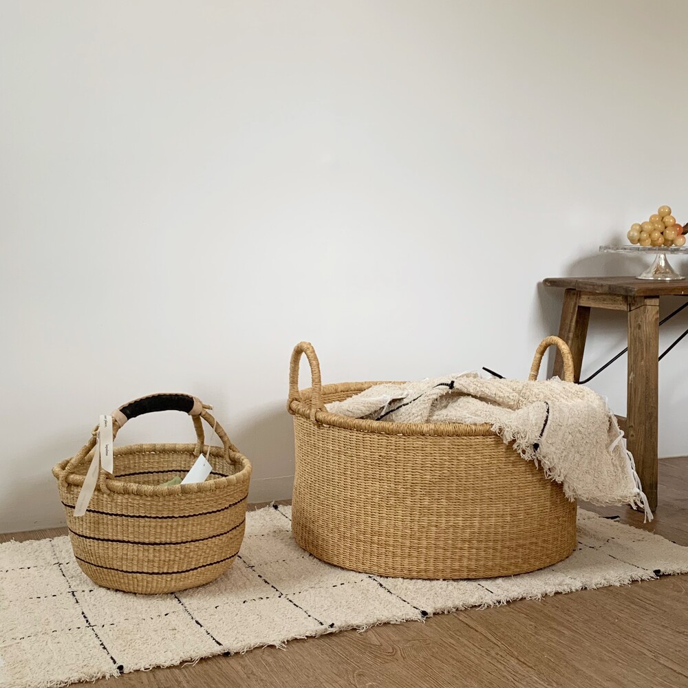 Bolga basket striped (M) + Laundry Bolga basket (L)