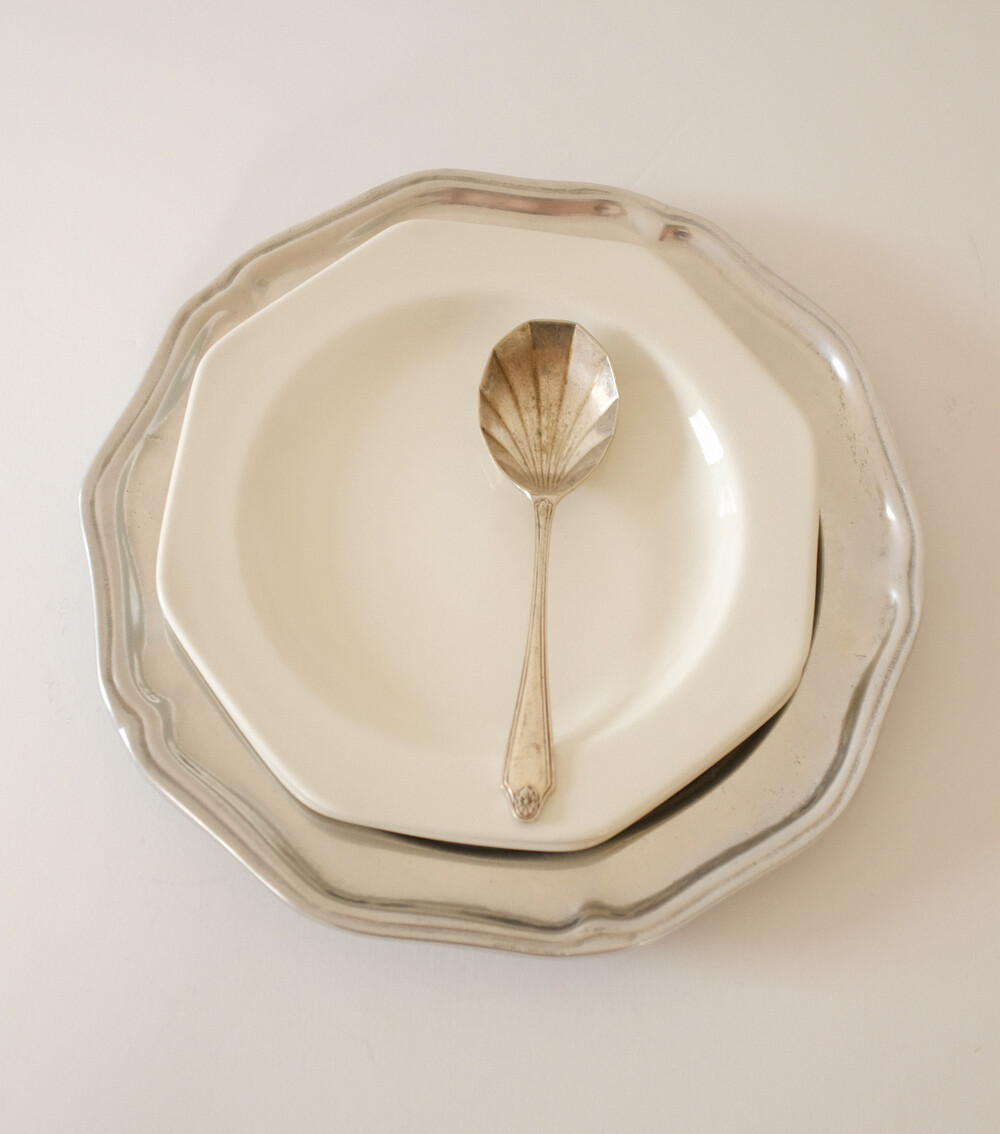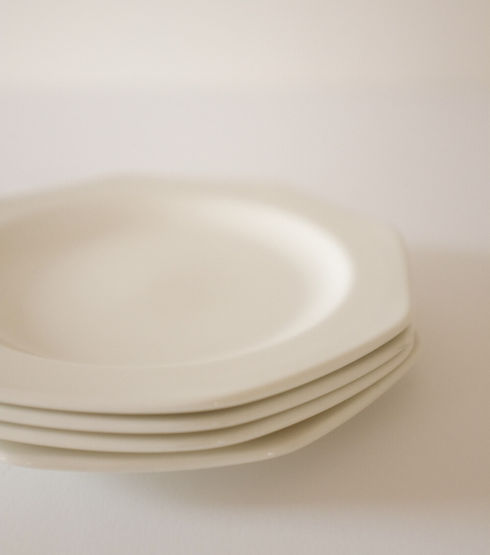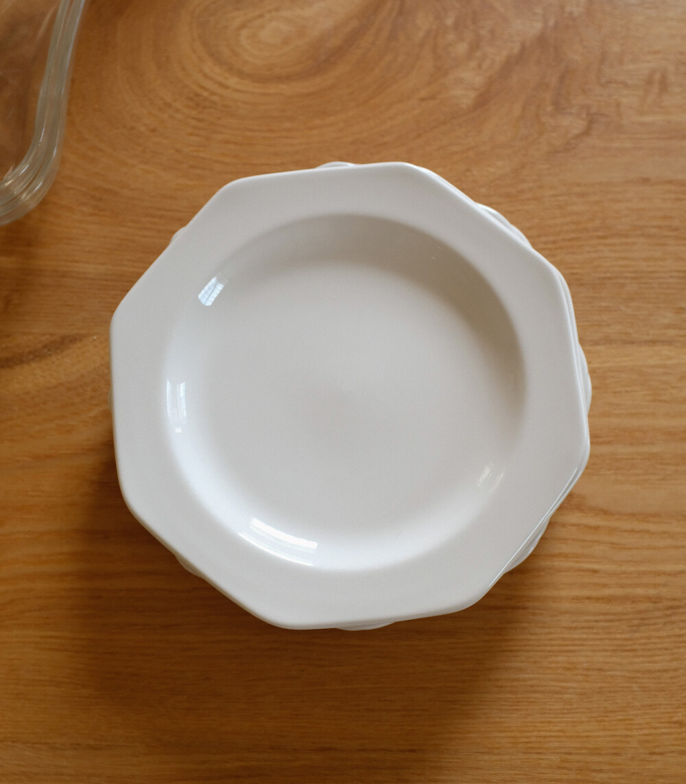 둥근 곡선과 직선으로 이루어진 팔각형의 접시가