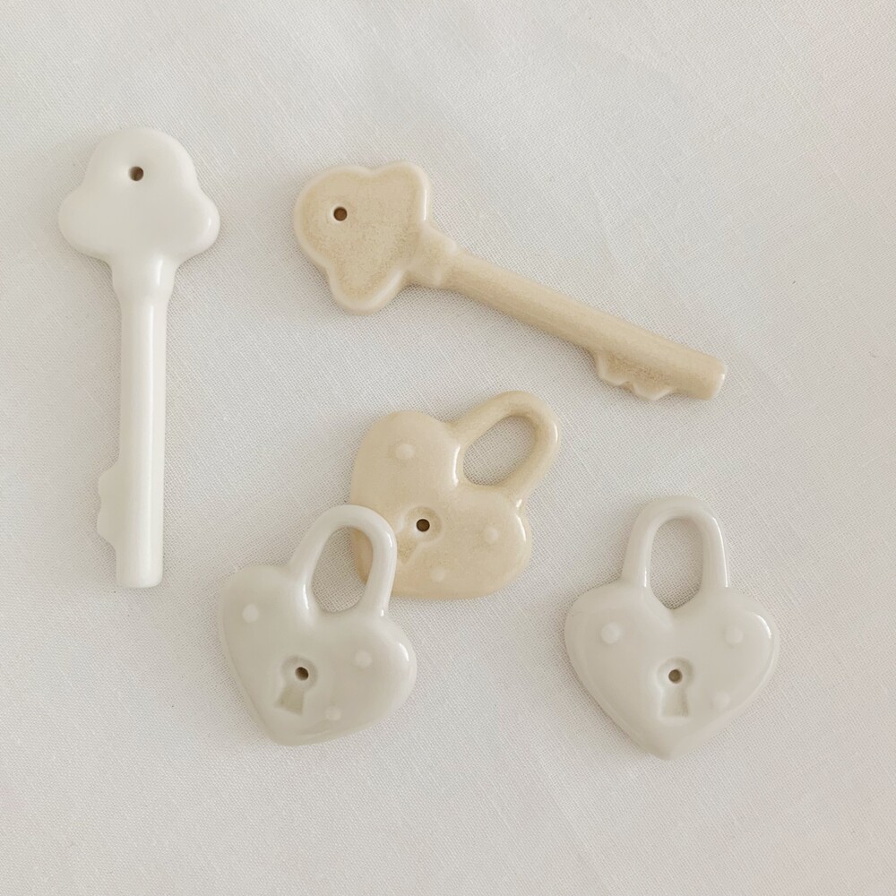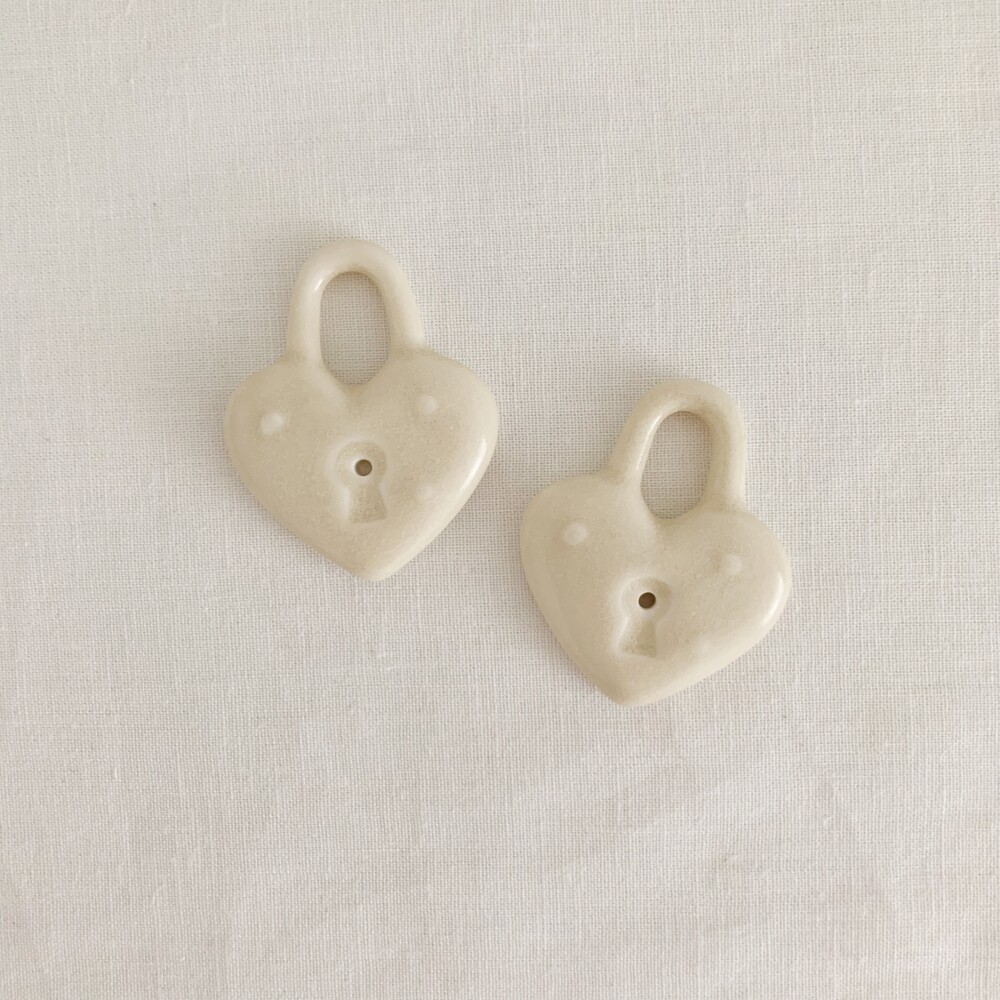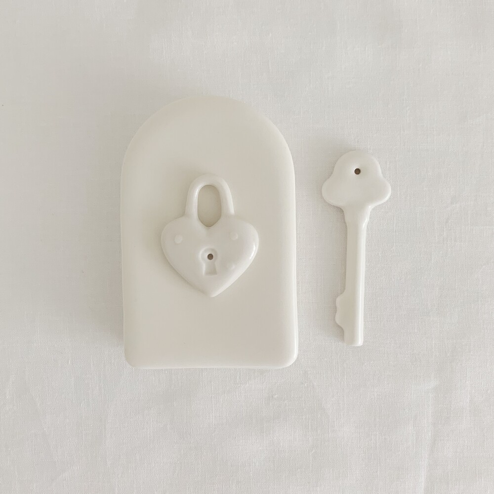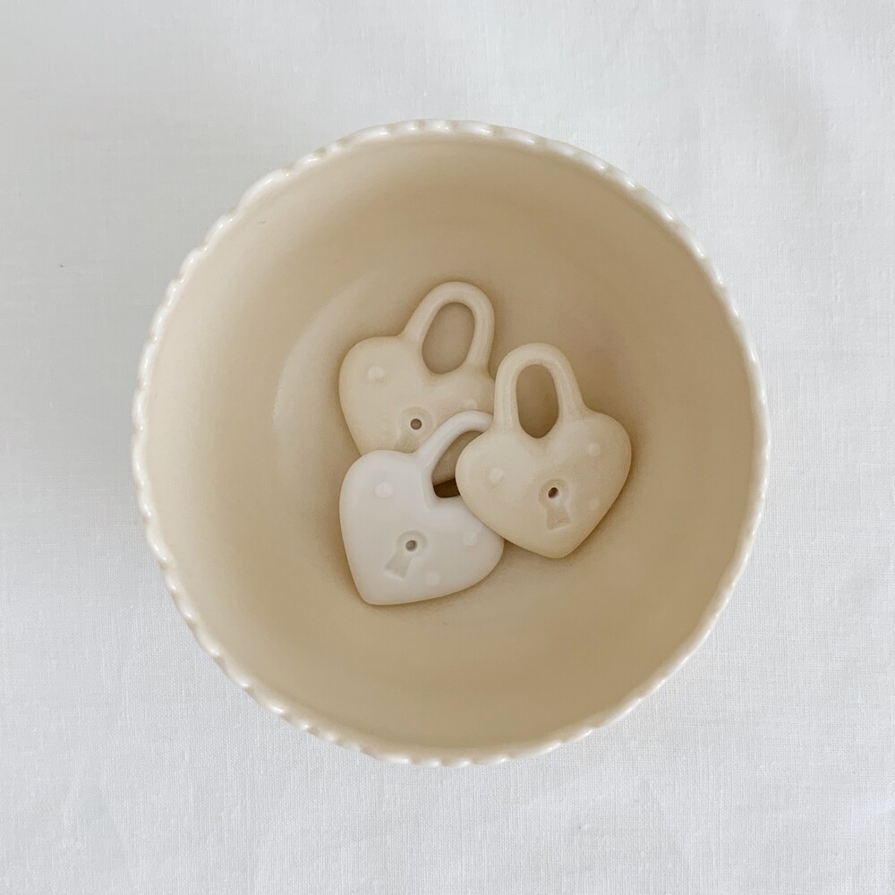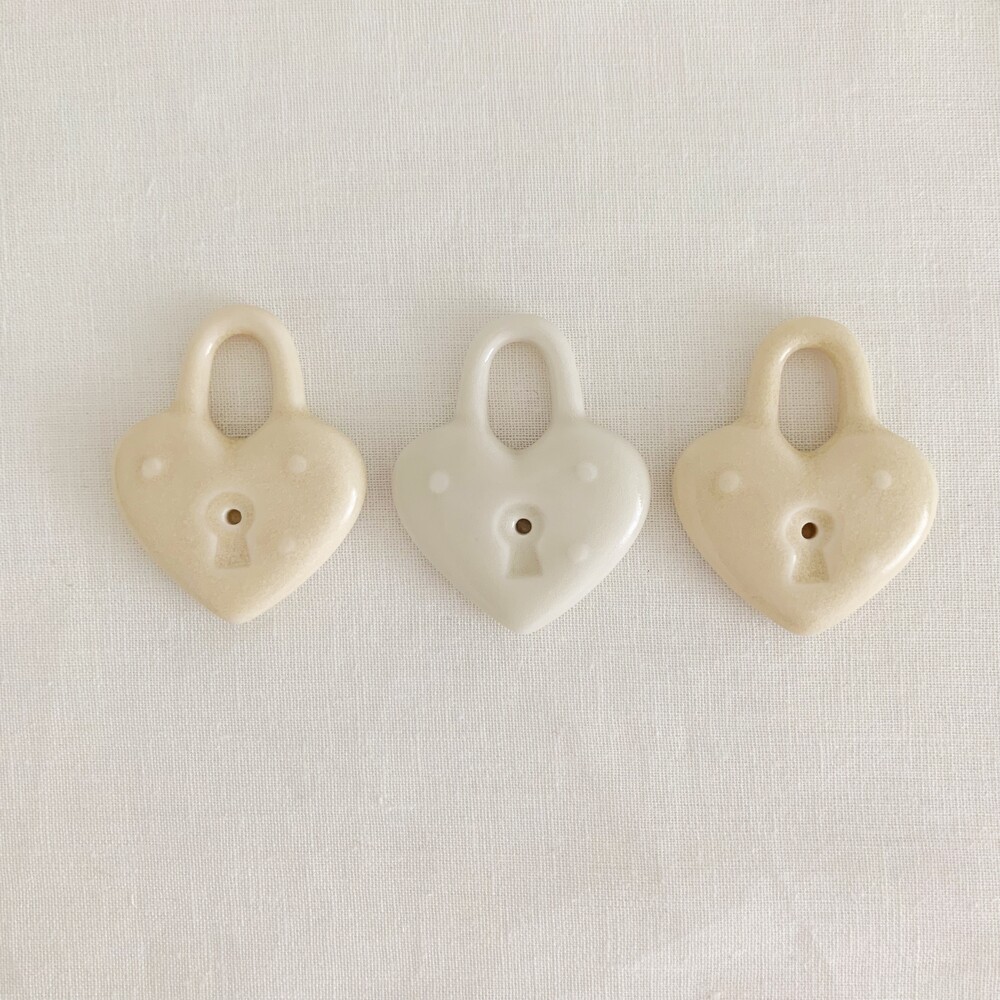 하트모양의 자물쇠 틀을 만들고 유약을 발라 결을 다듬어낸 후