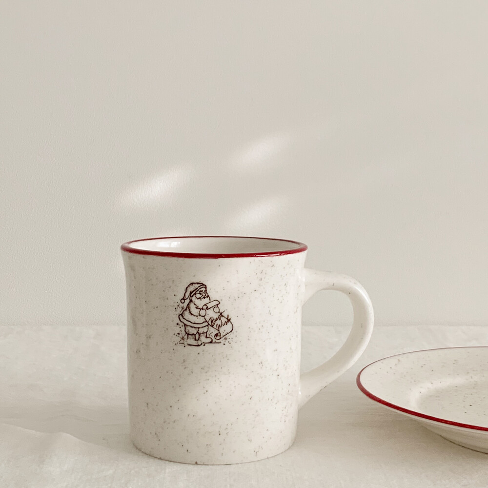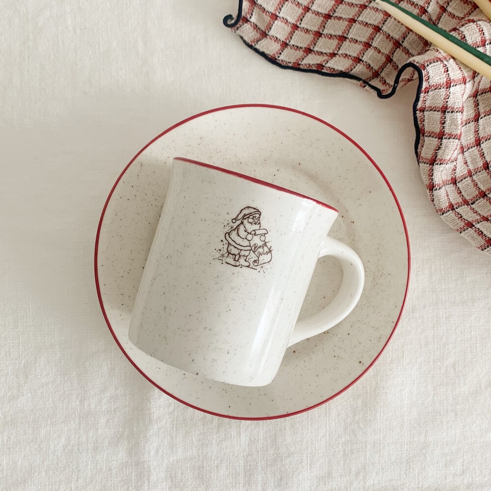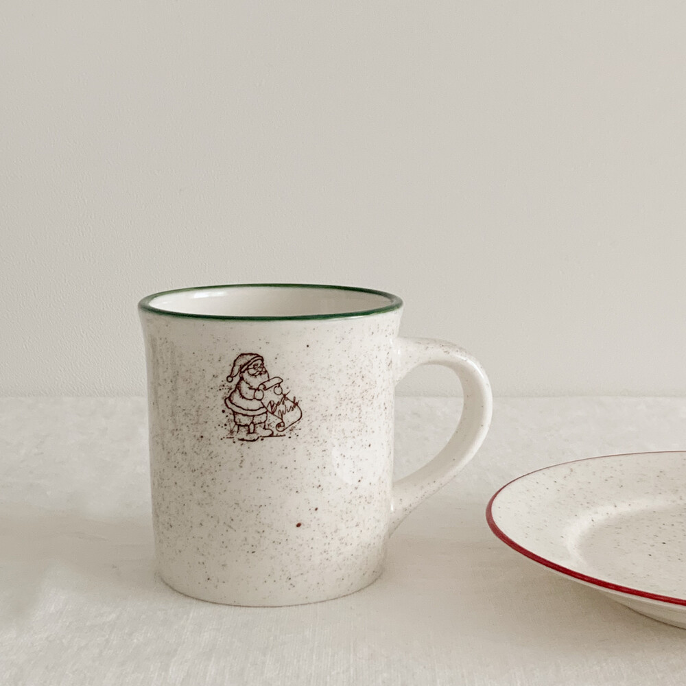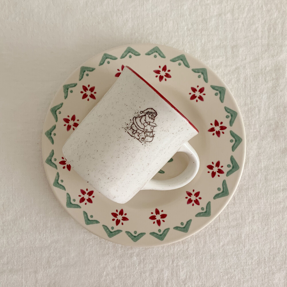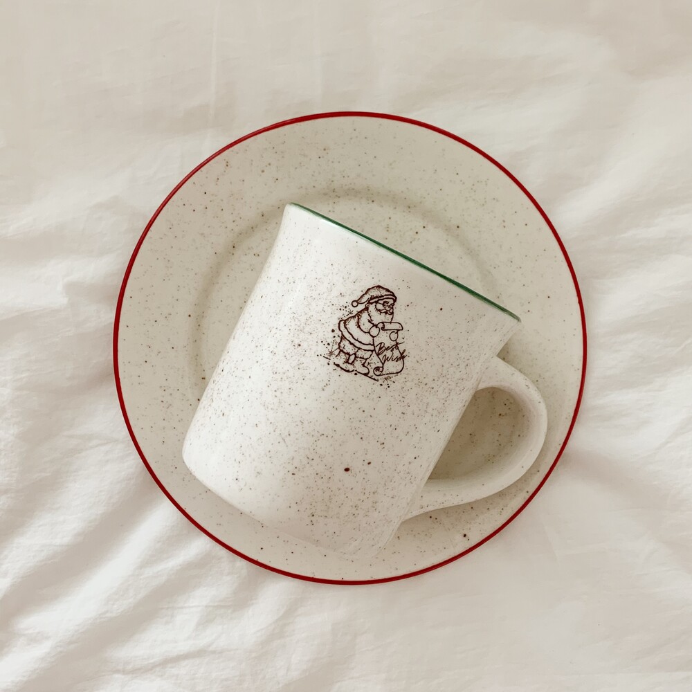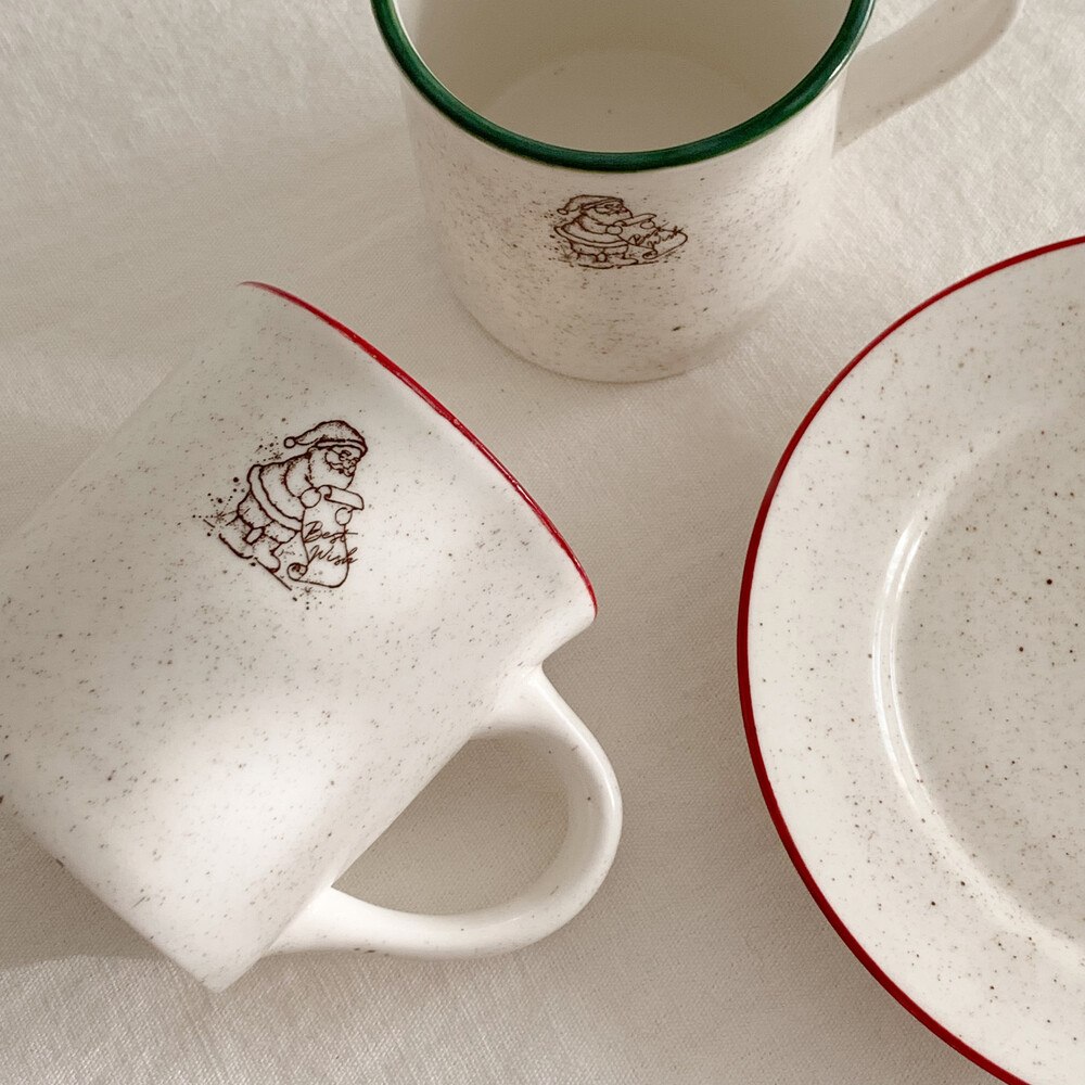 머그컵과 플레이트의 테두리에 둘러진 그린컬러와 레드림으로