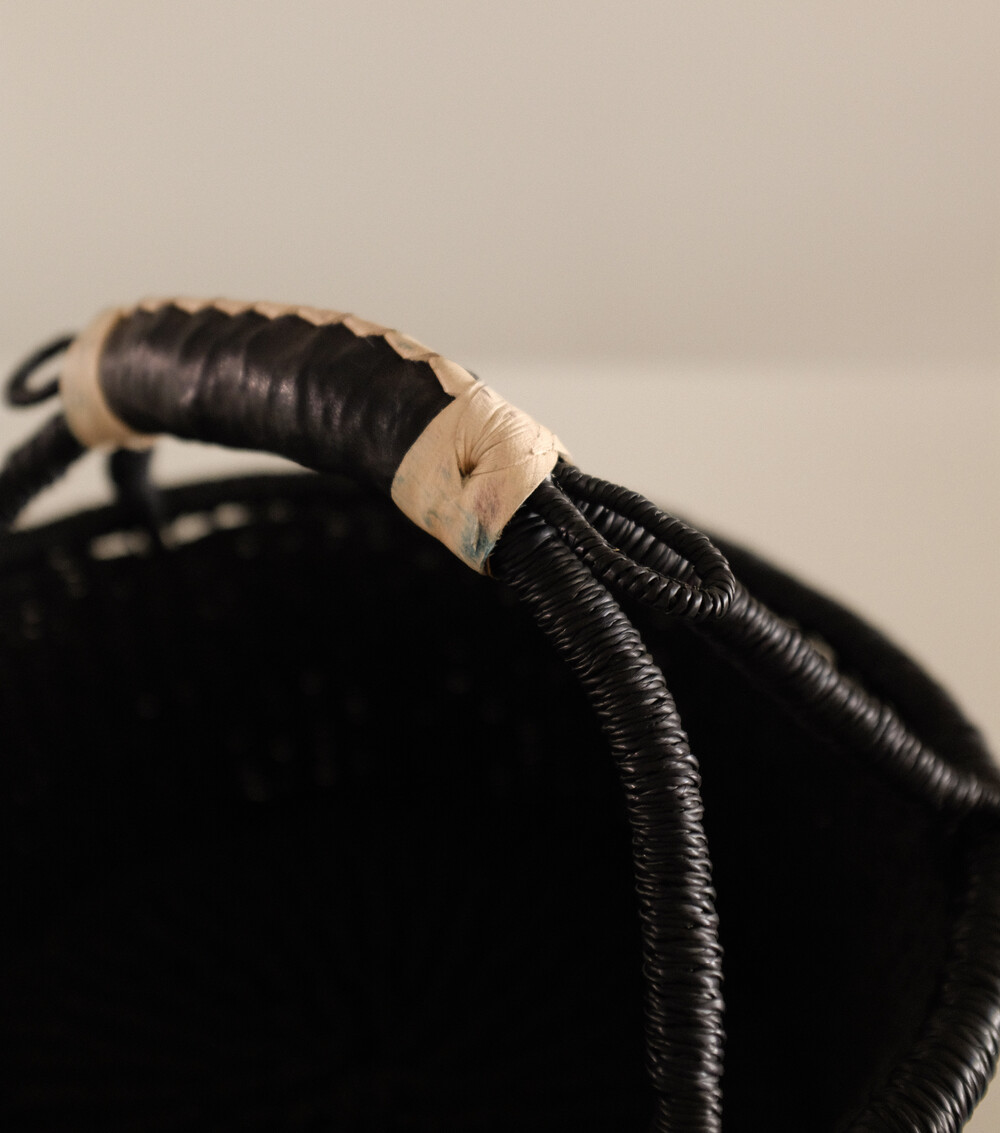 바구니를 염색하는 과정에서 가죽에 검은 염료가 묻어있을 수 있습니다. (사진 참조)