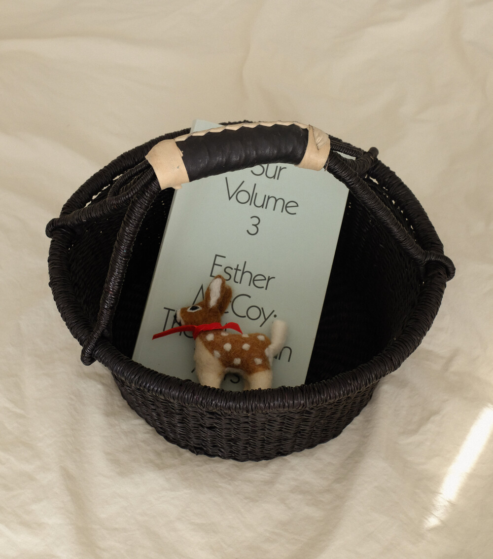 *Black컬러는 내츄럴 컬러의 코끼리 풀을 염색해서 만들어지는 제품으로, 물이 묻거나 습기가 찰 경우 검은 염료가 이염되거나 묻어나올 수 있습니다. 이는 제품 제작 과정 특성상 교환/환불의 사유가 되지 않는 점 참조해주세요. 찌그러진 제품 모양을 잡는 과정에서 검은 염료가 묻어나올 경우 키친타월로