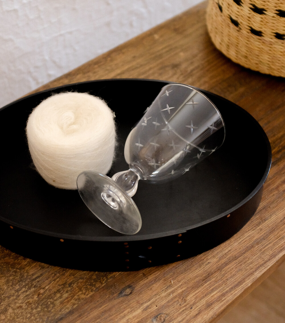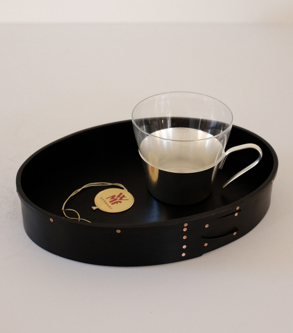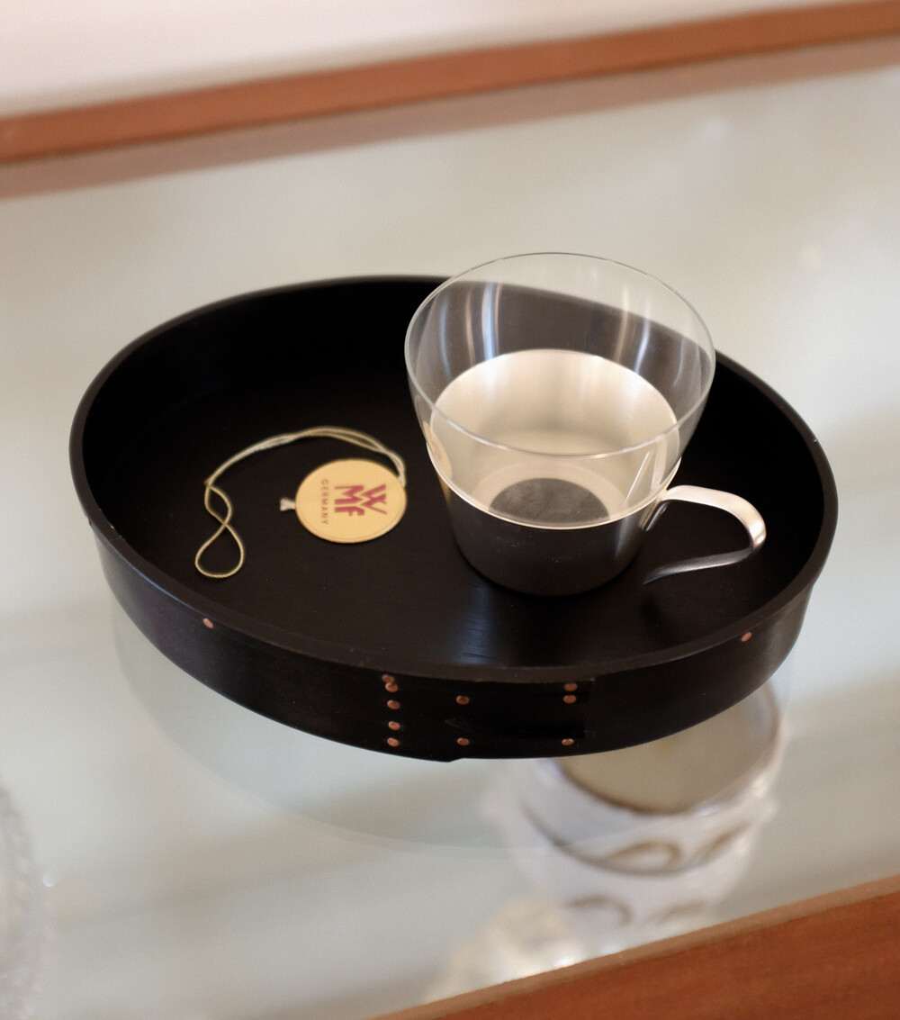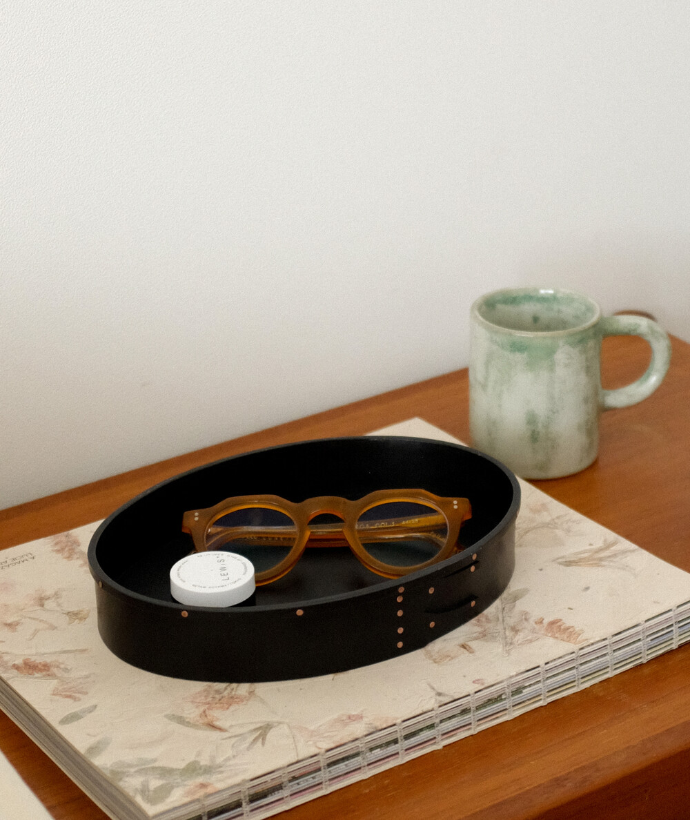 오벌 형태의 트레이로 찻잔과 소지품 등