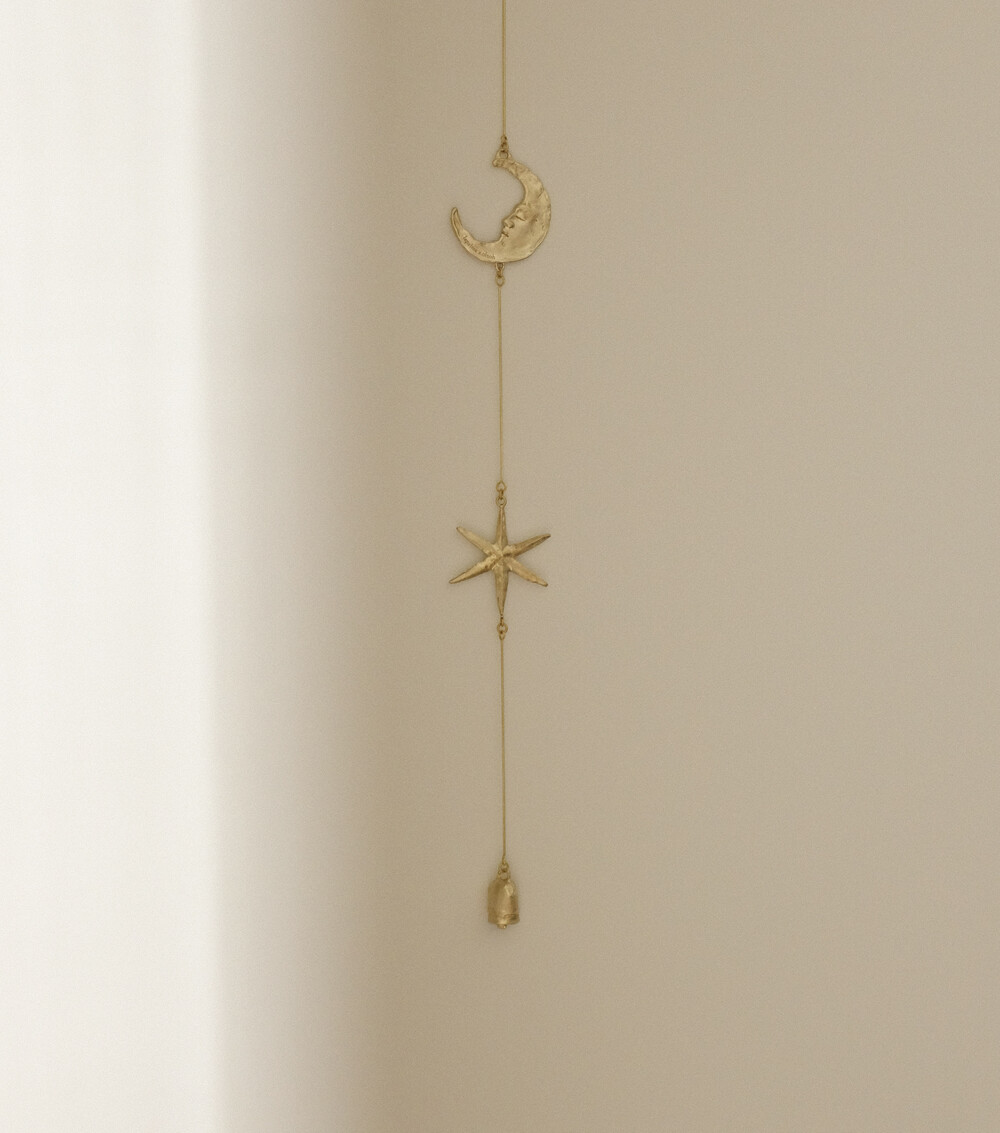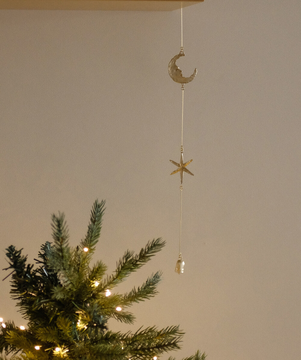 초승달과 육각별, 작은 종이 한줄로 구성된 모빌로,