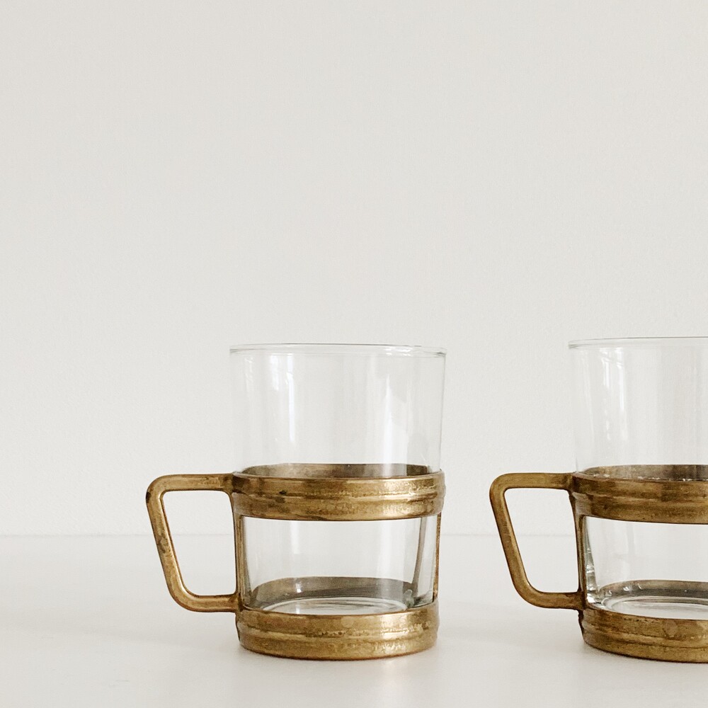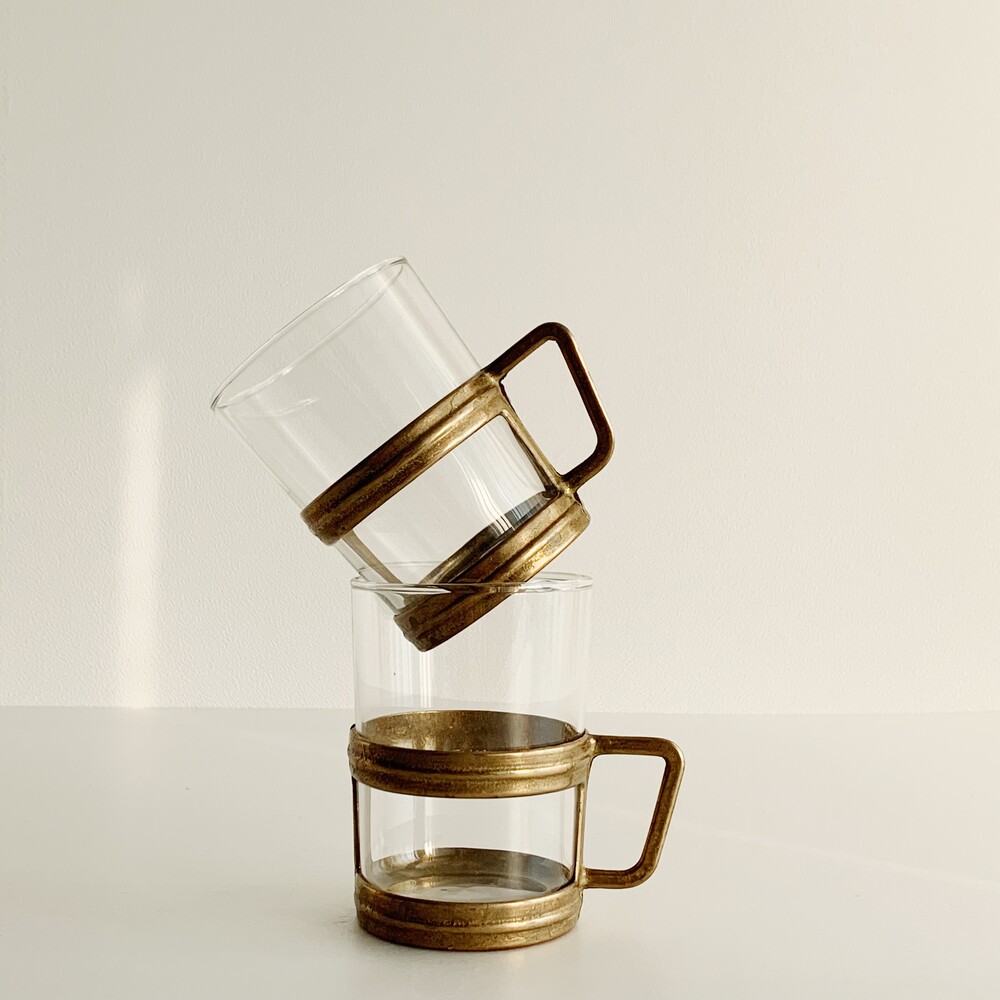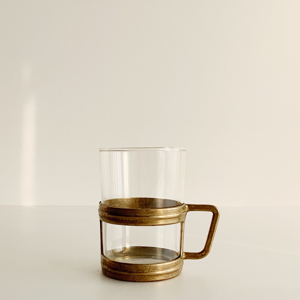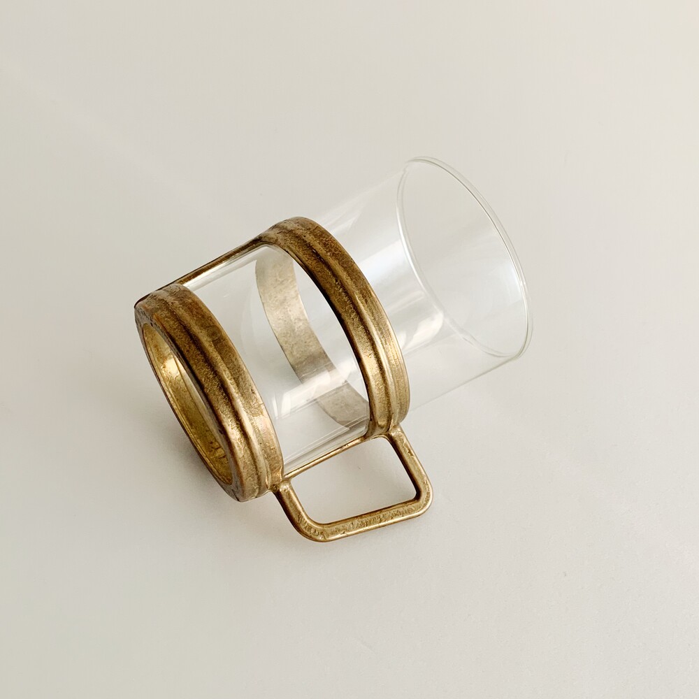 유리컵과 브라스 소재의 홀더가 한 세트로 구성된 제품으로