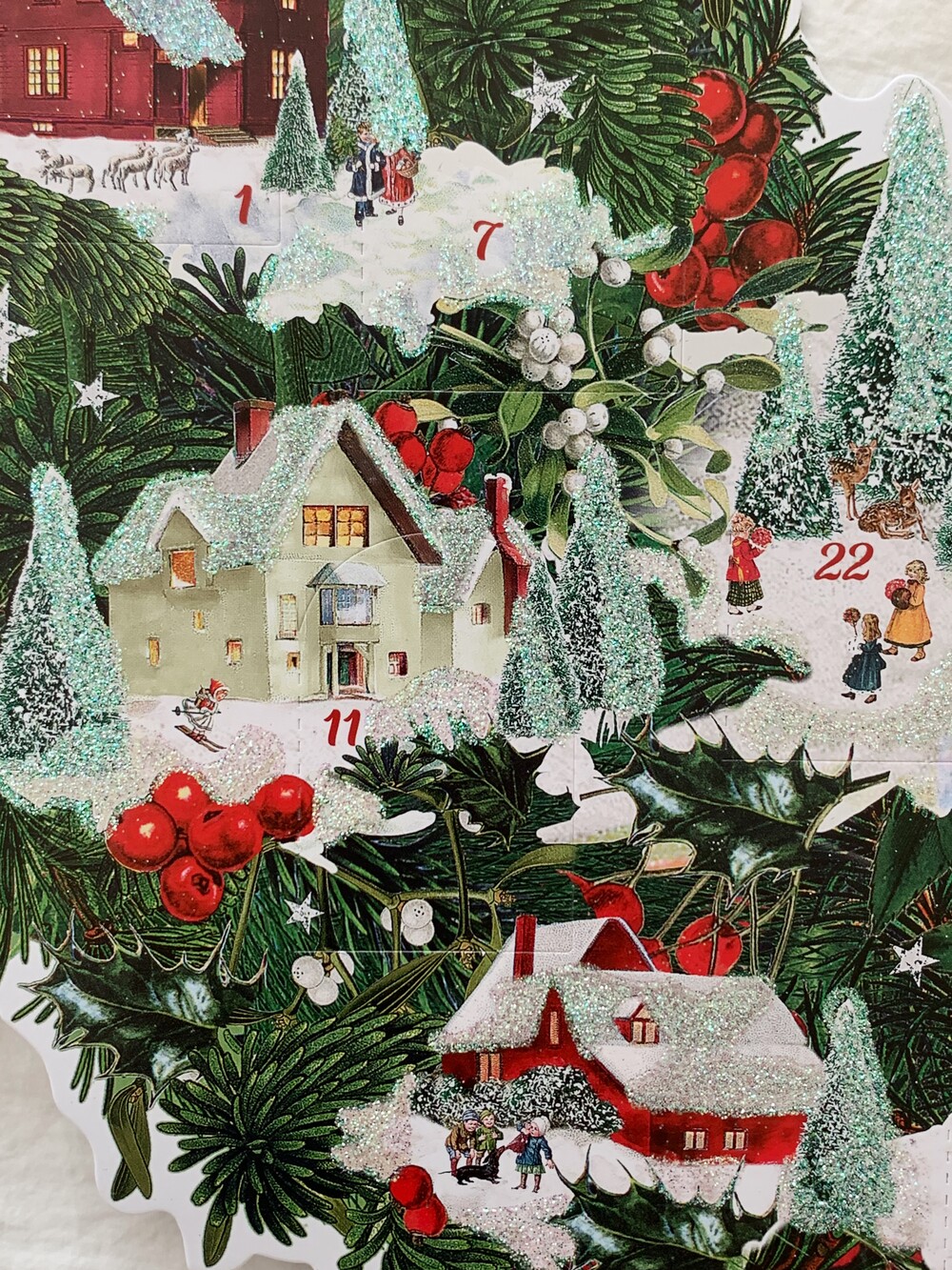 12월 1일부터 25일까지의 숫자를 따라 숨겨진 작은 카드를 열면