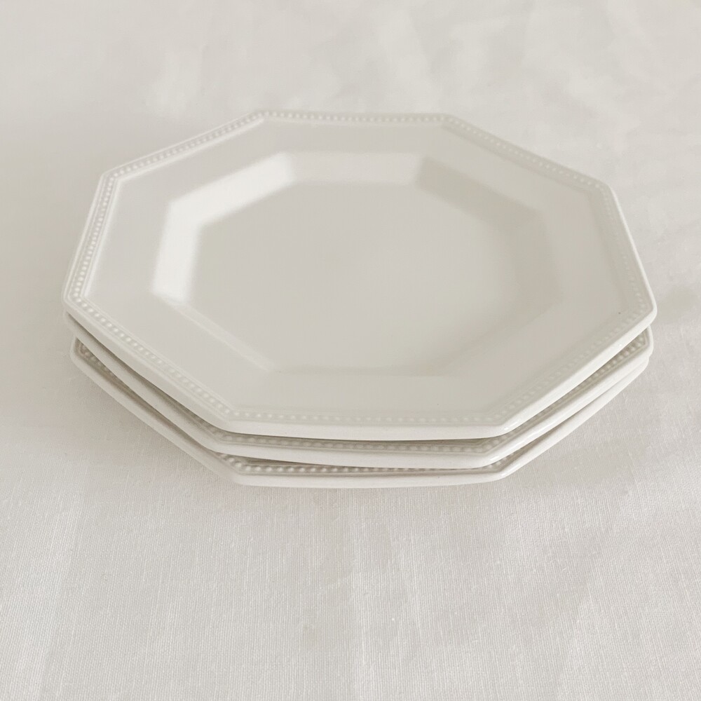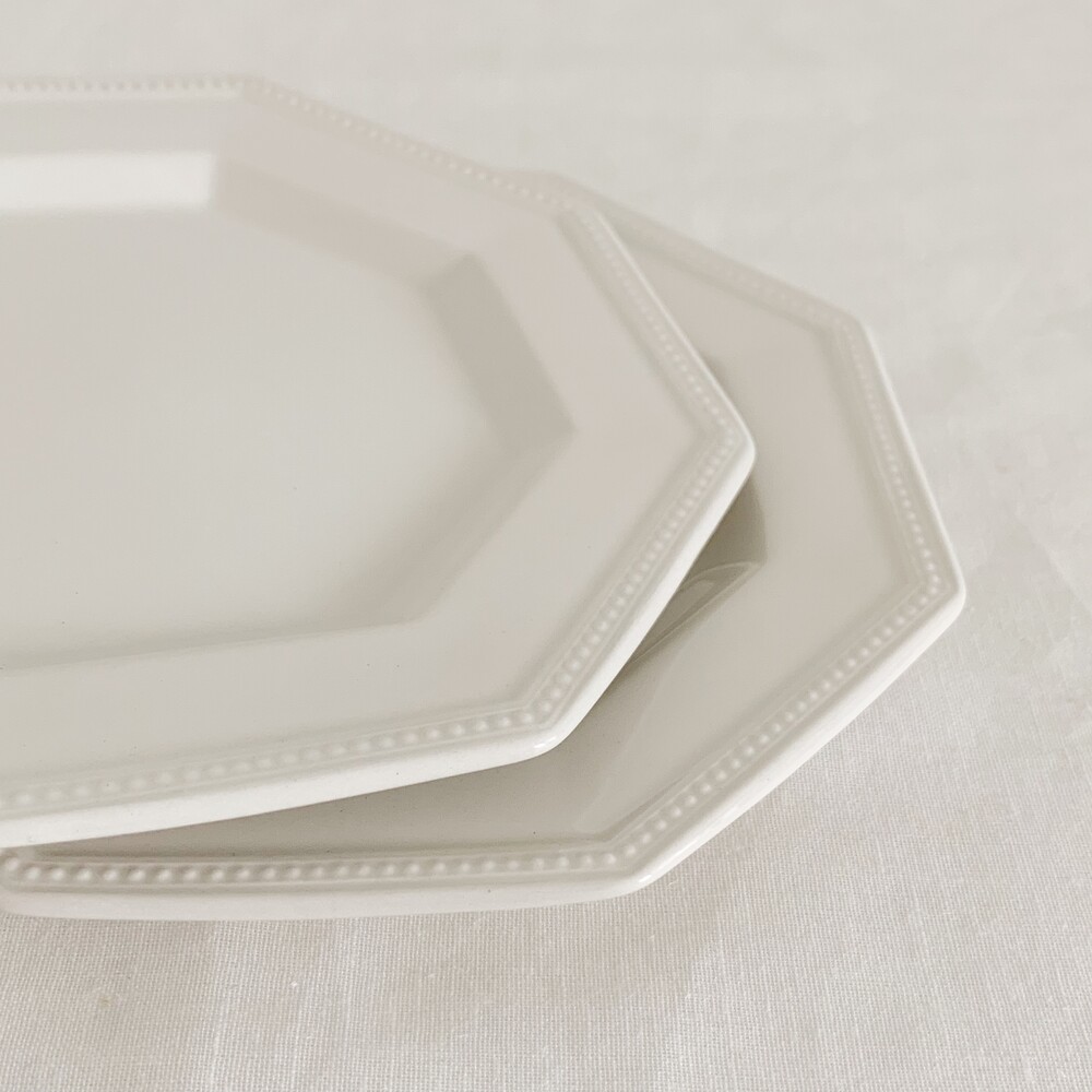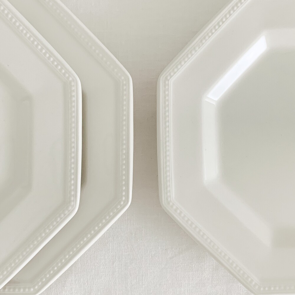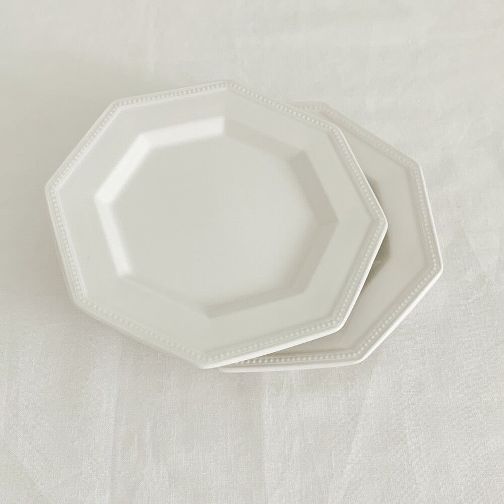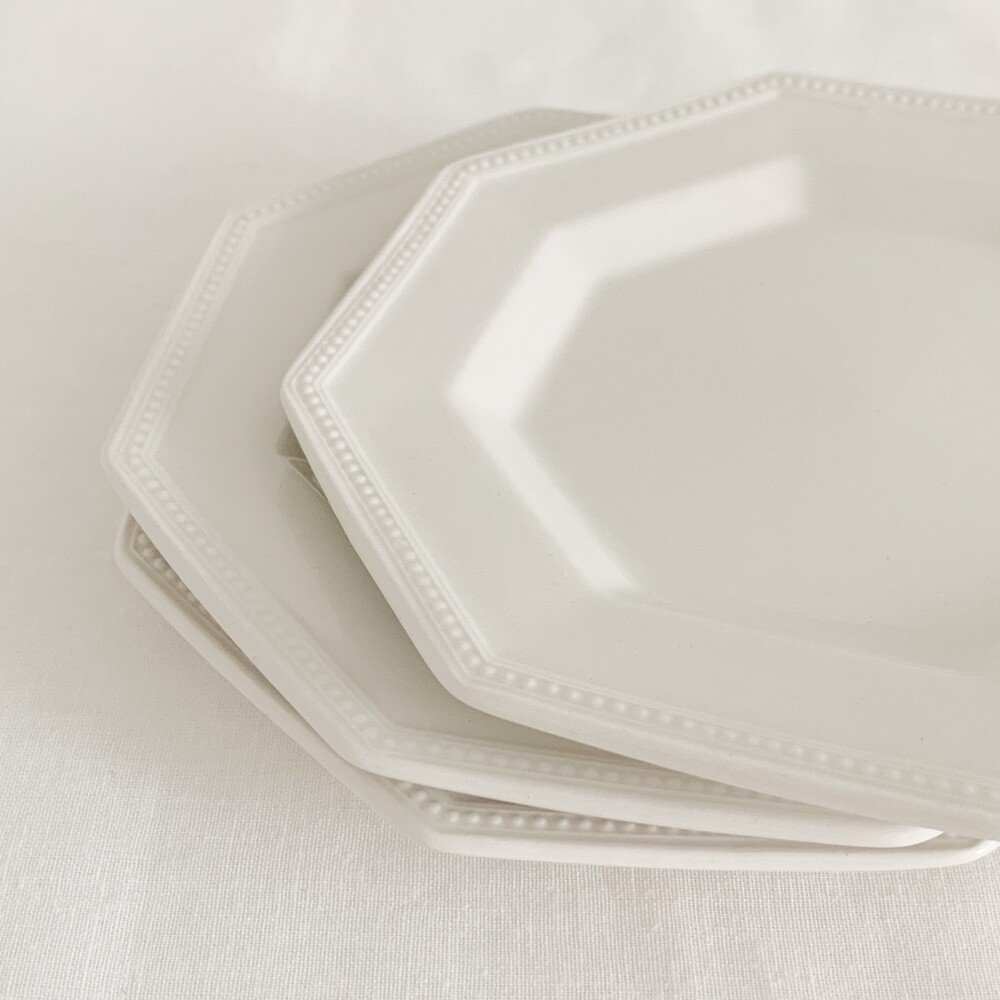 양각의 구슬 디테일과 뽀얀 하얀색의 접시가 차분하고