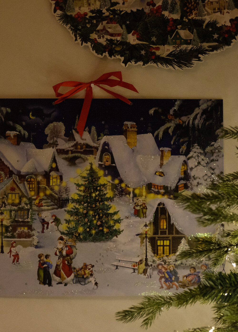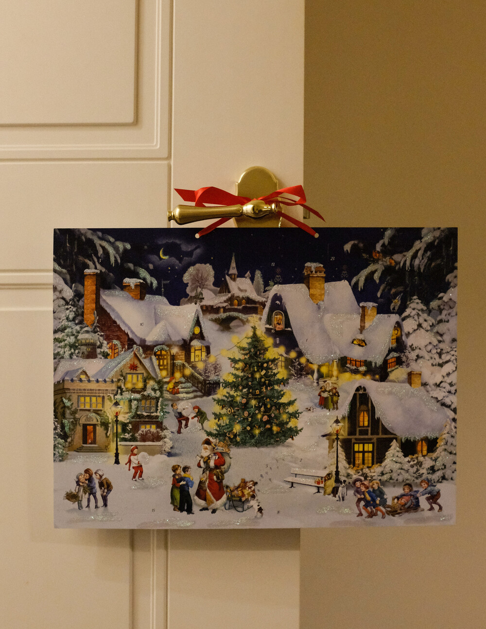 12월 1일부터 25일까지의 숫자를 따라 숨겨진 작은 카드를 열면