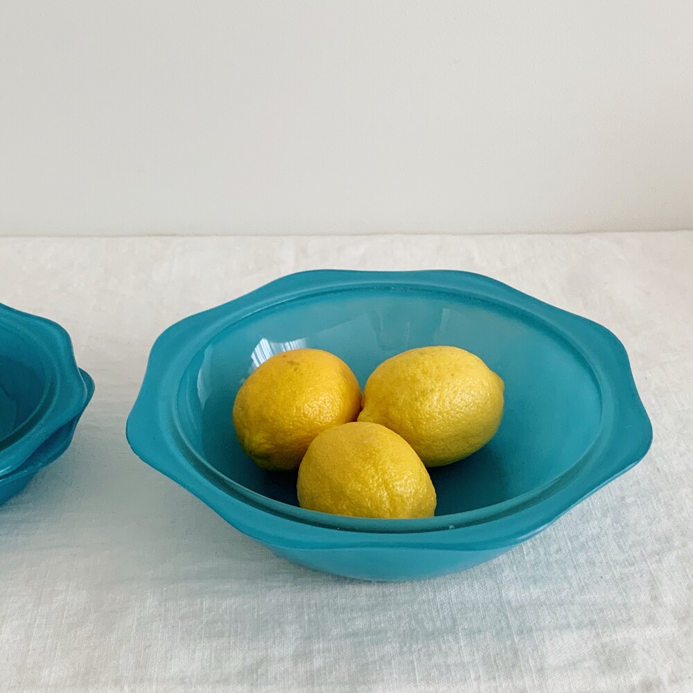 1950s pyrex aqua blue glass fruit bowl