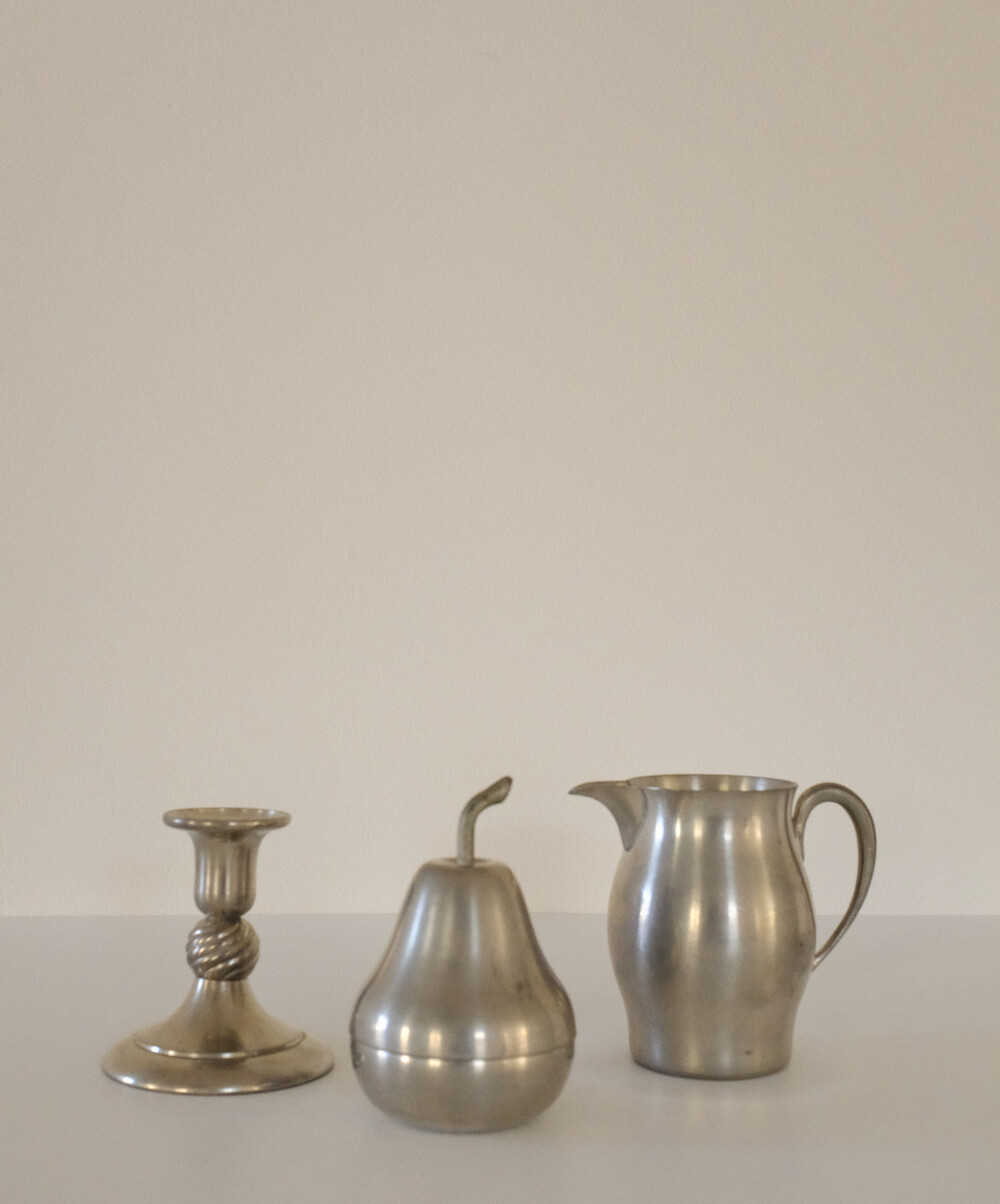 주석(pewter)은 단단하고 묵직한 무게감을 가진 소재로,