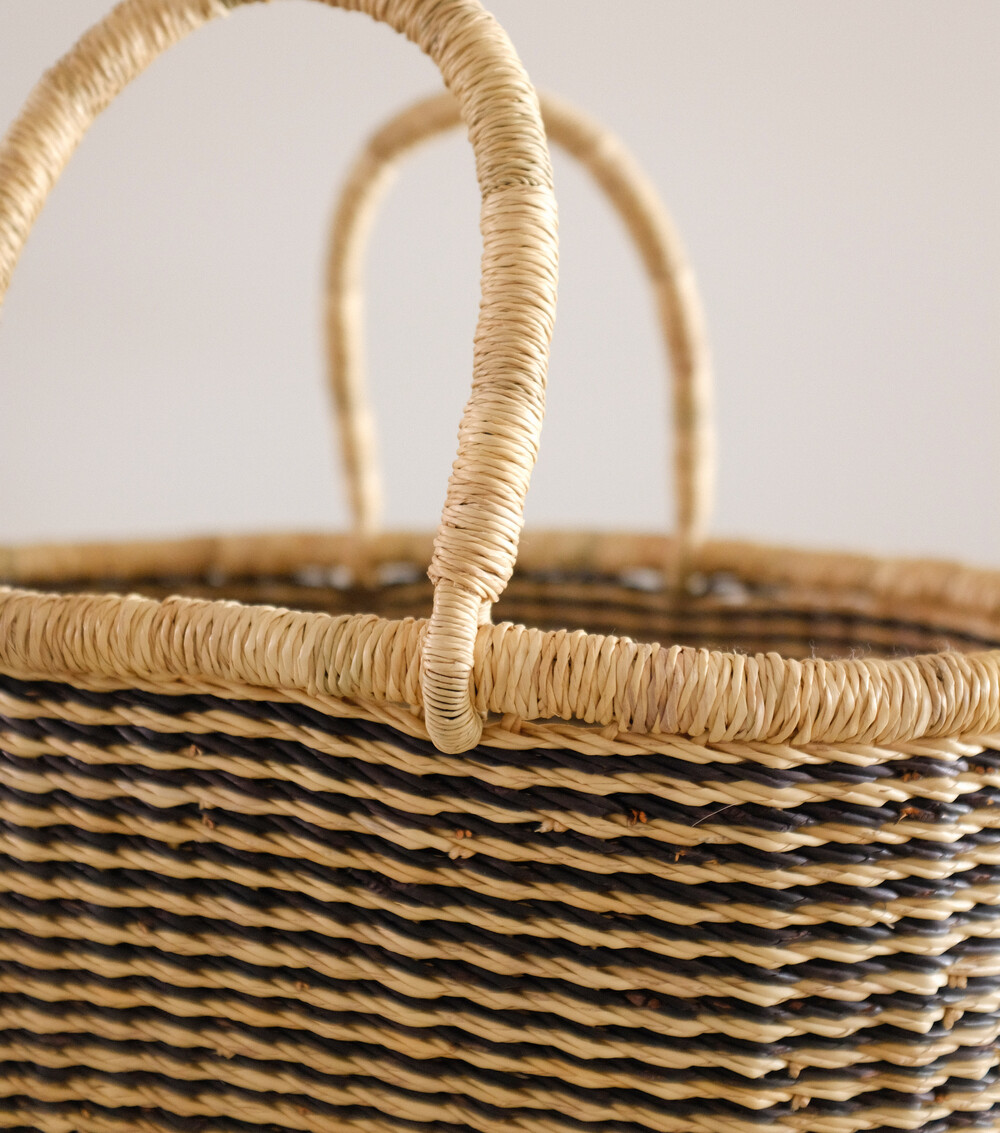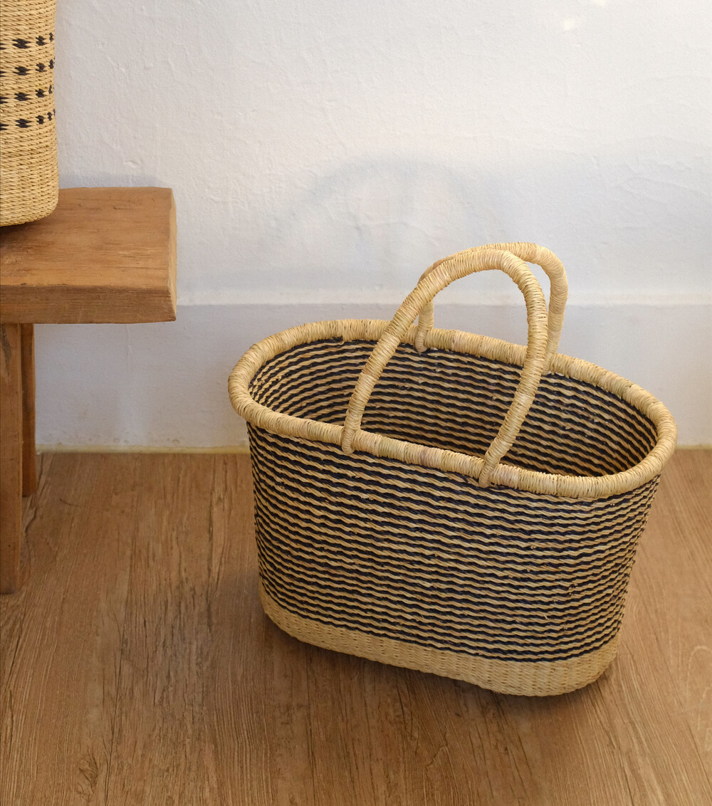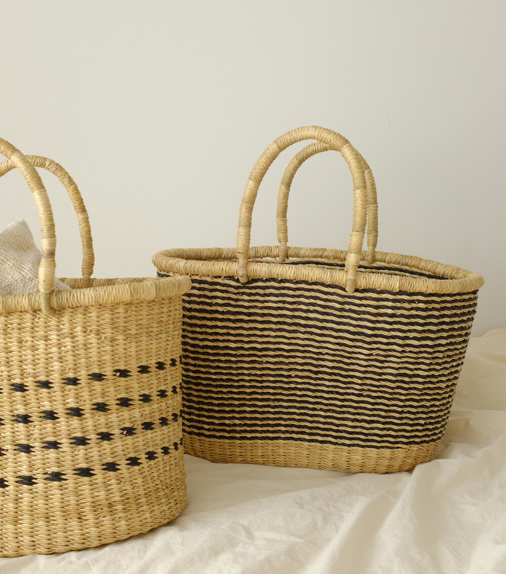 아프리카 가나의 북부지역인 볼가탕가지역에서 제작된 바스켓입니다. 가공되지 않은 자연의 재료인 가늘고 여린 코끼리 풀을