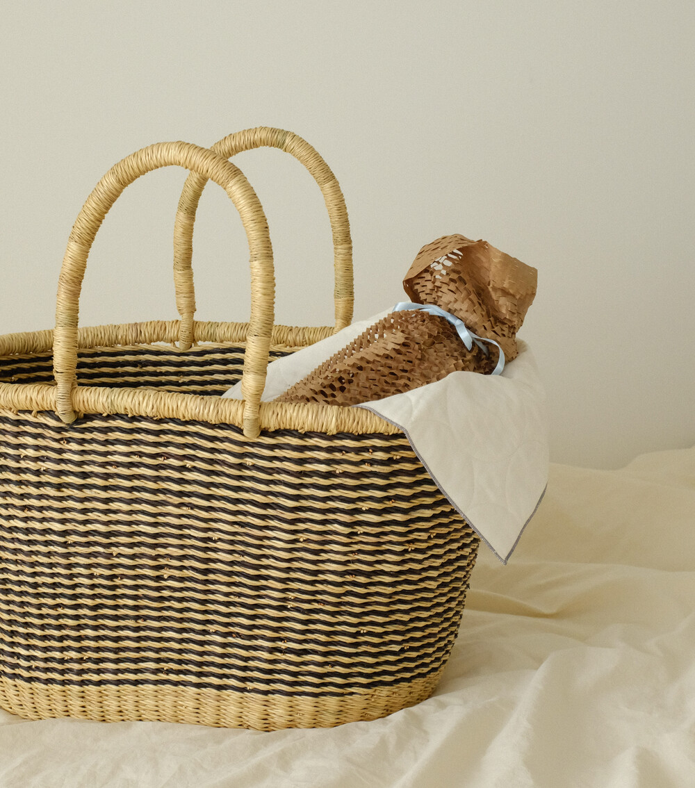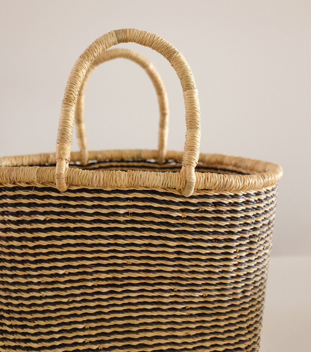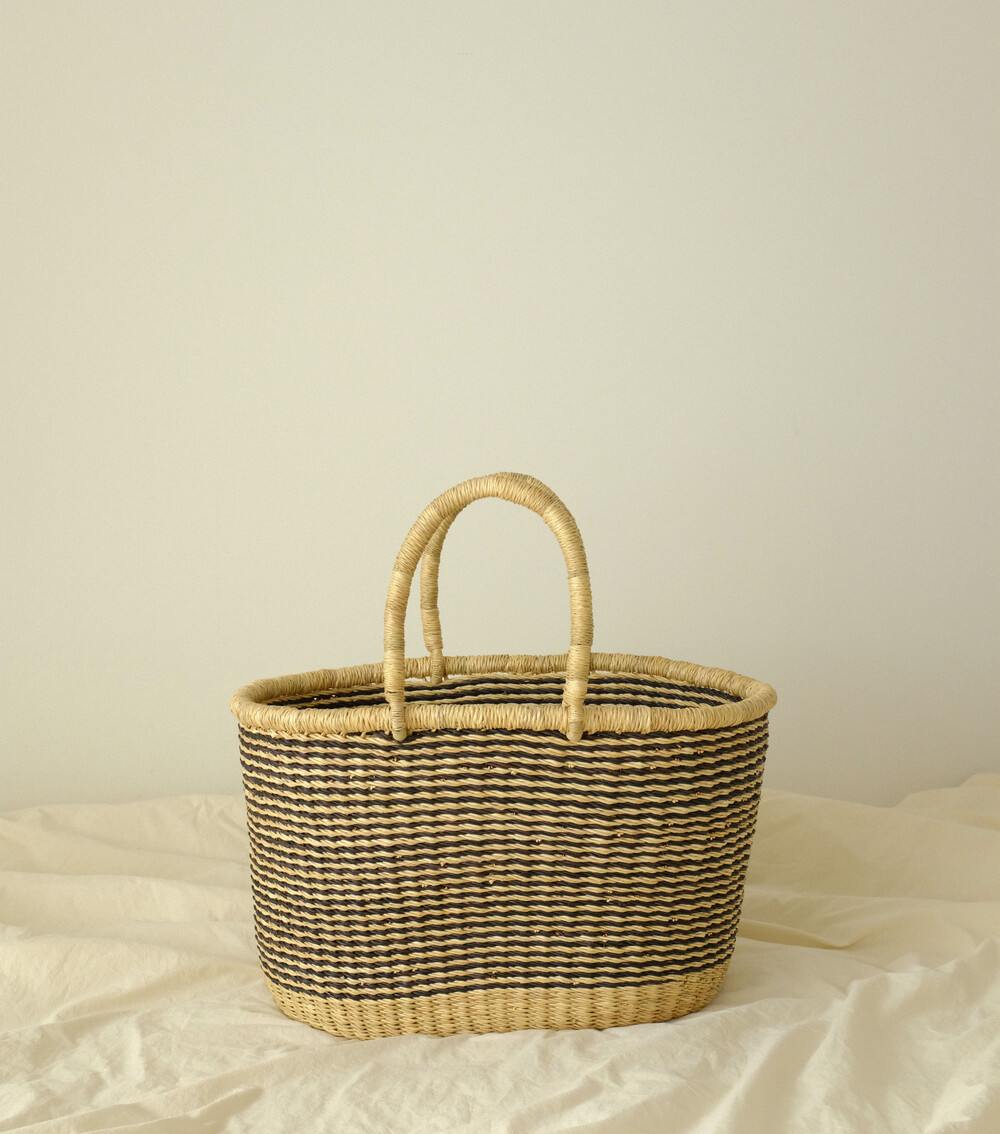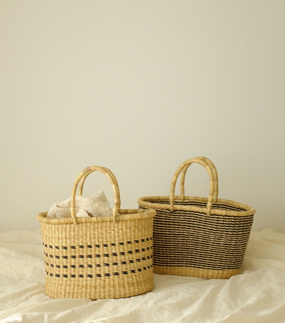 아프리카 가나의 북부지역인 볼가탕가지역에서 제작된 바스켓입니다. 가공되지 않은 자연의 재료인 가늘고 여린 코끼리 풀을