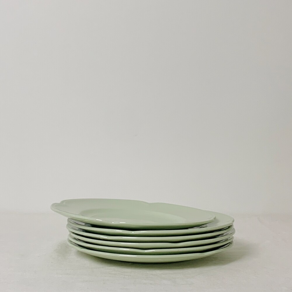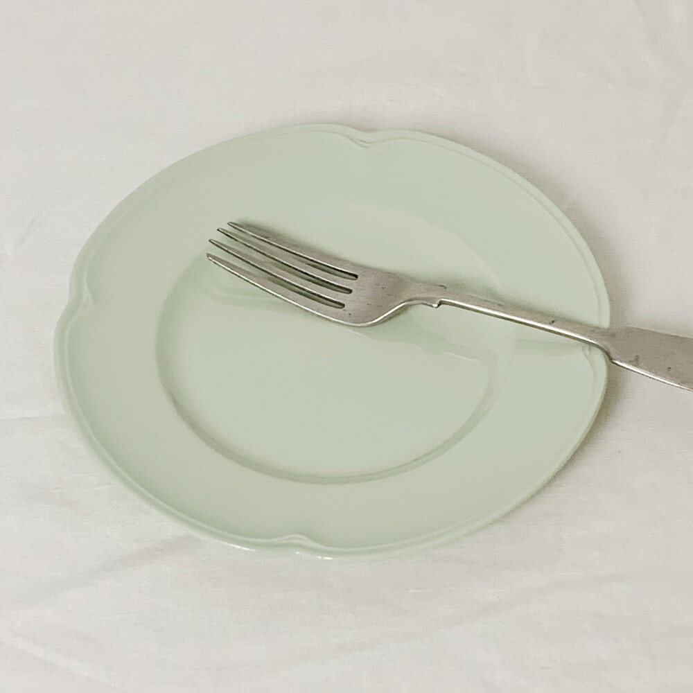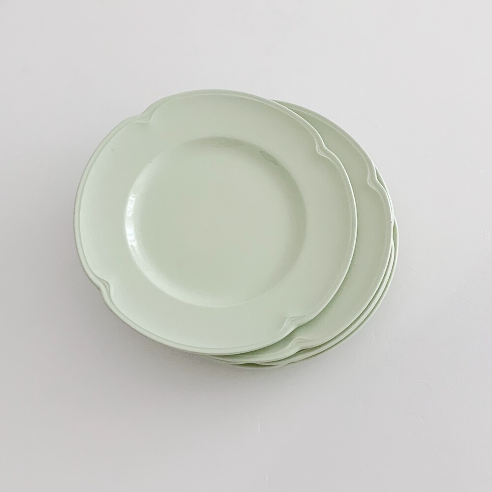 옅은 올리브그린색을 띄는 접시로, 가장자리에 표현된