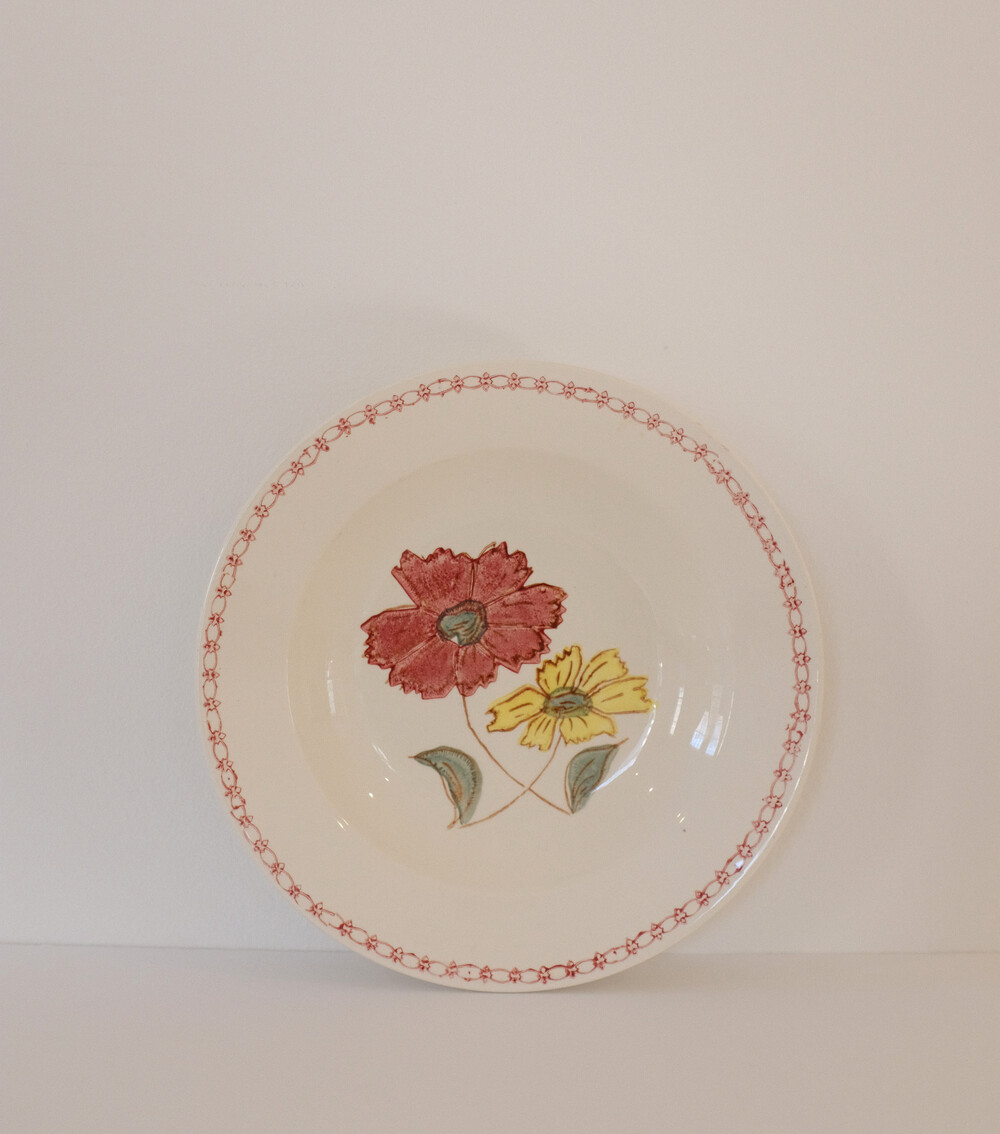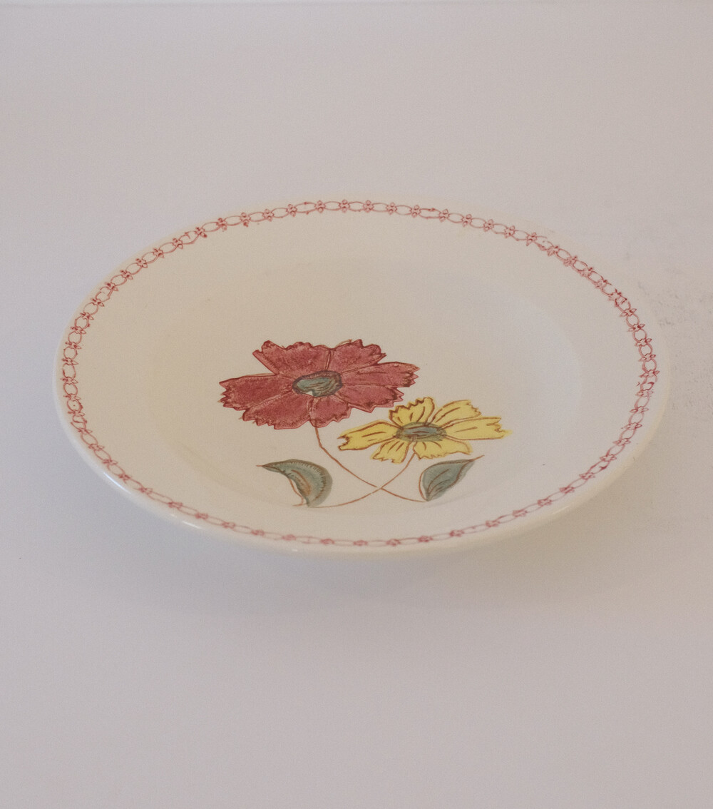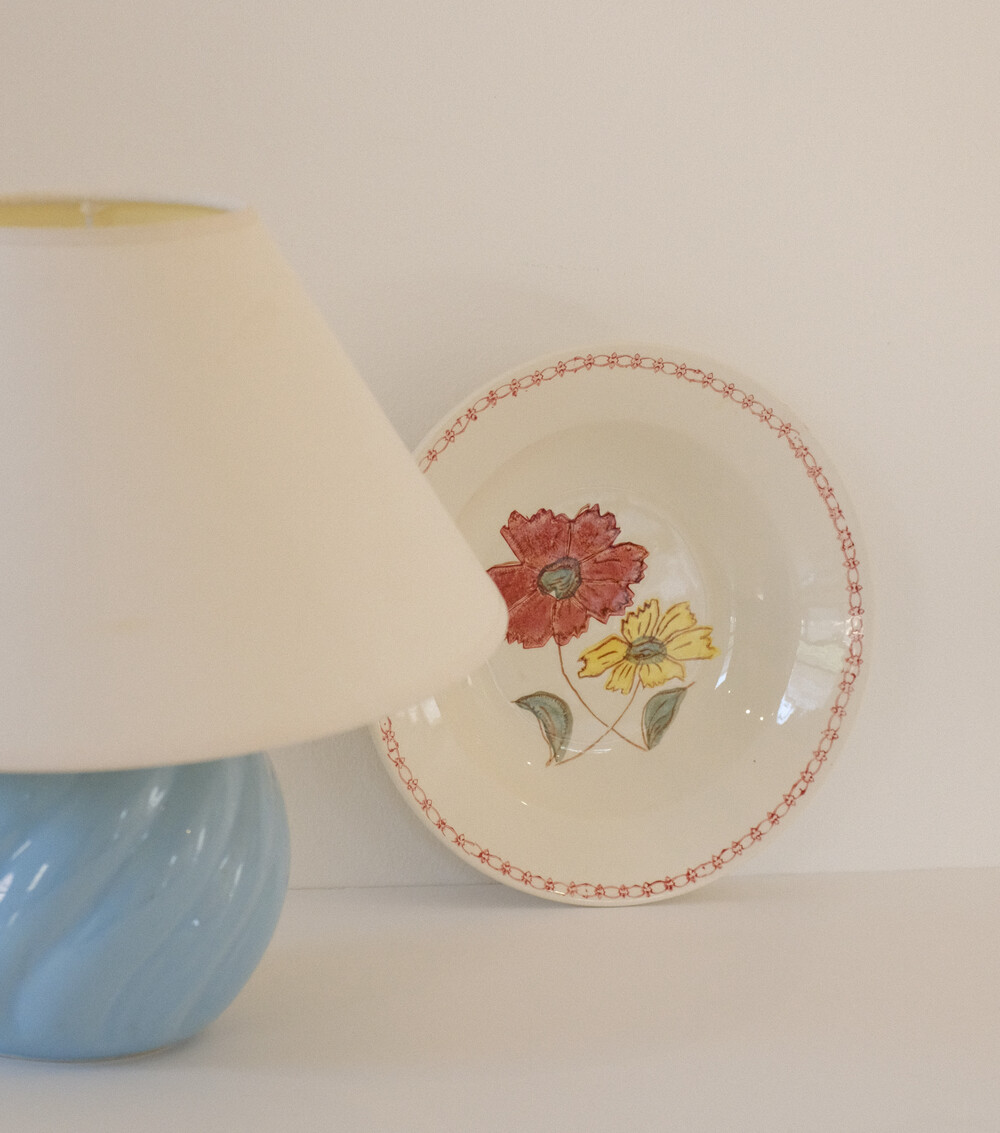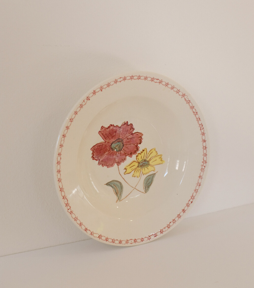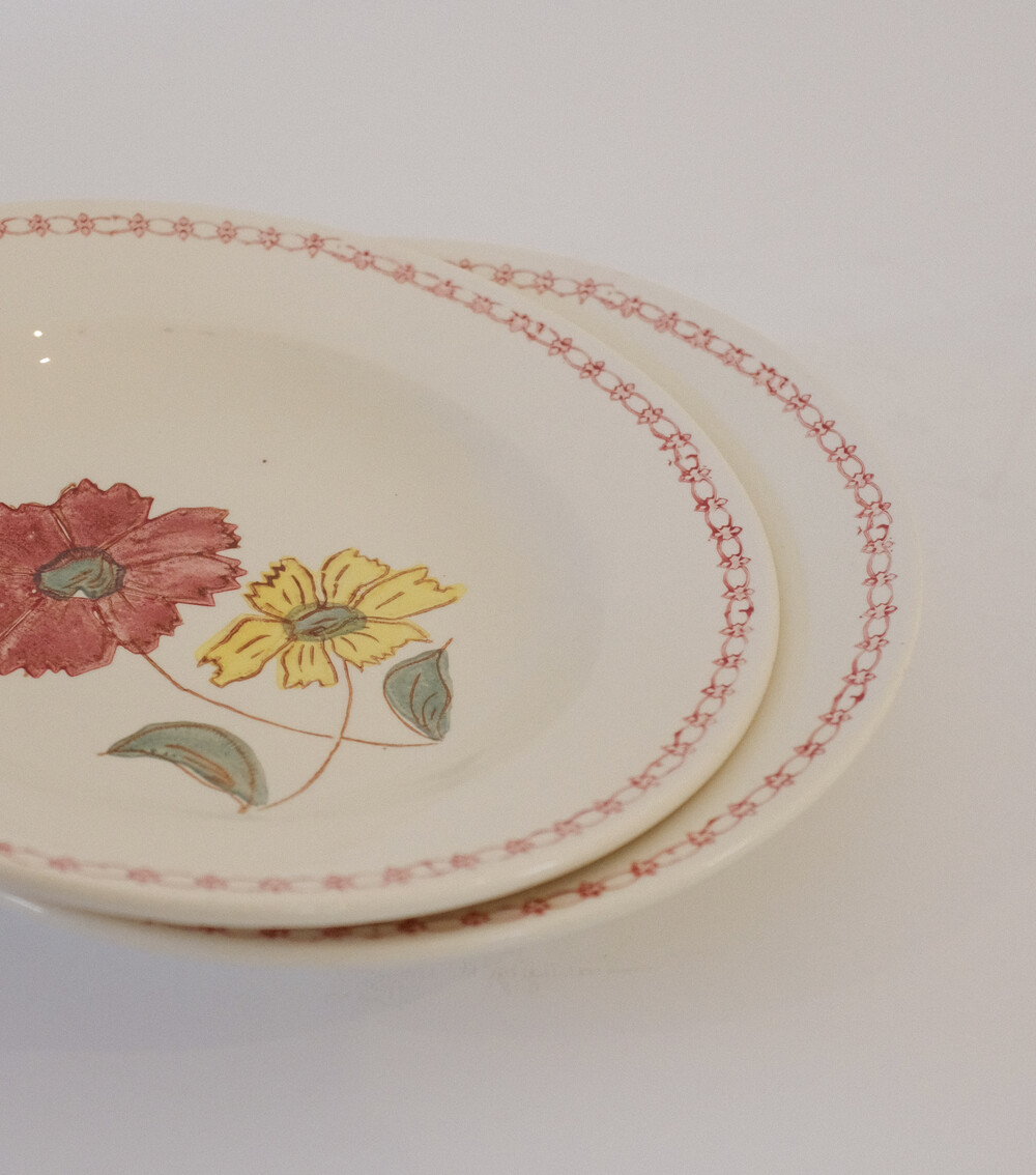 접시의 안쪽 테두리를 따라 둘러진 잔잔한 플로럴 디테일과