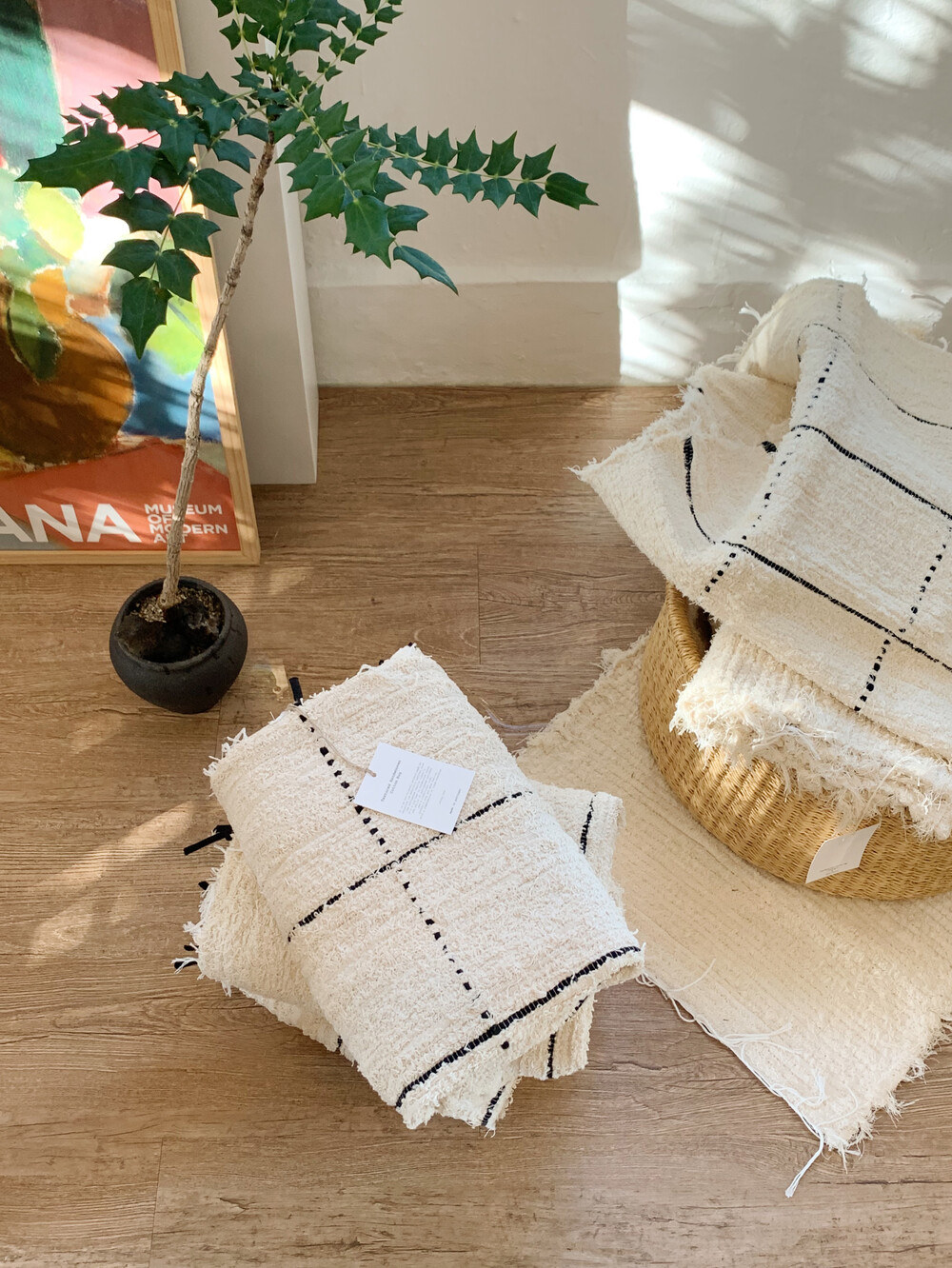 수작업으로 짜여진 러그로, 섬유산업에서 남은 원료를 재사용하여