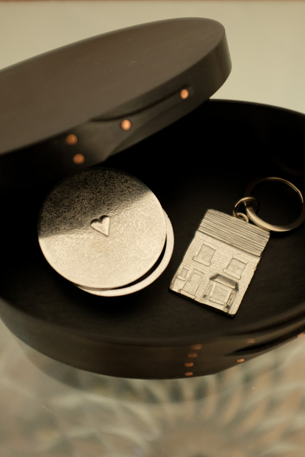 은백색을 띄는 주석소재 특유의 묵직하고 투박한 질감은
