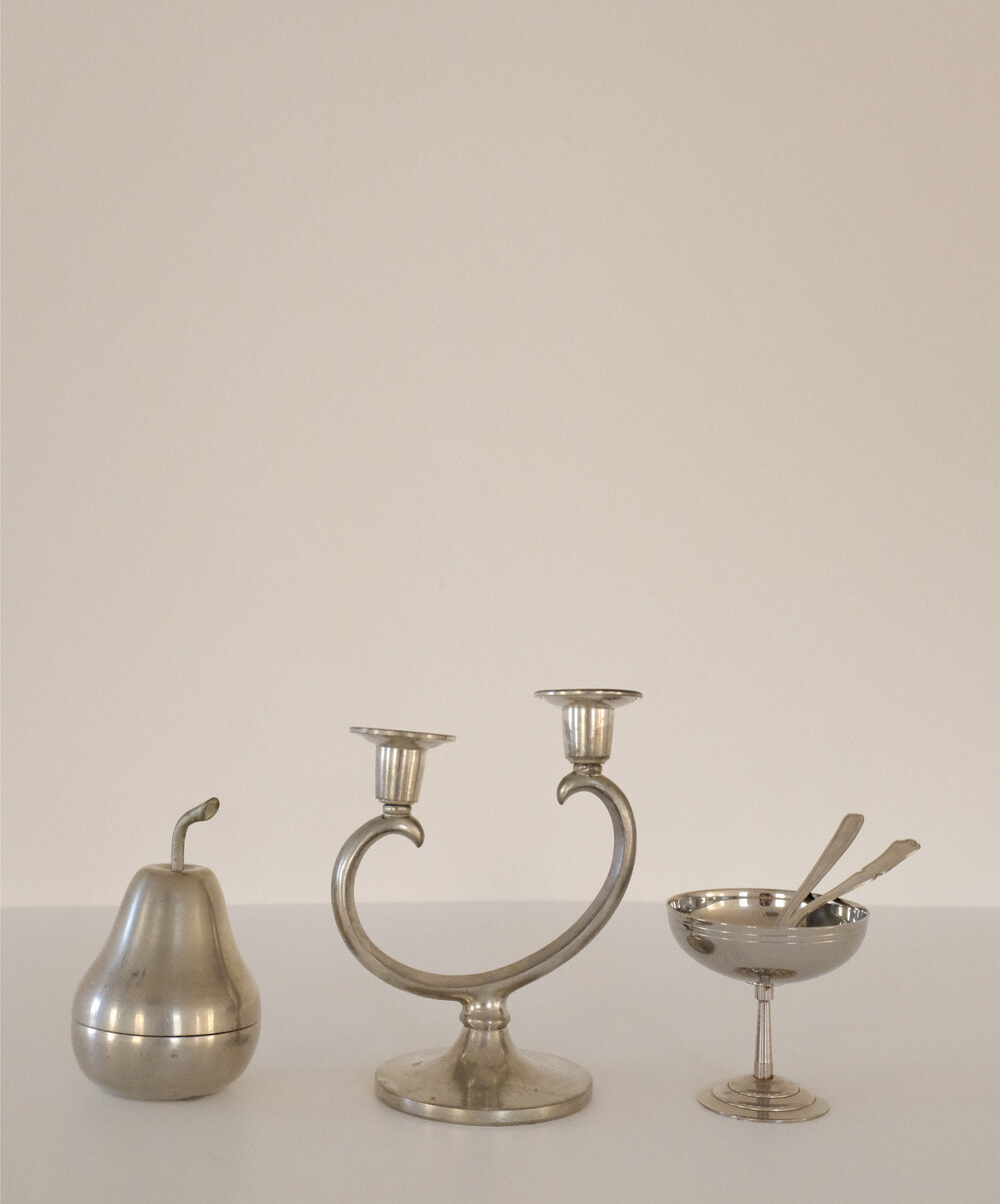 주석(pewter)은 단단하고 묵직한 무게감을 가진 소재로,