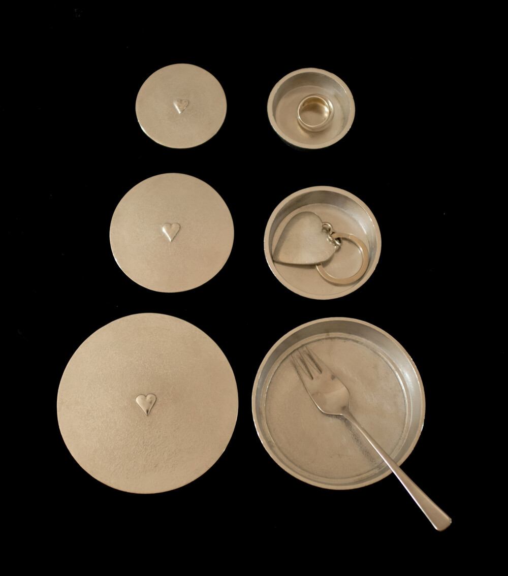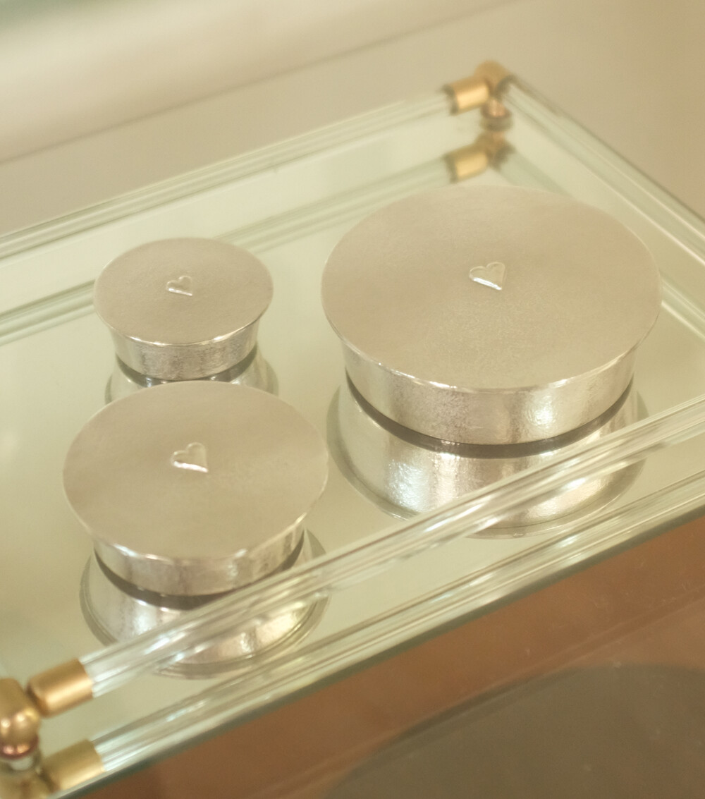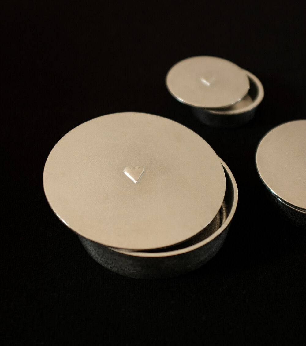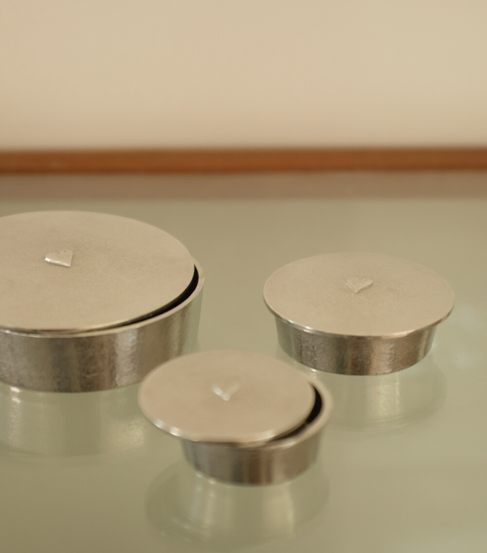 양각의 하트가 새겨진 3가지 사이즈의 트링켓 박스로,