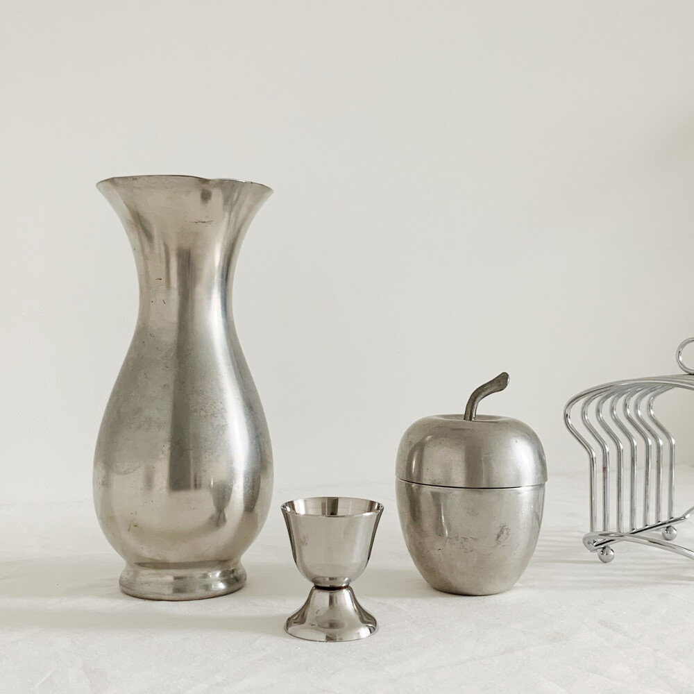 주석(pewter)은 단단하고 묵직한 무게감을 가진 소재로,