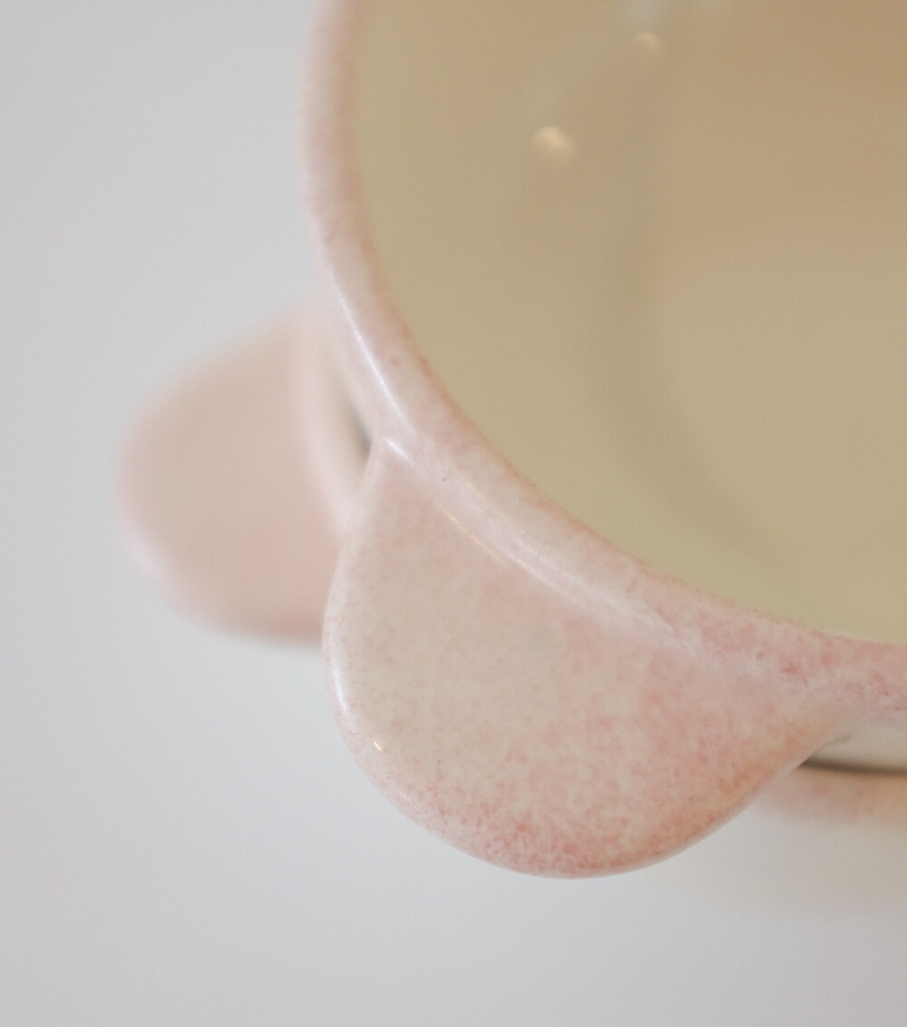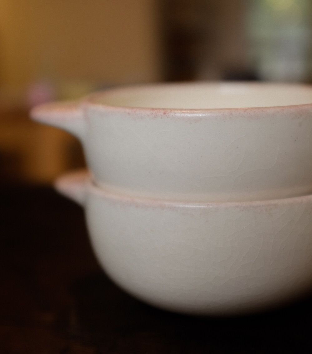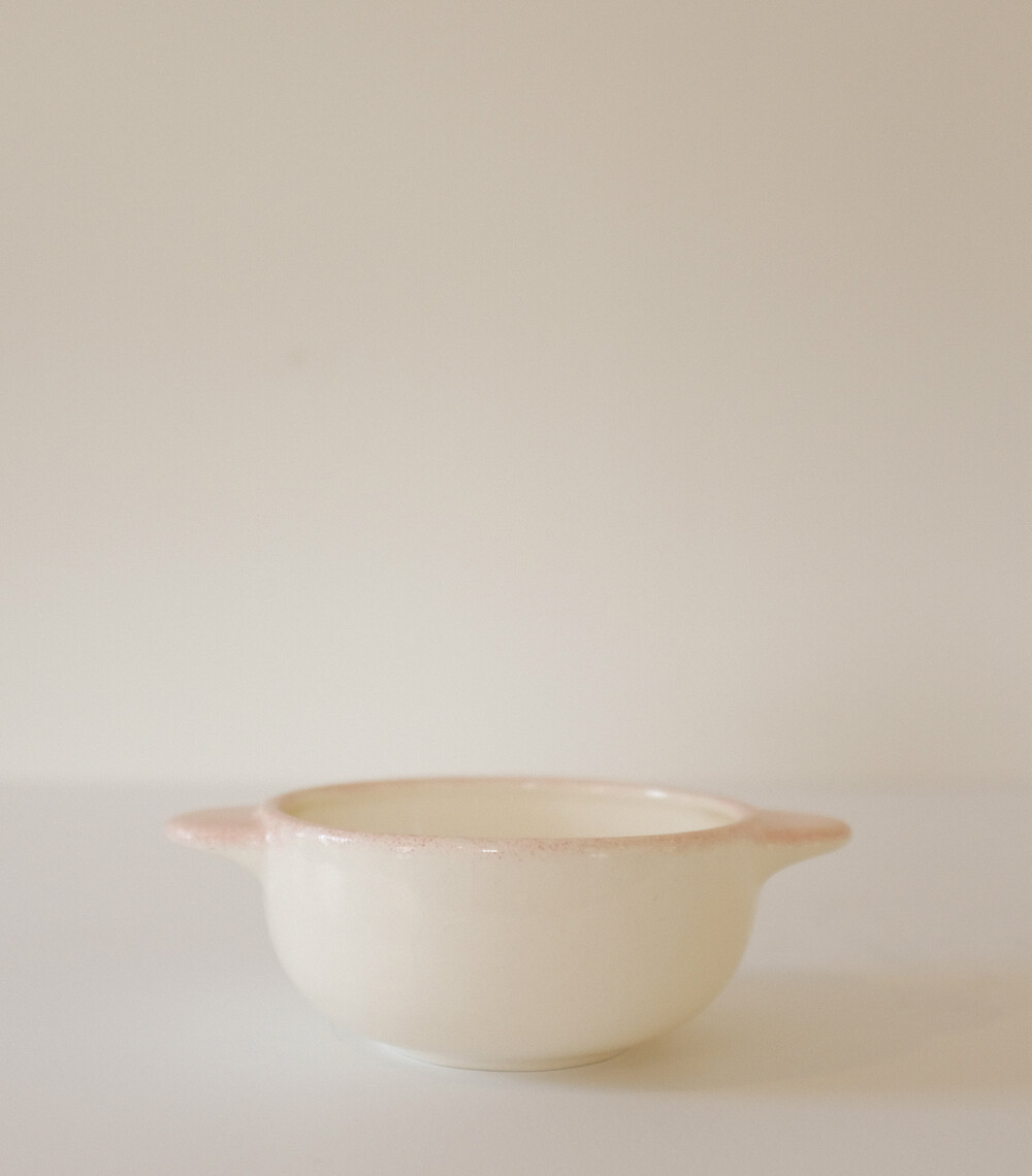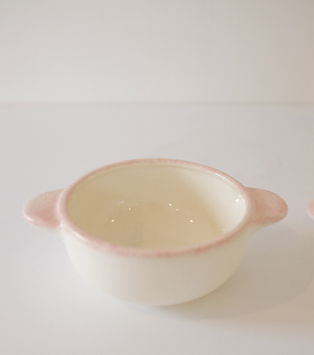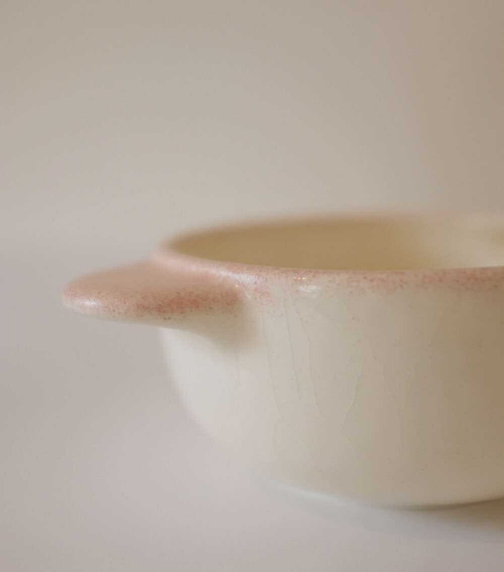 보울의 가장자리와 손잡이에 옅은 분홍빛의 안료를
