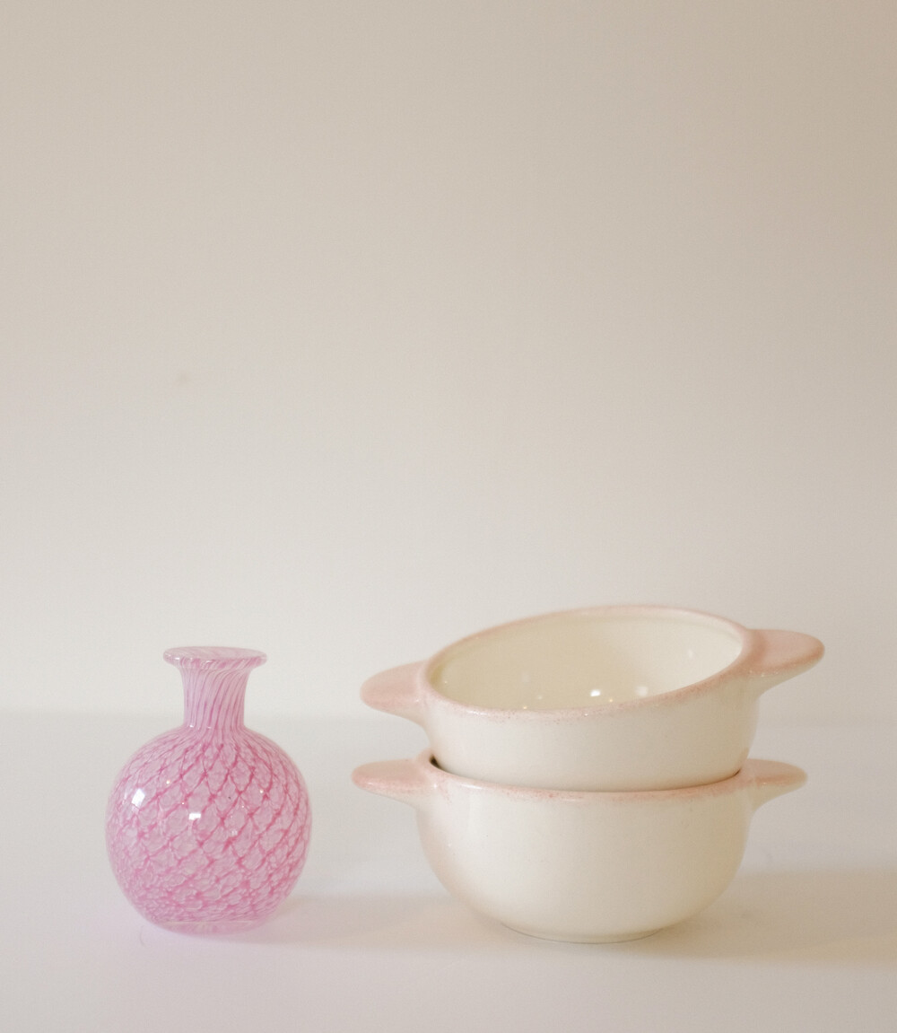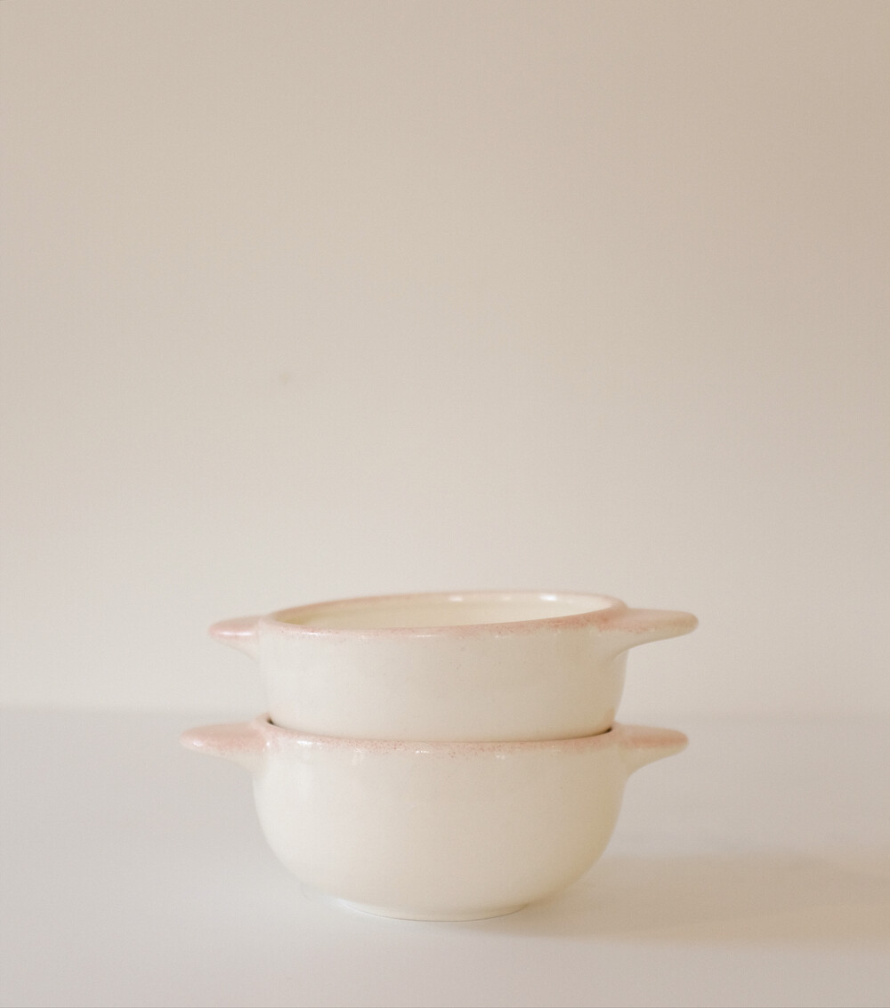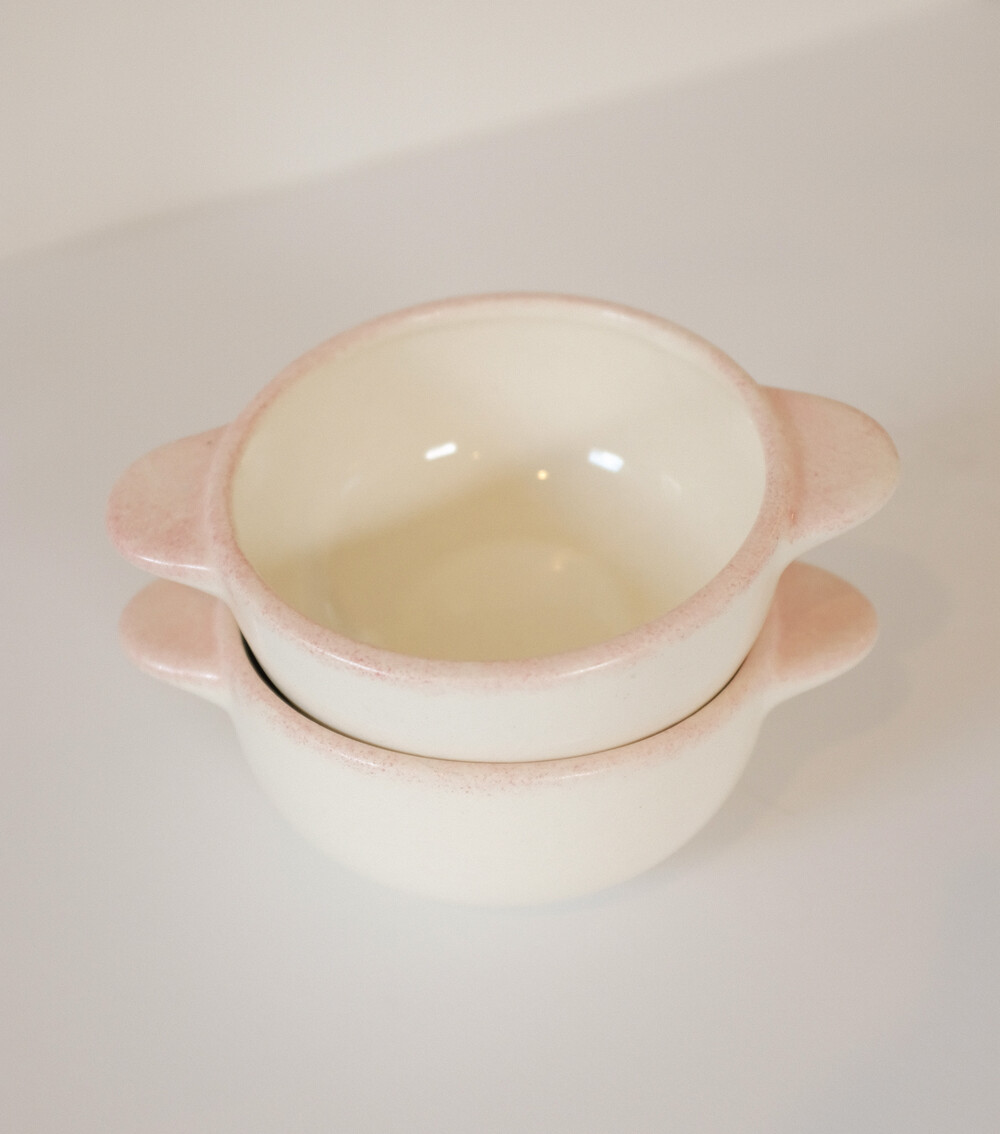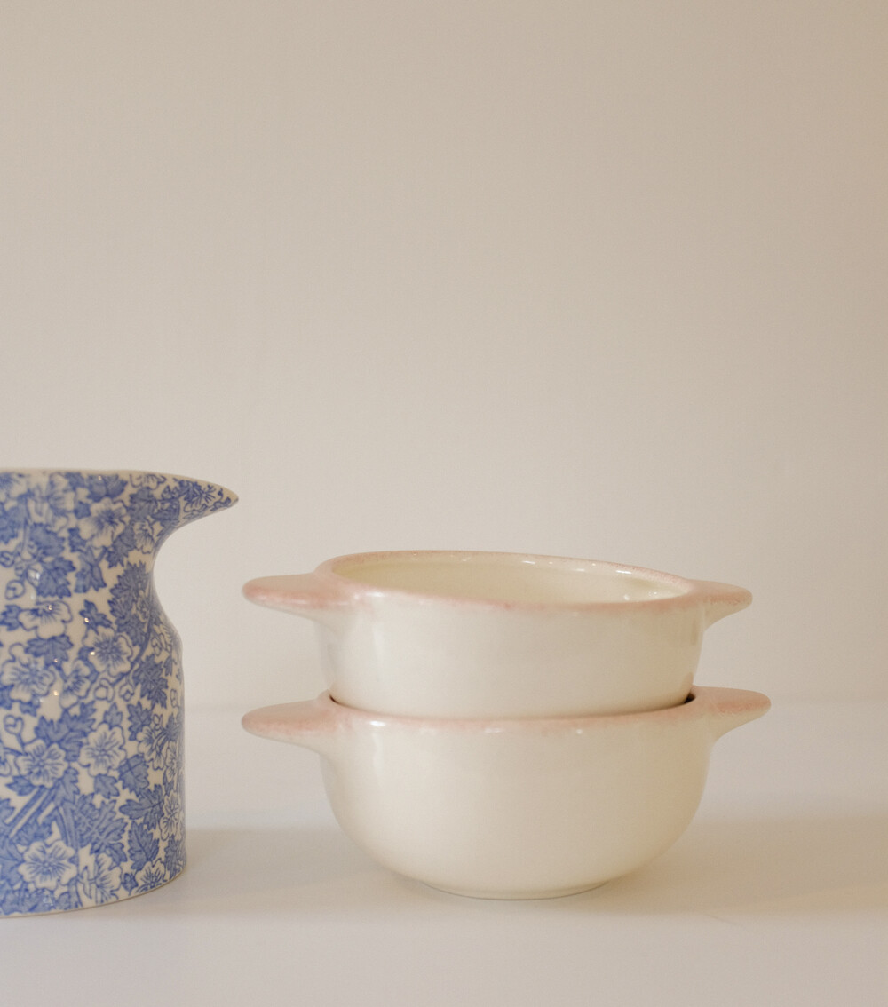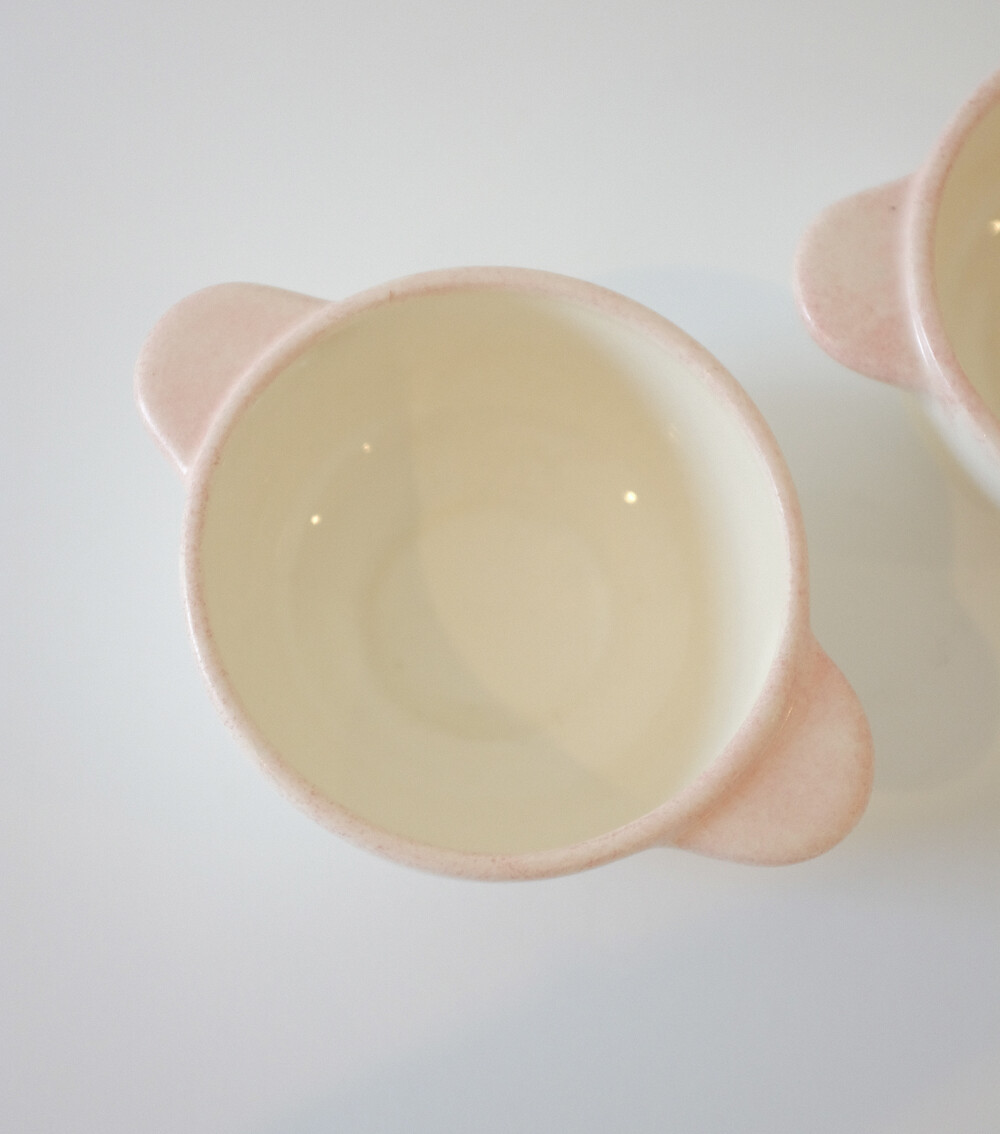 보울의 가장자리와 손잡이에 옅은 분홍빛의 안료를