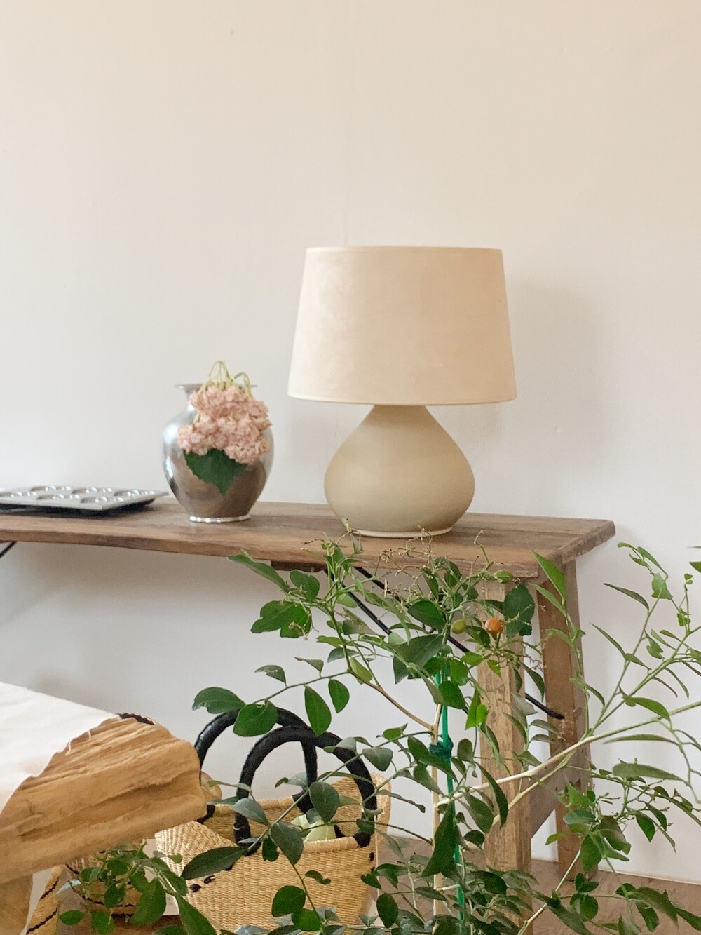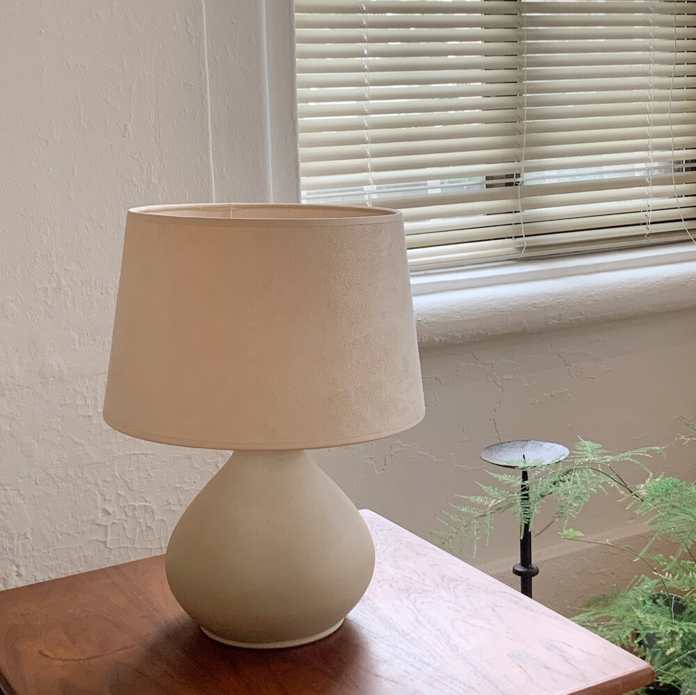 *부드러운 스웨이드 재질로 감싸진 램프쉐이드입니다.