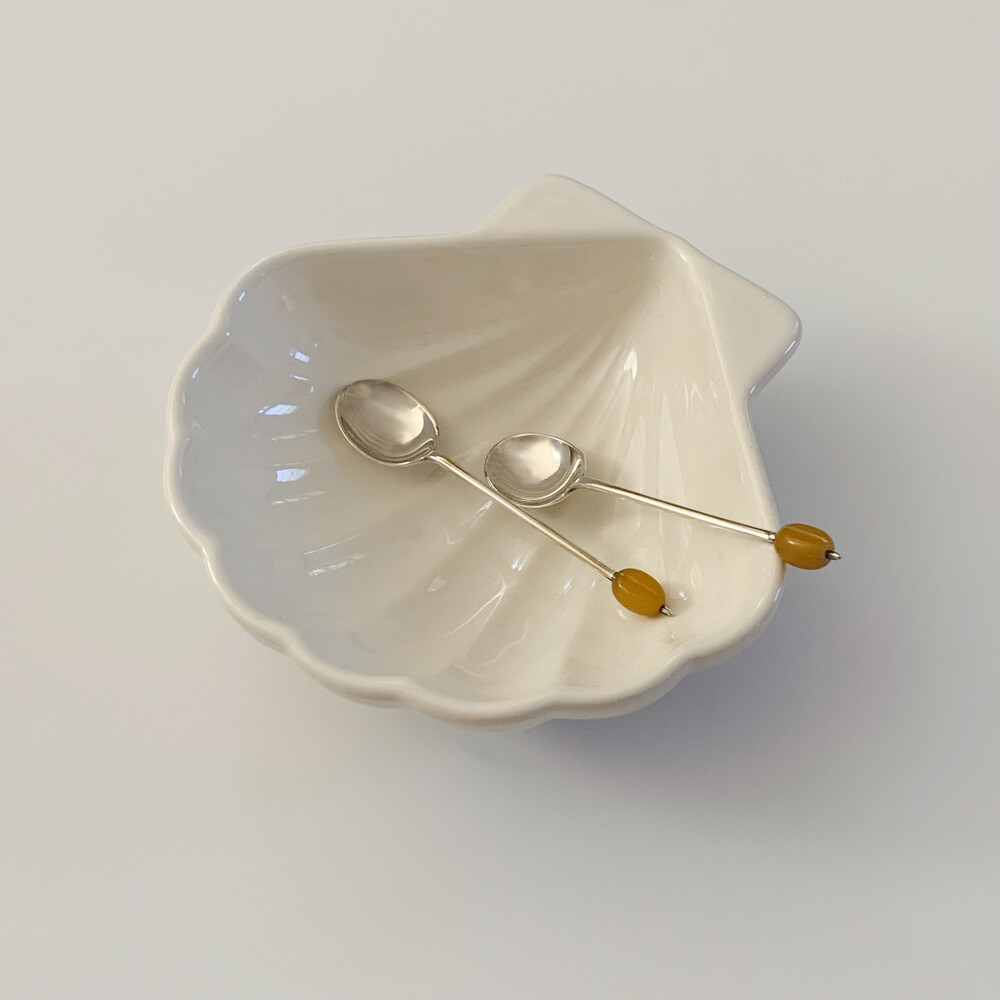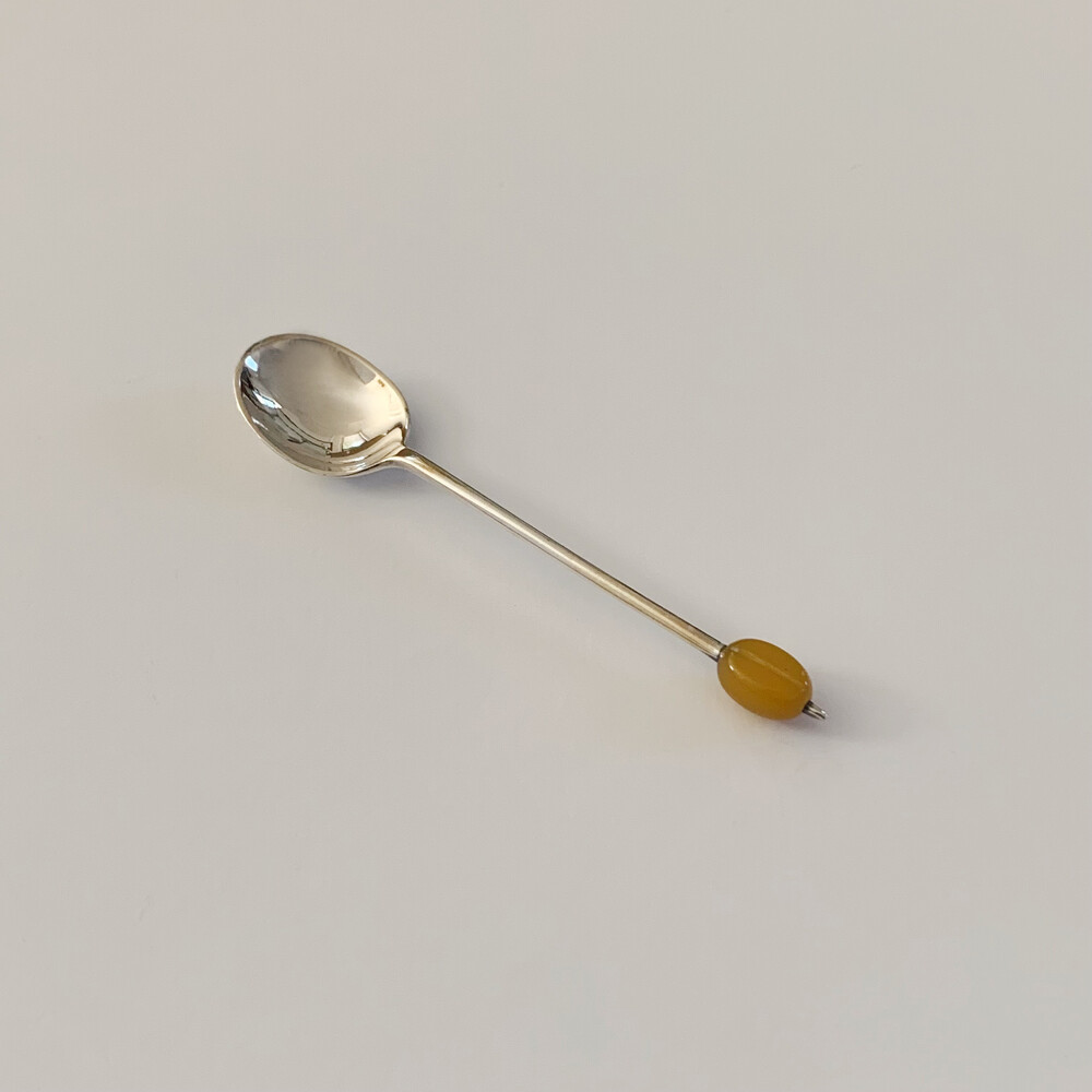 손잡이 끝의 머스터드빈 디테일이 티타임의