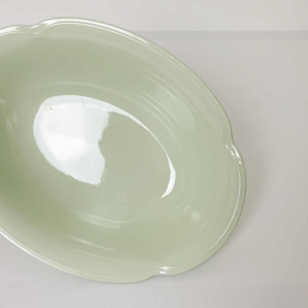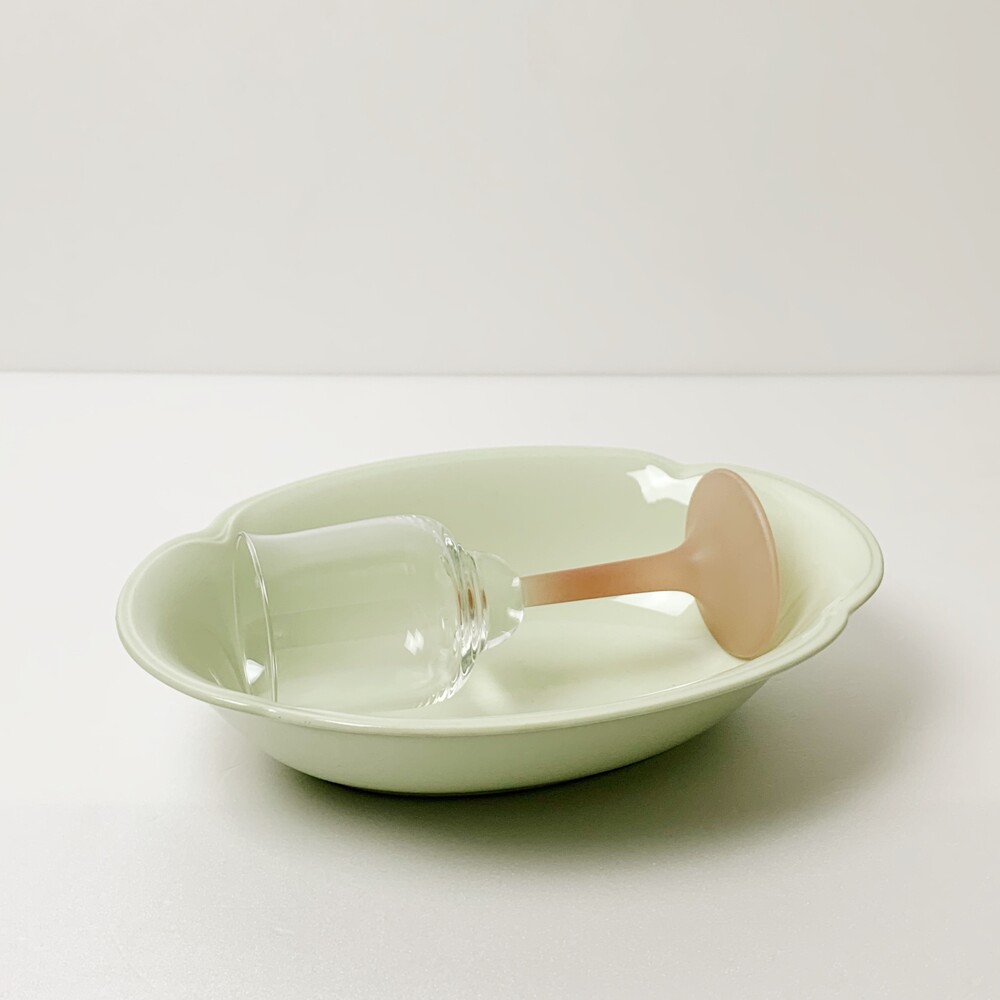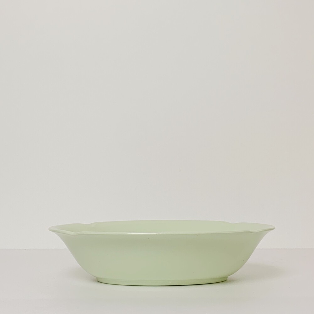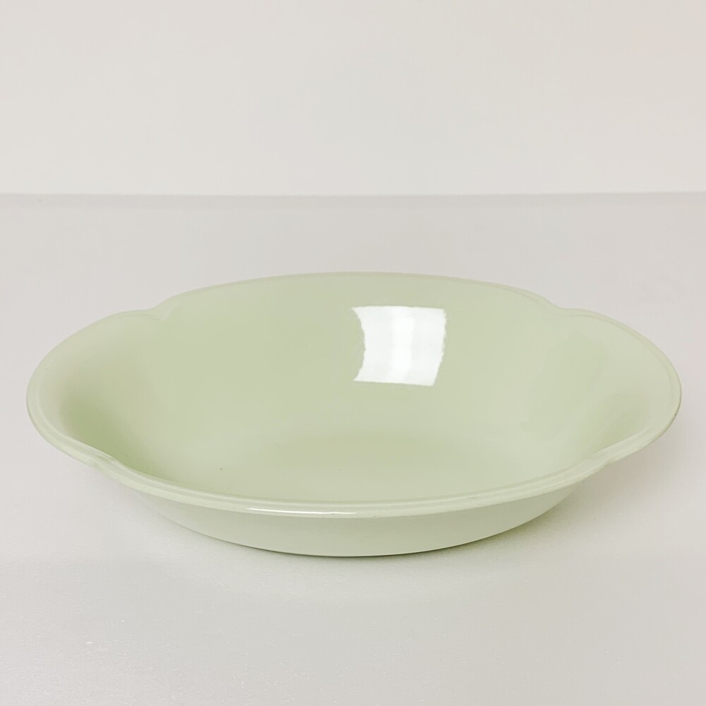 옅은 올리브그린색을 띄는 접시로, 가장자리에 표현된