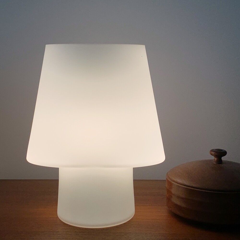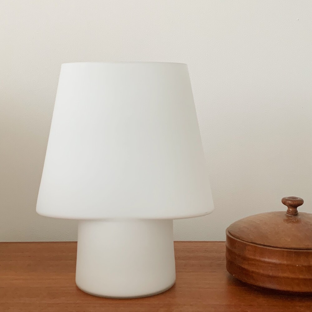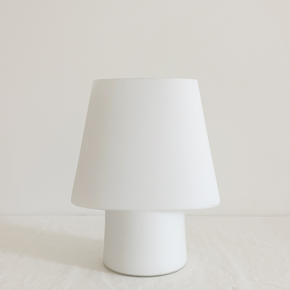 매트한 질감의 오팔린 글래스로 제작된 램프로,
