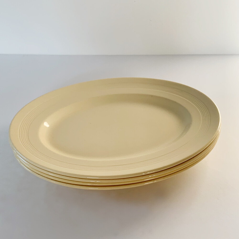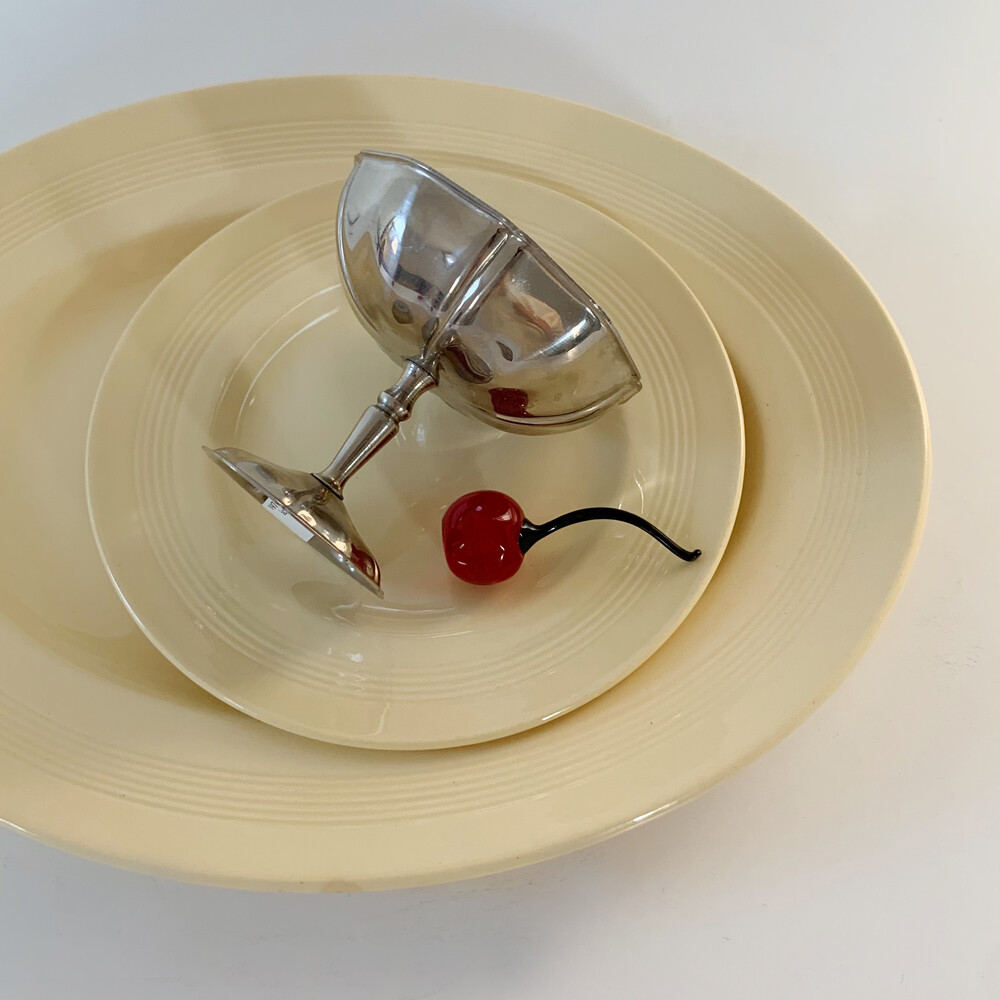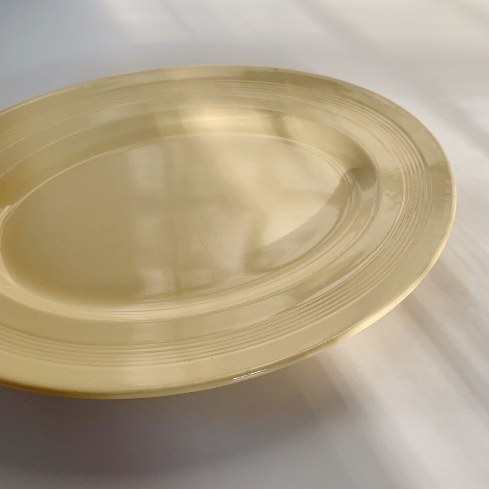 부드러운 커스터드 컬러의 접시와, 접시의 테두리를 따라