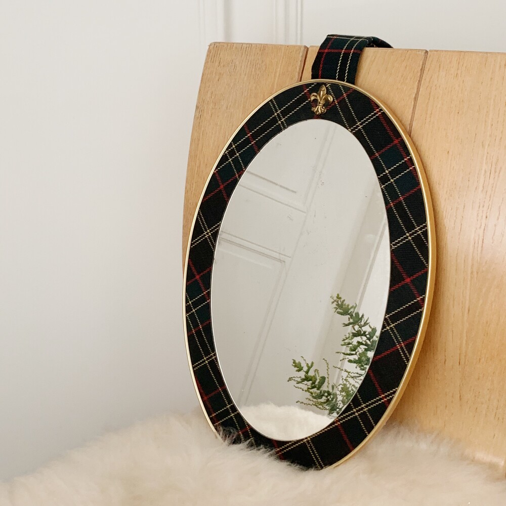아름다운 오발 형태의 거울과 이를 감싸는 짙은 초록색의