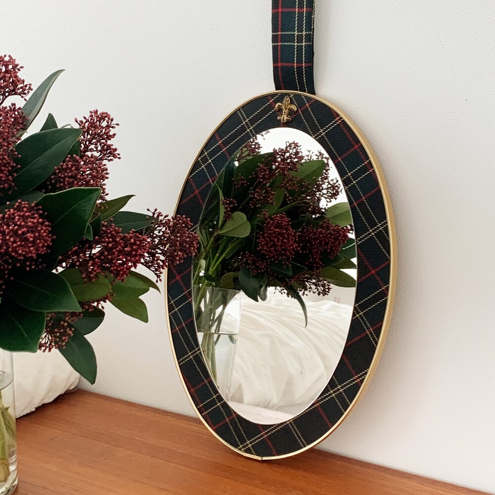 가벼운 무게로 벽에 기대어두거나 거울에 달린 패브릭 스트랩을 이용해
