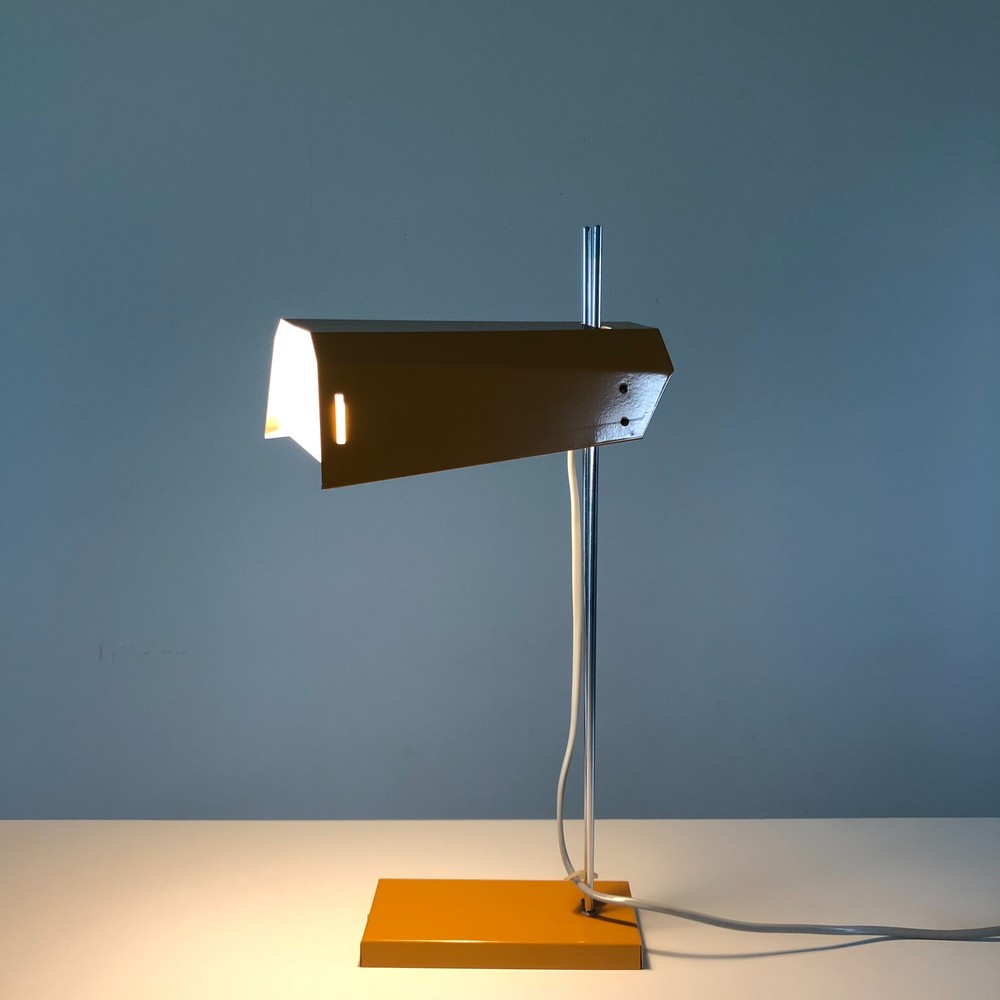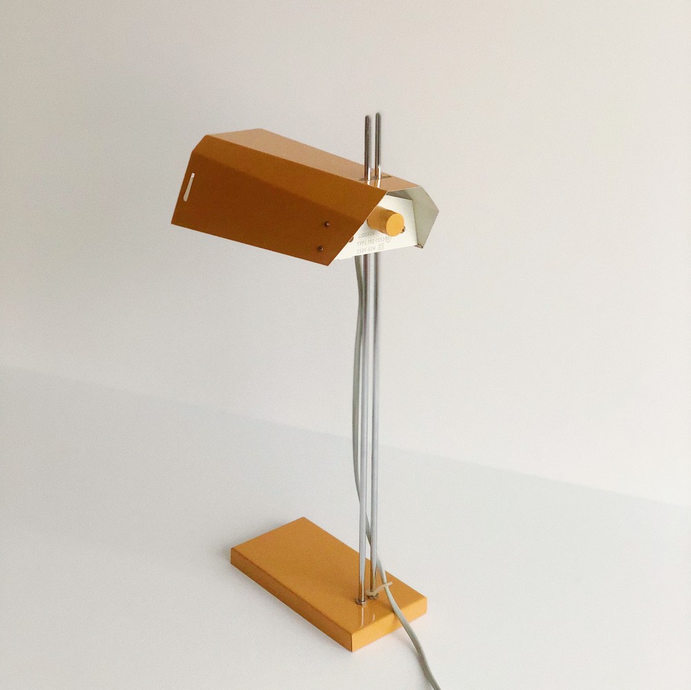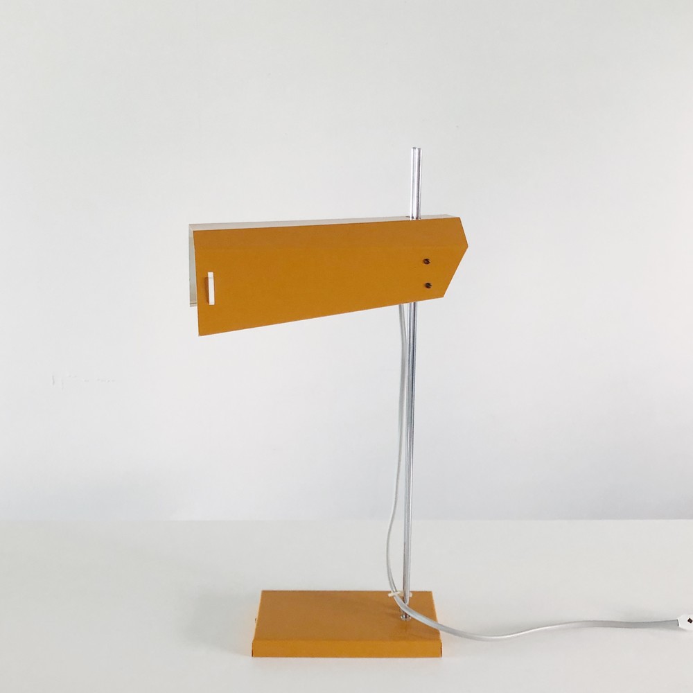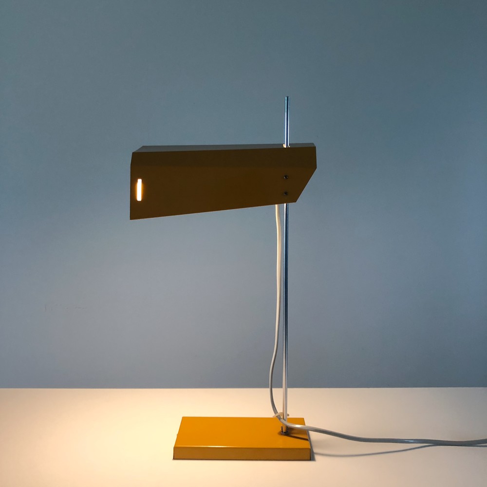 직선적인 디자인과 세련된 머스터드 컬러가 돋보이는 램프로,