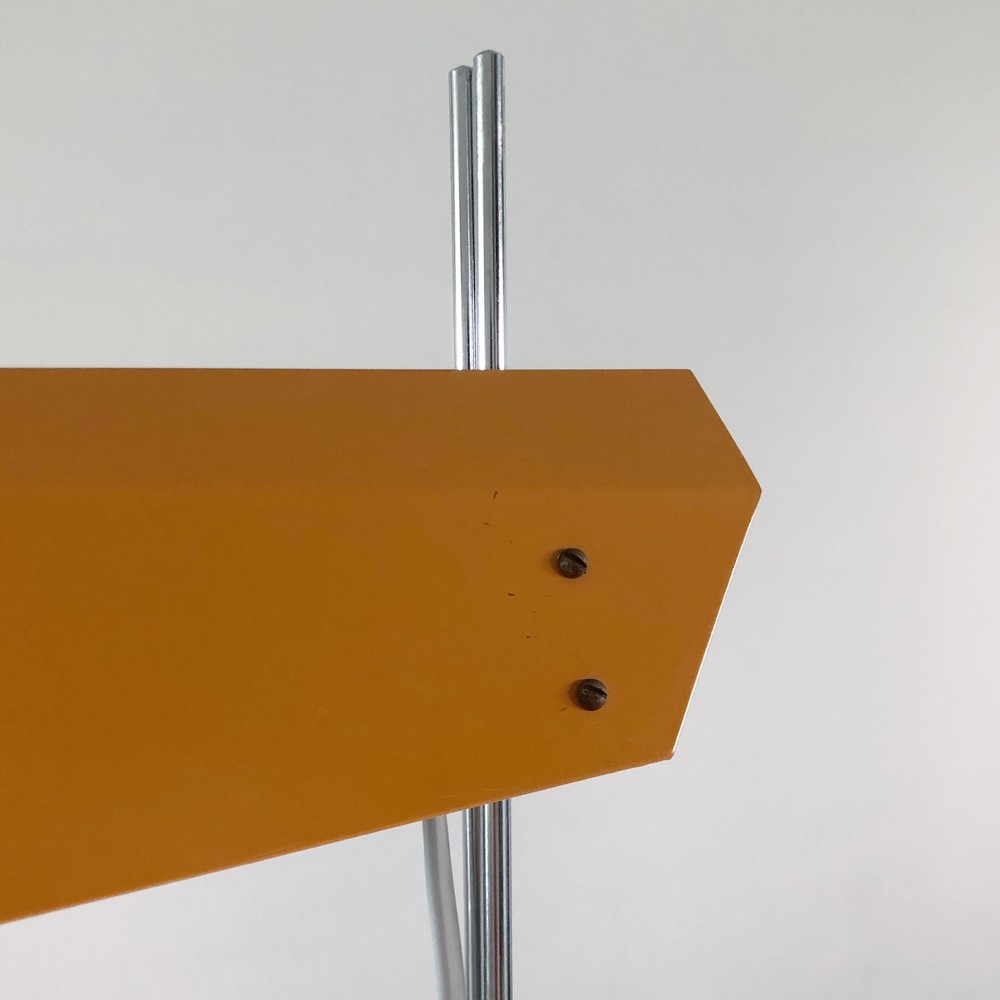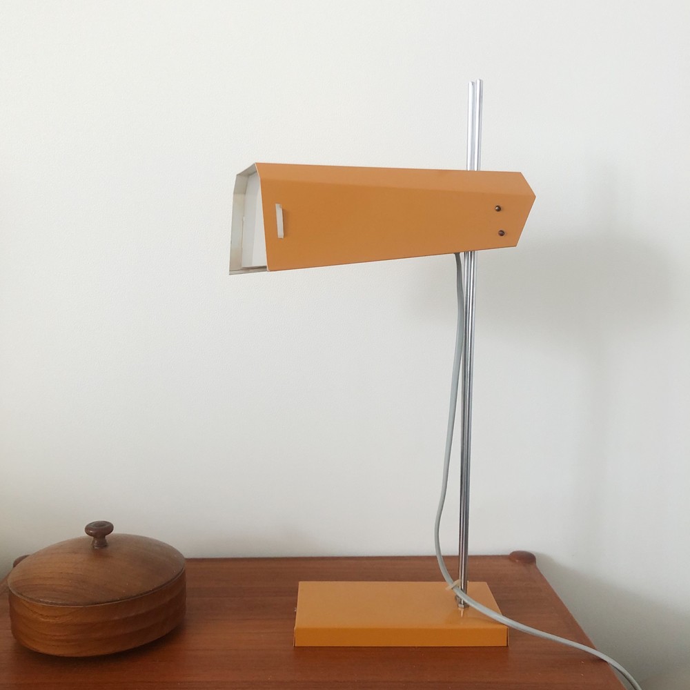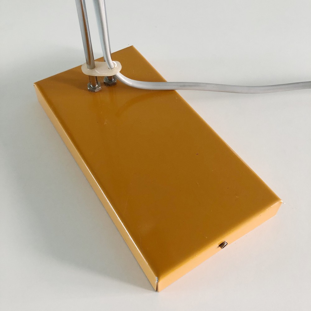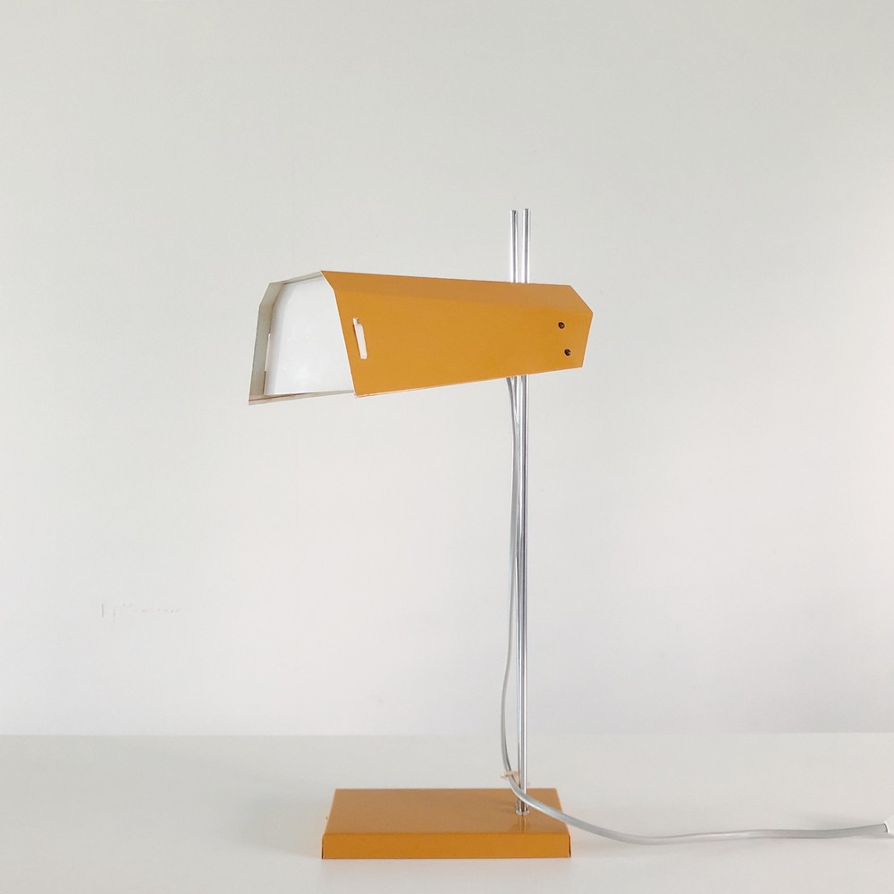 직선적인 디자인과 세련된 머스터드 컬러가 돋보이는 램프로,