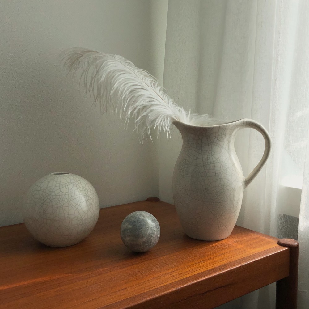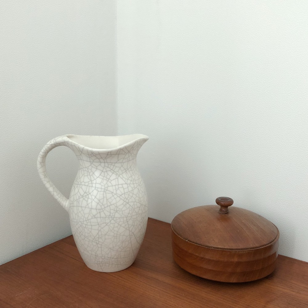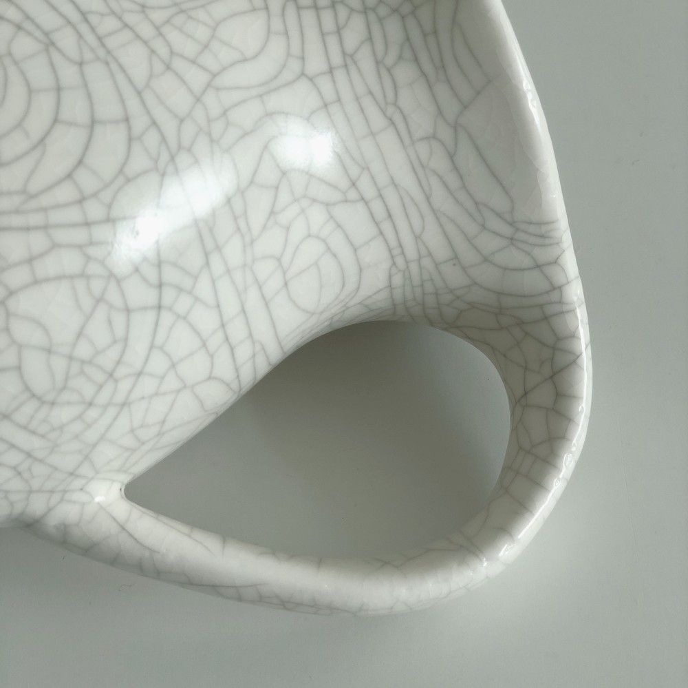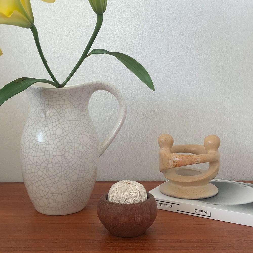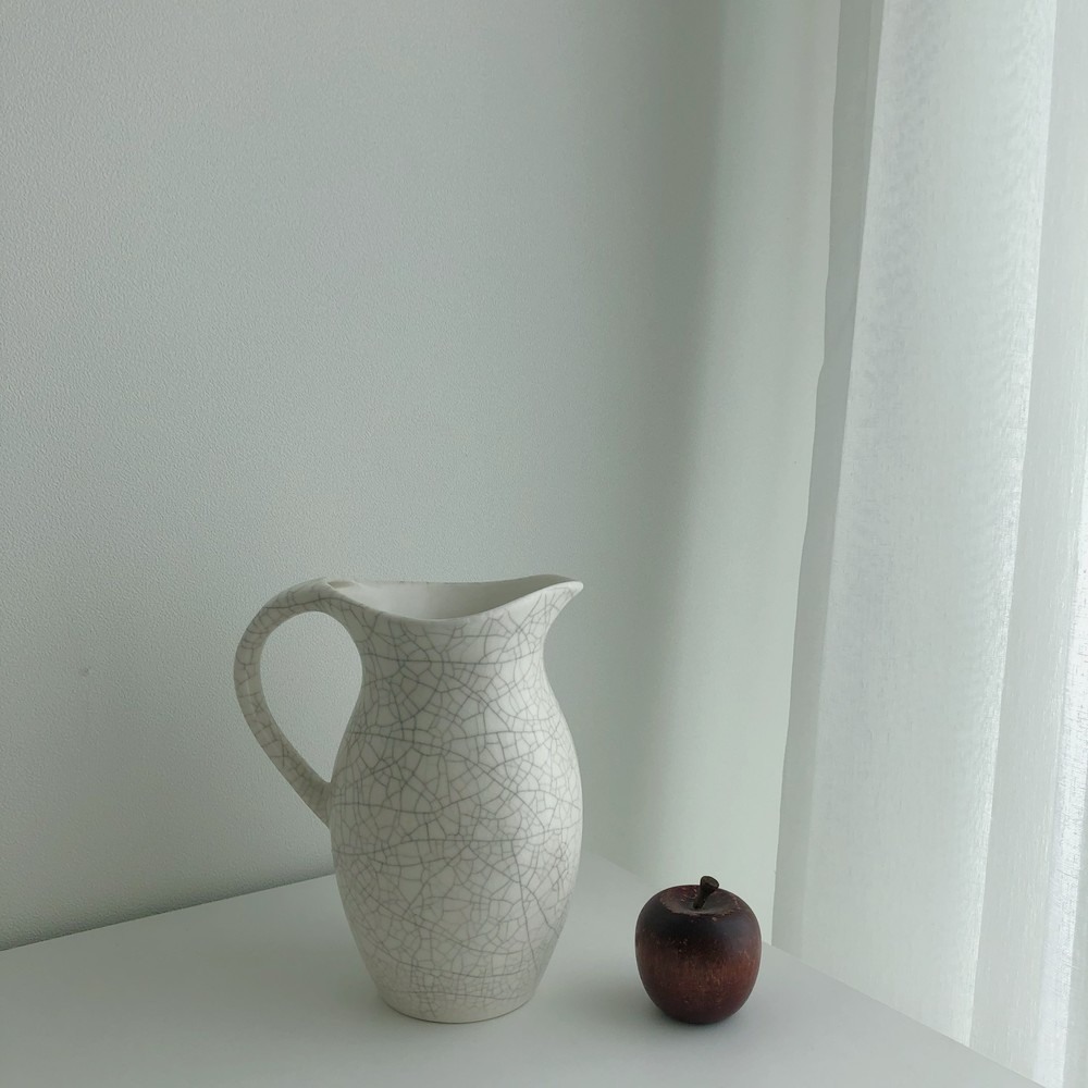 저그 형태의 베이스는 하얀색의 세라믹을 소재로 크랙 유약을 입혀