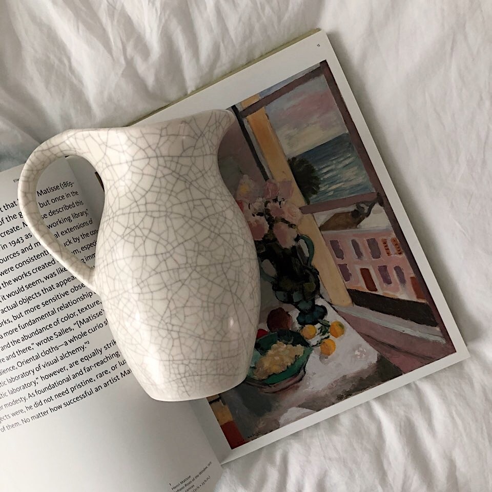 부드럽게 이어지는 손잡이와 둥근 곡선의 저그 형태에 희미한