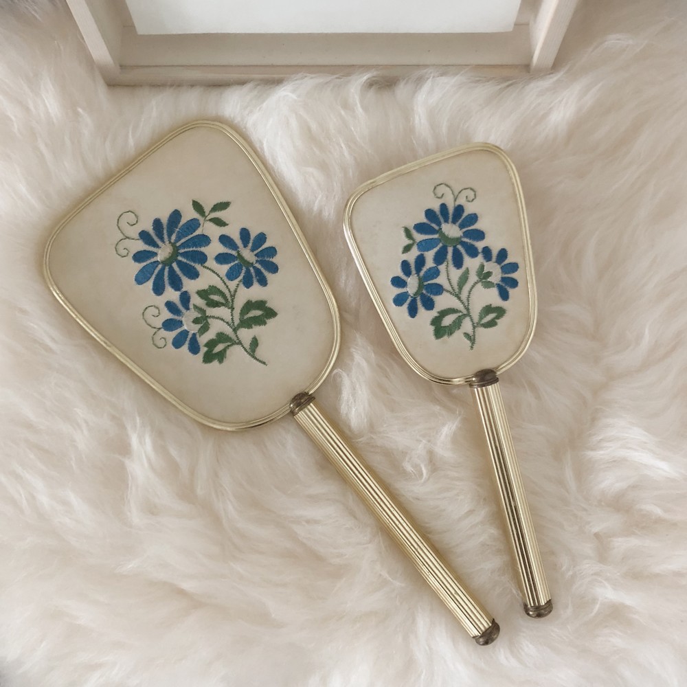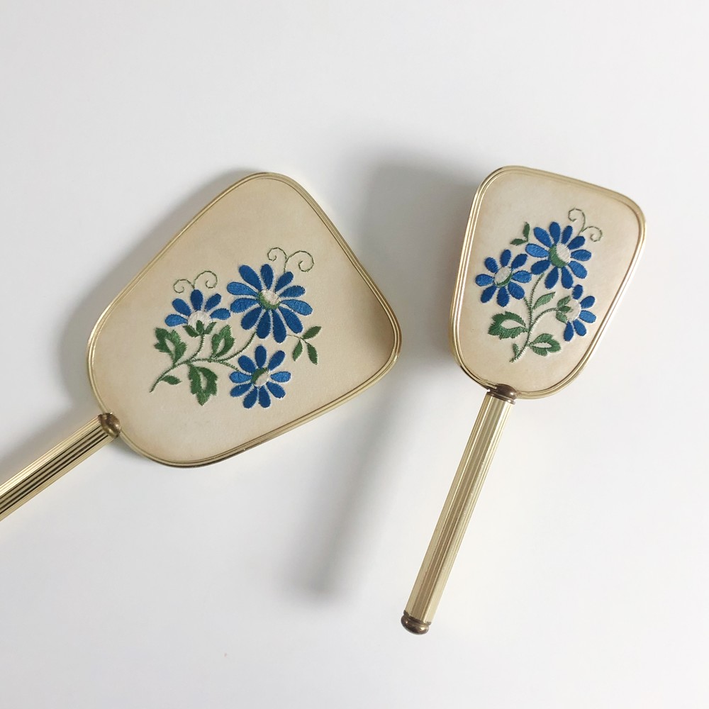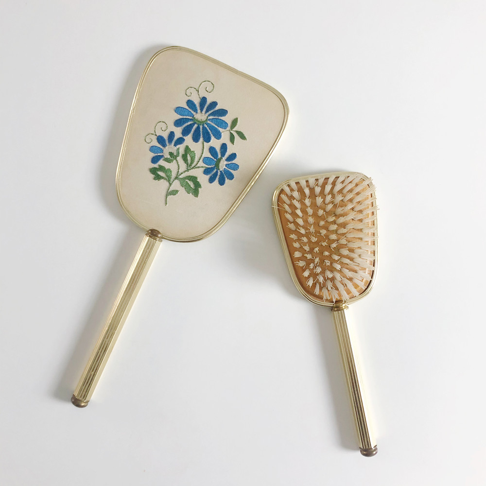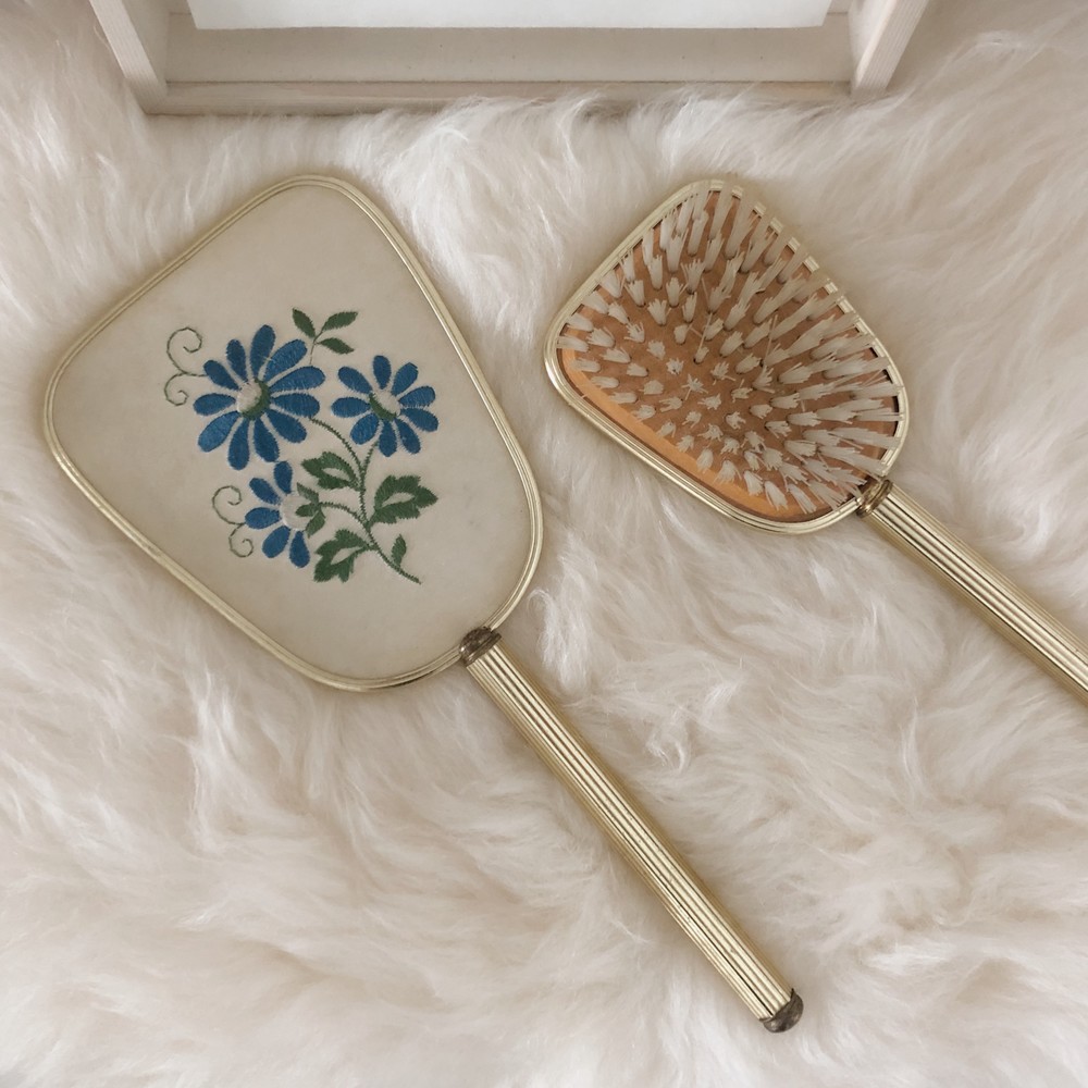 1960년대 영국에서 생산된 빈티지 손거울과 브러쉬입니다.