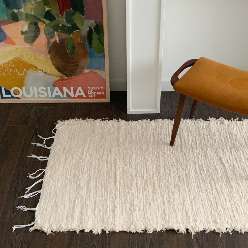 수작업으로 짜여진 러그로, 섬유산업에서 남은 원료를 재사용하여