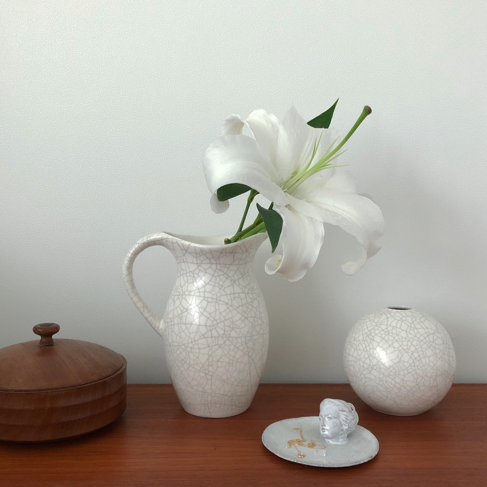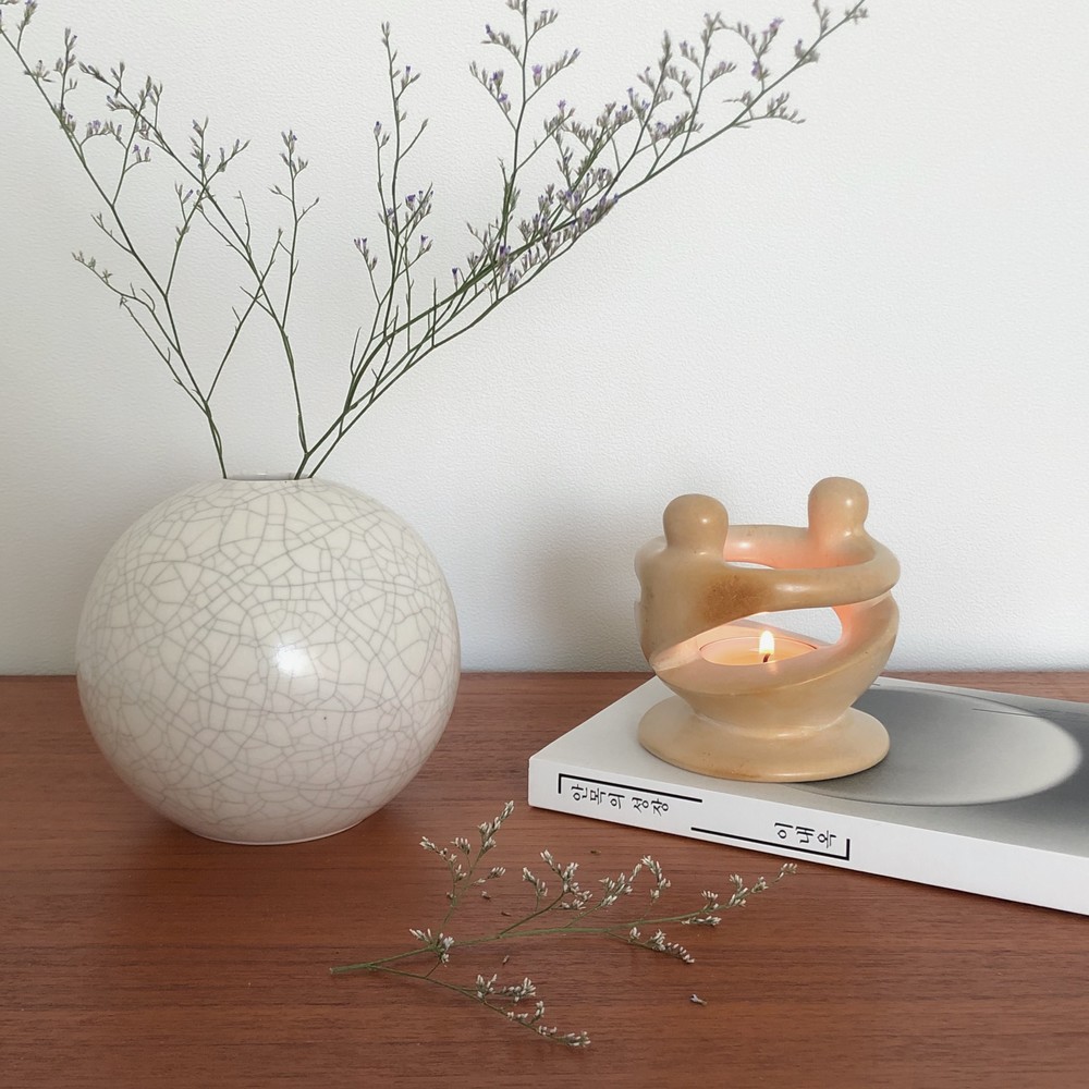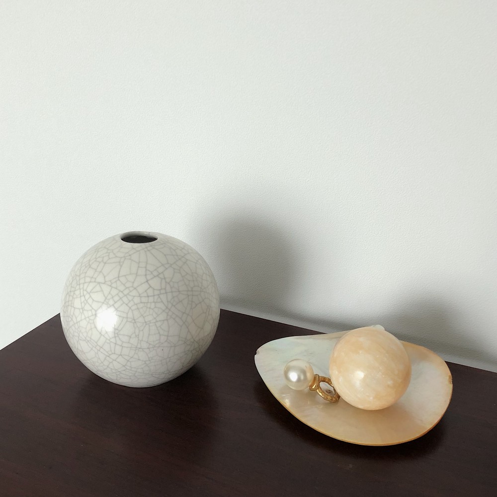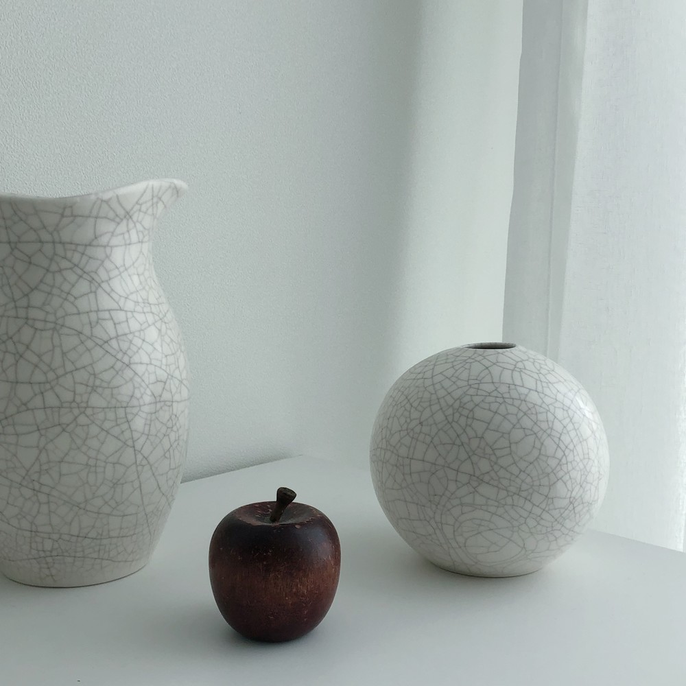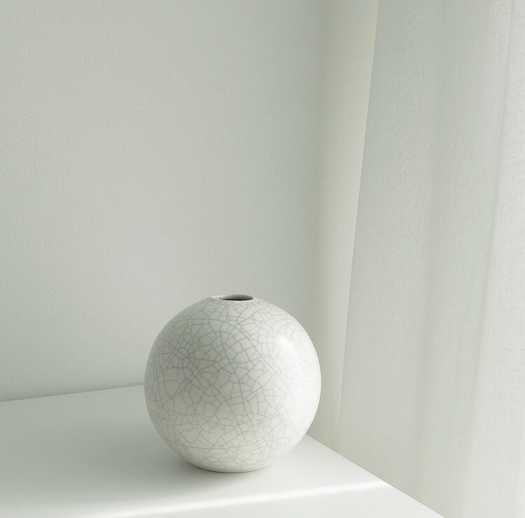 느낄 수 있습니다. 둥근 구 형태의 화병에 희미한 회색빛의 잔잔한 크래클
